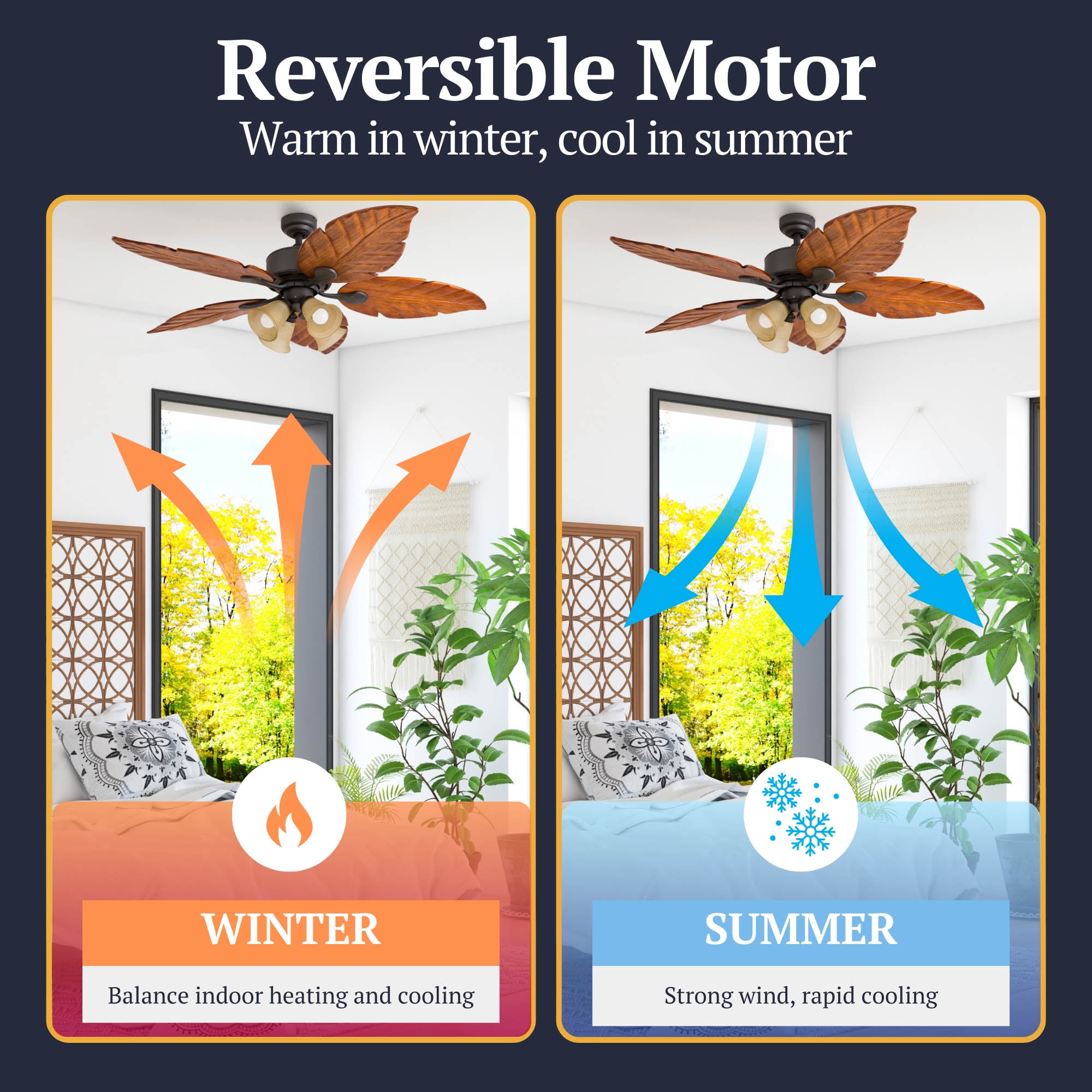 - TWO-SIDED CEILING FAN BLADES: Get the perfect finish match with our reversible ceiling fan blades. Each side has a unique finish.