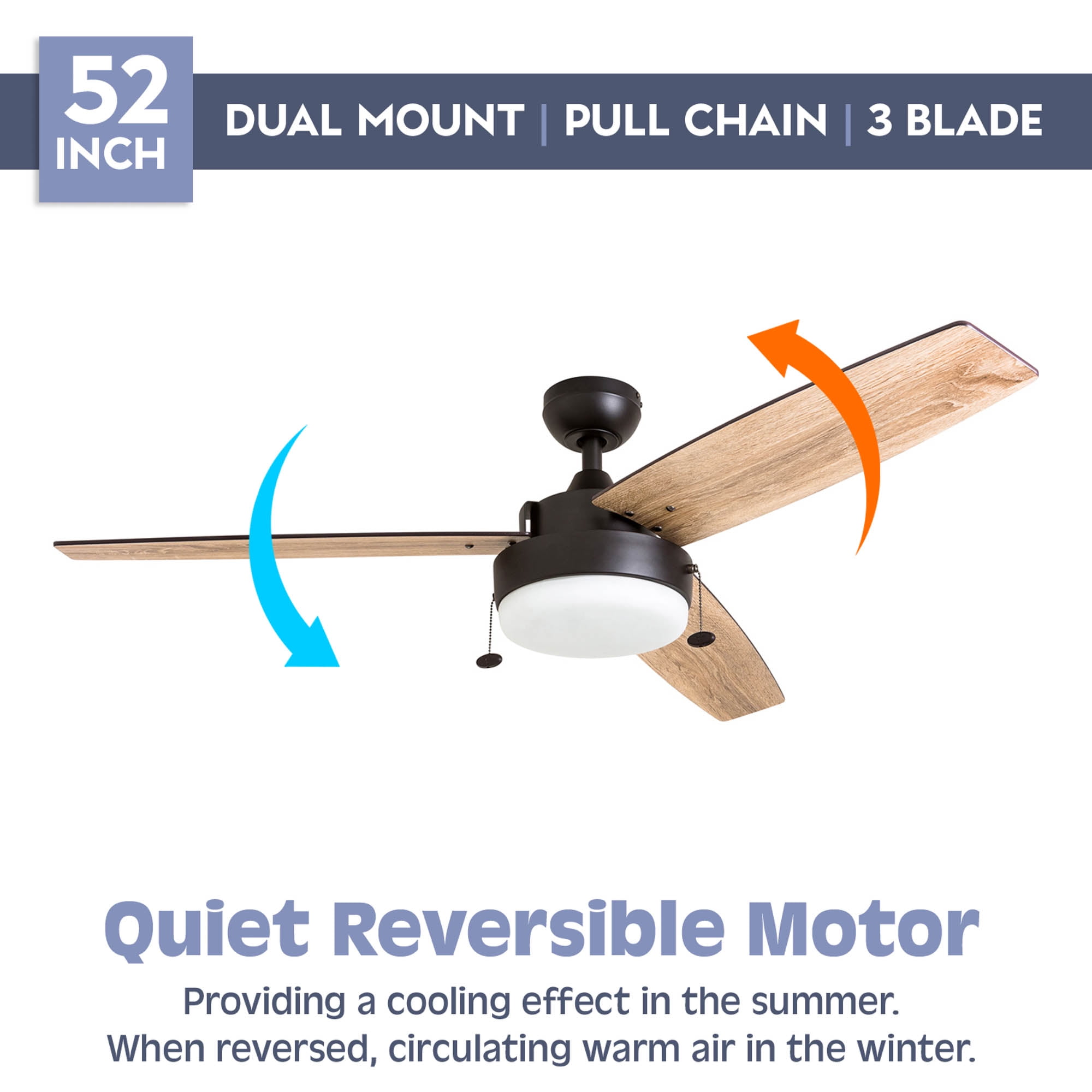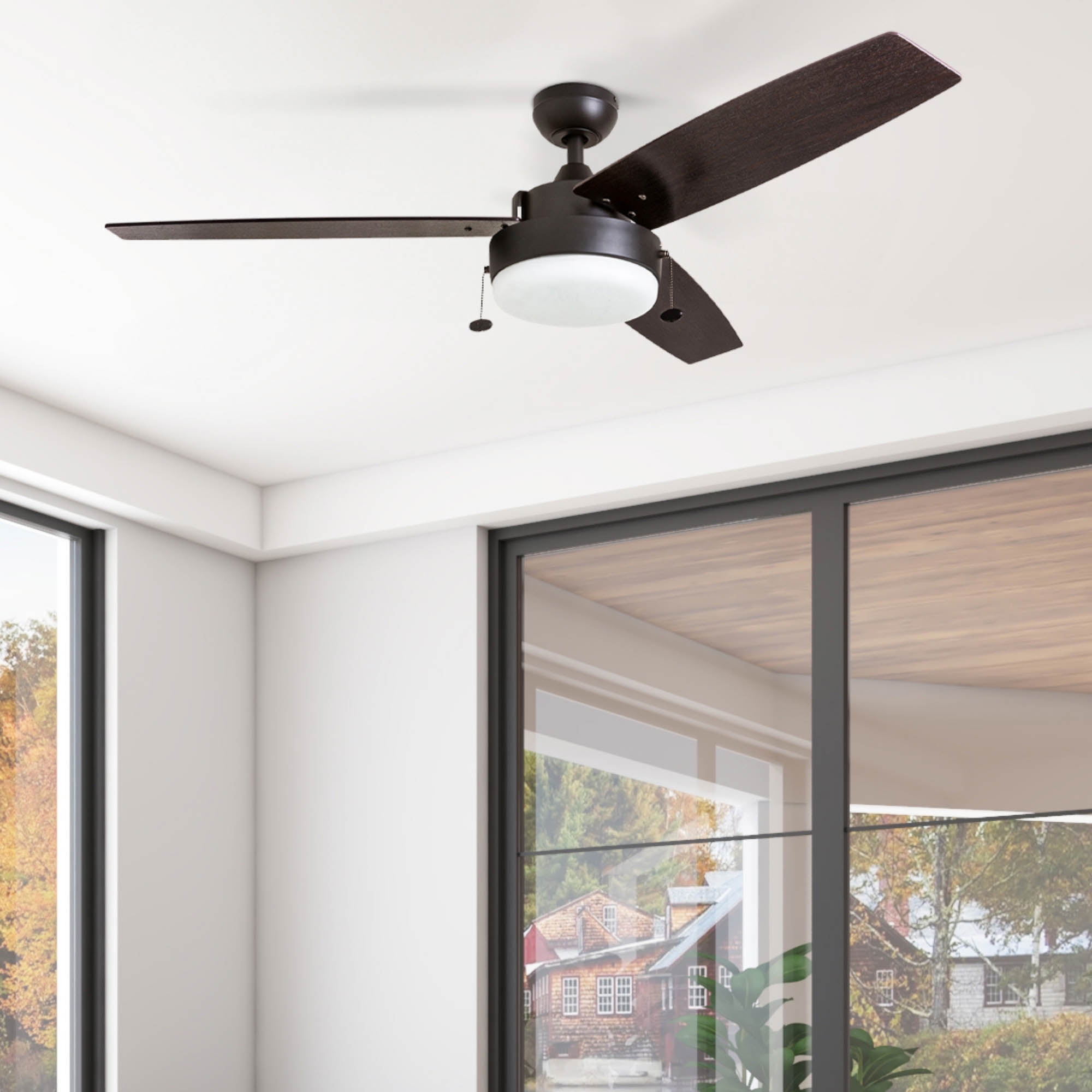 Prominence Home Statham 52″ Bronze LED Ceiling Fan with 5 Blades, Pull Chains & Reverse Airflow