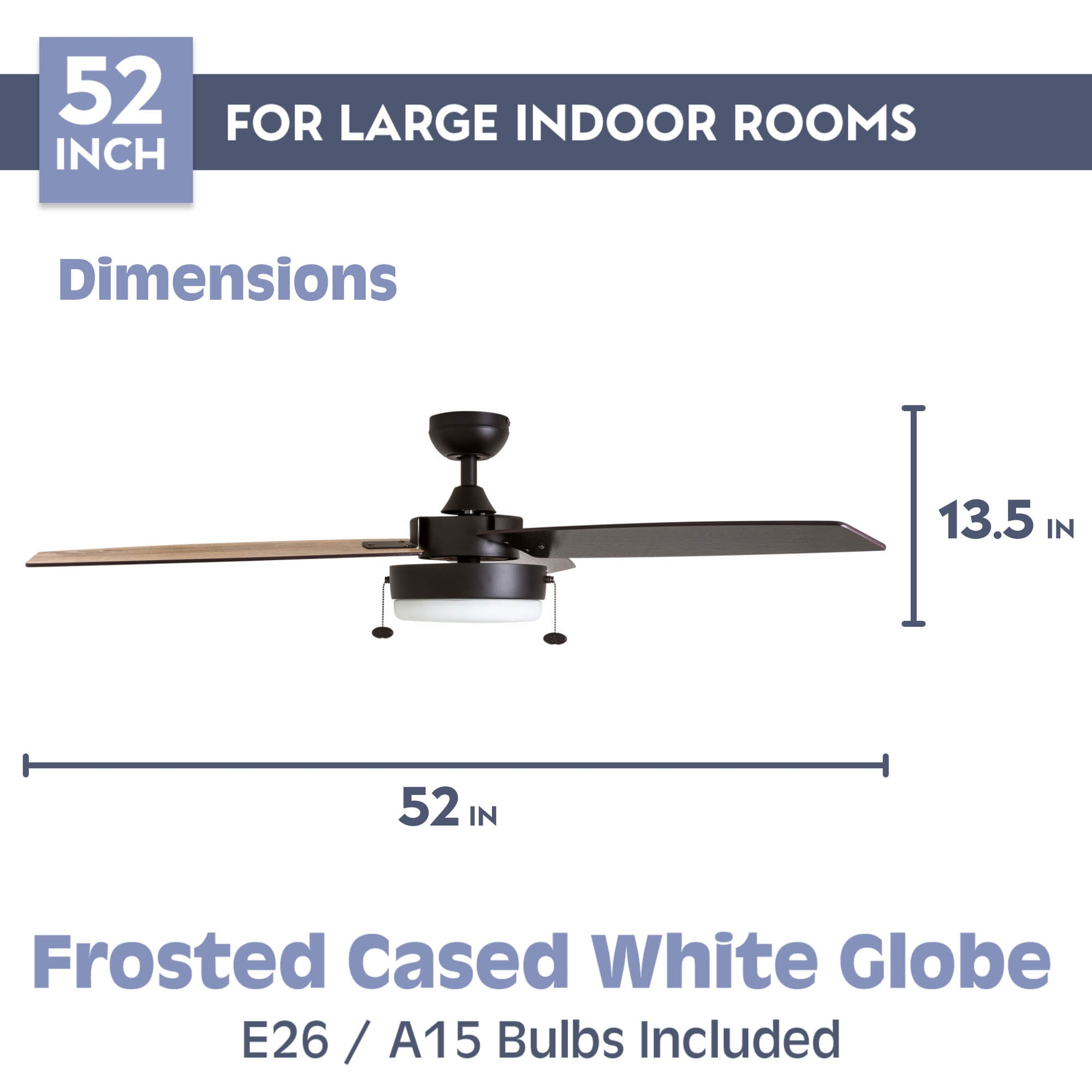 BOLD & CONTEMPORARY: This 52” ceiling fan is the perfect compliment to your trend-setting spaces. Perfect for bedrooms, living rooms, offices, playrooms, dens and much, much more. BEAUTIFUL LIGHT: Two E26, A15 bulbs (800 lumens), dimmable 20% to 100% house inside a frosted white enclosed fixture (bulbs included) QUIETLY POWERFUL: Reversible, 3 speed motor. The reverse air flow feature allows you to quickly change the direction of the fan, for a proper distribution of air. Hanging has never been easier! Enjoy the dynamic hanging capabilities of a multi-position ceiling fan. CHOOSE YOUR BLADES: This ceiling fan comes with two blade options (right out of the box) – the choice is absolutely yours! WARRANTY: We want you to be completely satisfied with your ceiling fan, and to better ensure that this fan comes with a limited lifetime warranty