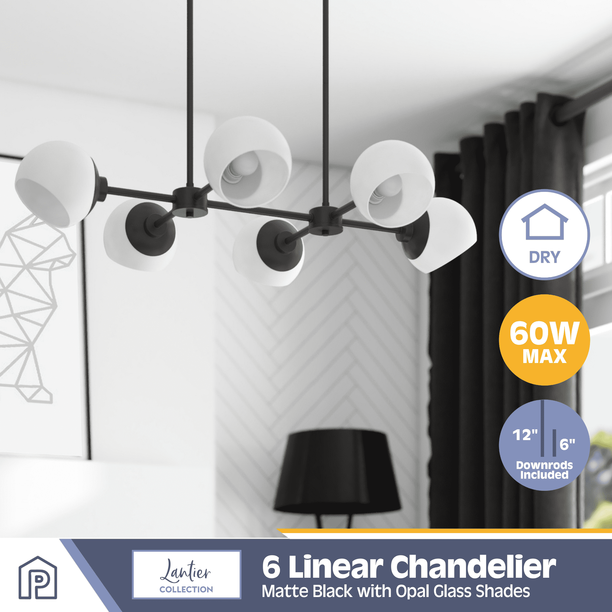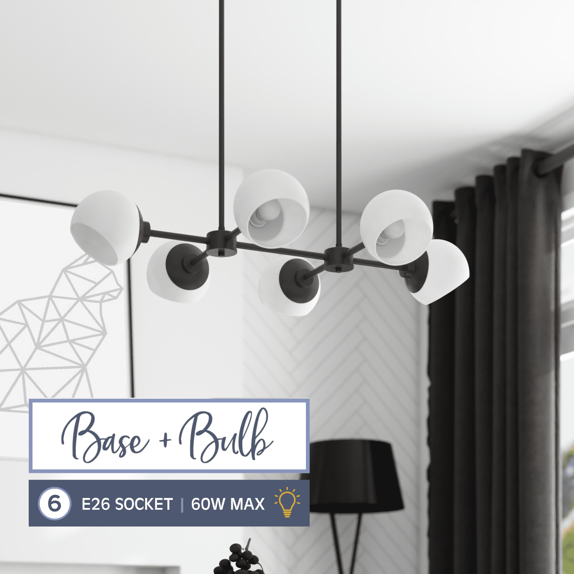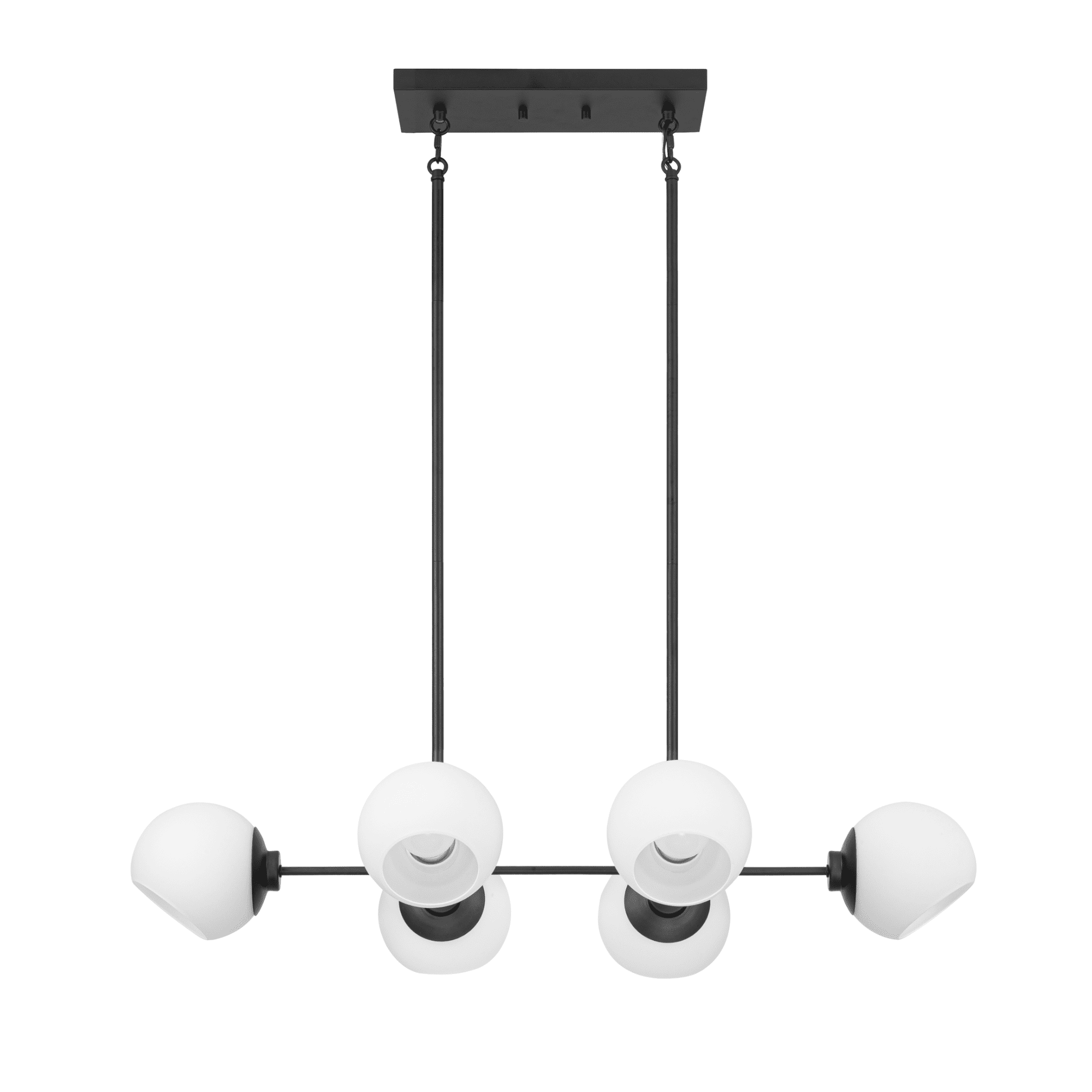Adjustable opal glass covers allow for personalized, directional lighting Create a cohesive look in your home with coordinating fixtures from the Stoll lighting collection Features 6-in opal glass globe shape light covers Modern 6-light globe design in trending matte black finish is great over a long dining table or large kitchen island 6-Light chandelier uses medium base (E26) incandescent / LED (AC or DC) / CFL bulbs (not included) Measures 36-in H x 21-in W Includes (4) 12-in rods and (2) 6-in rods for customizable hanging length C-SGS-US listed