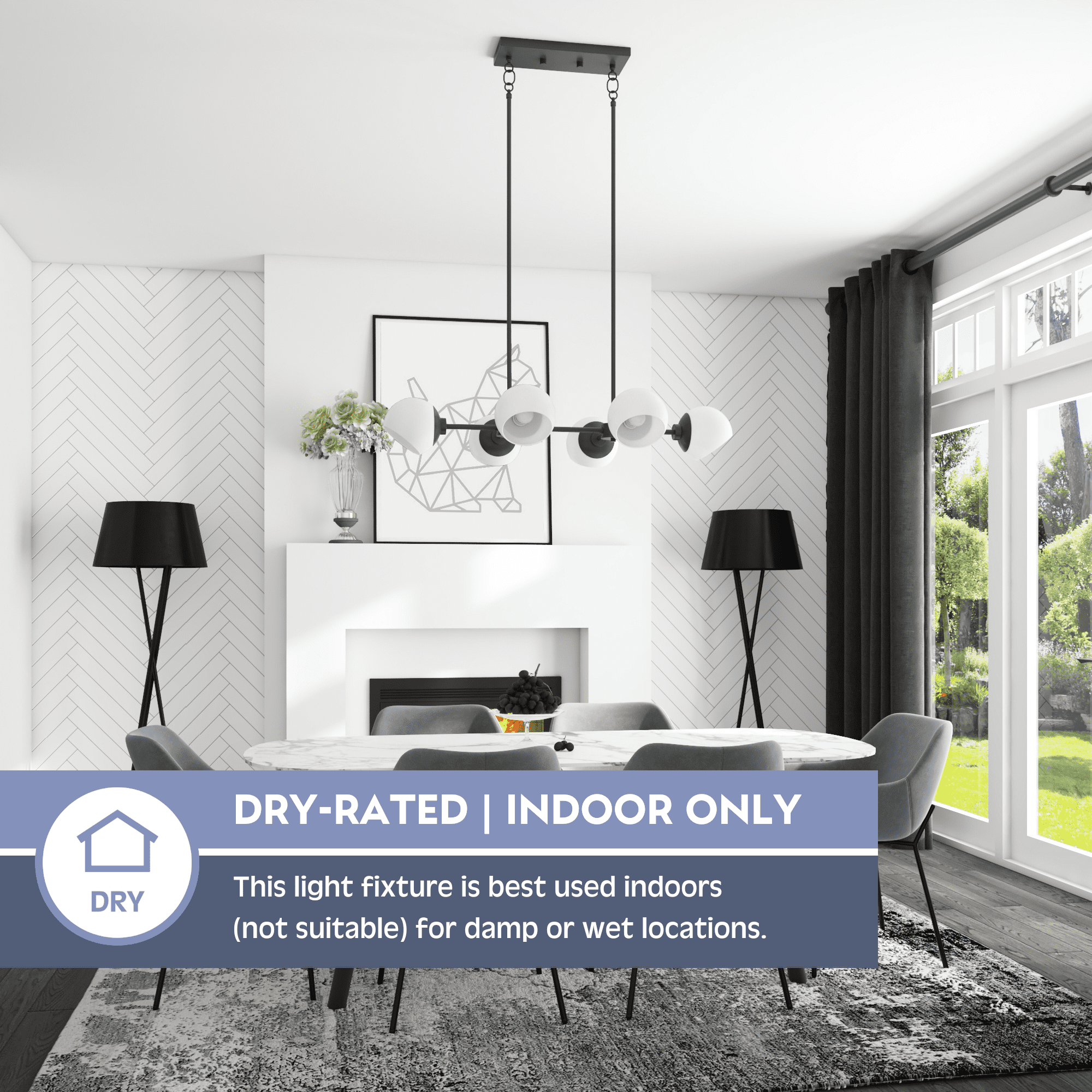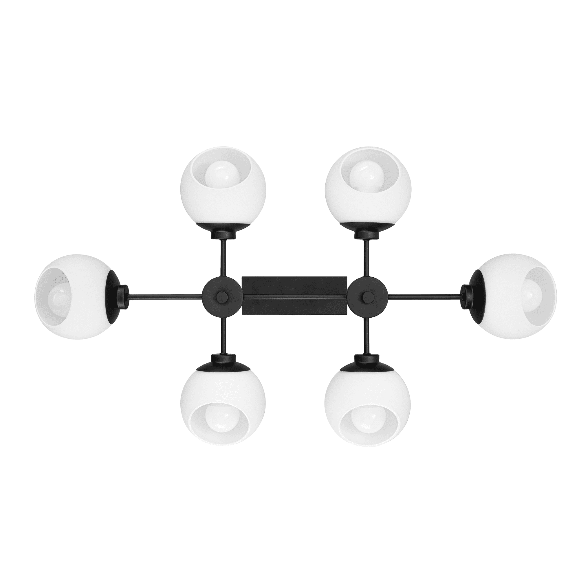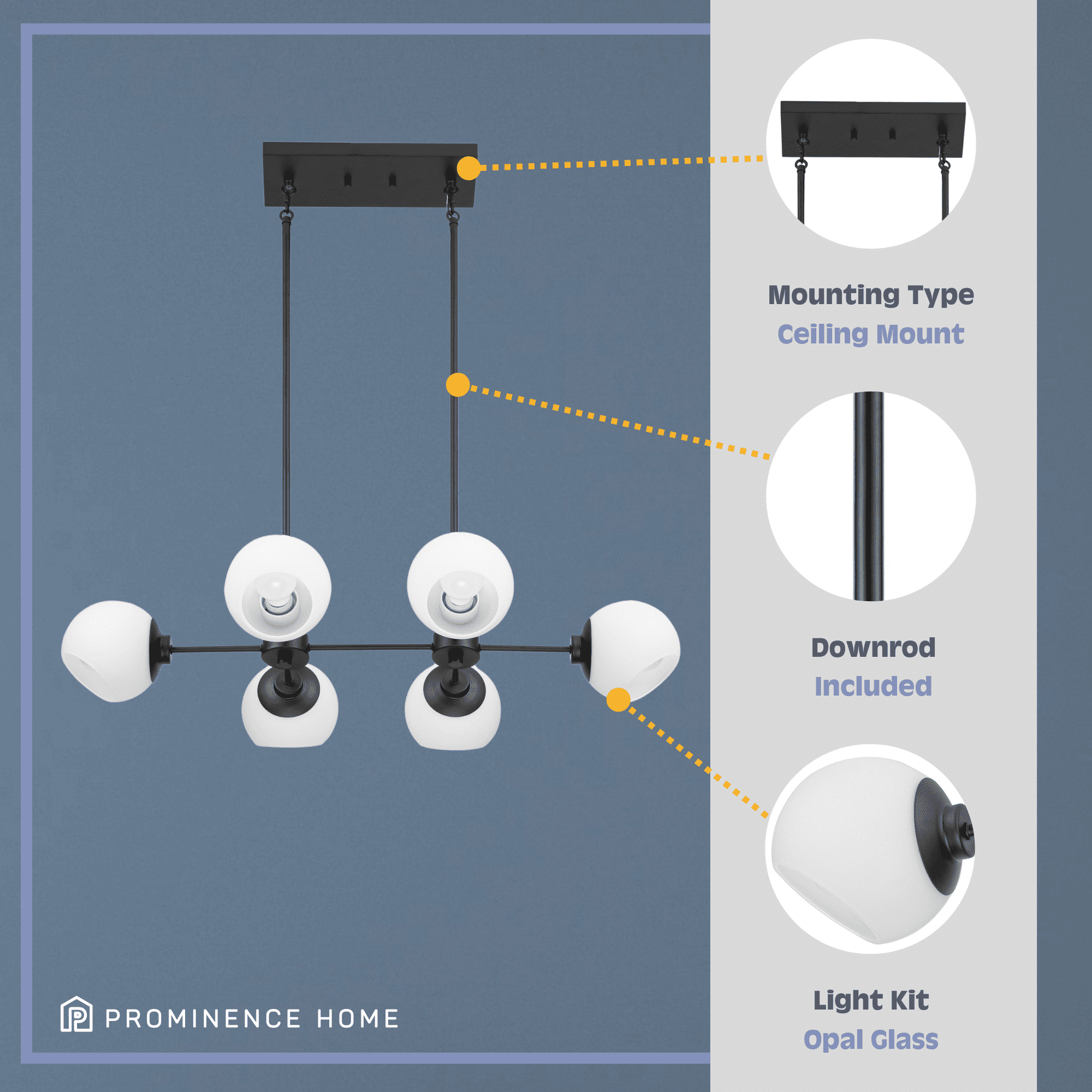 Adjustable opal glass covers allow for personalized, directional lighting Create a cohesive look in your home with coordinating fixtures from the Stoll lighting collection Features 6-in opal glass globe shape light covers Modern 6-light globe design in trending matte black finish is great over a long dining table or large kitchen island 6-Light chandelier uses medium base (E26) incandescent / LED (AC or DC) / CFL bulbs (not included) Measures 36-in H x 21-in W Includes (4) 12-in rods and (2) 6-in rods for customizable hanging length C-SGS-US listed