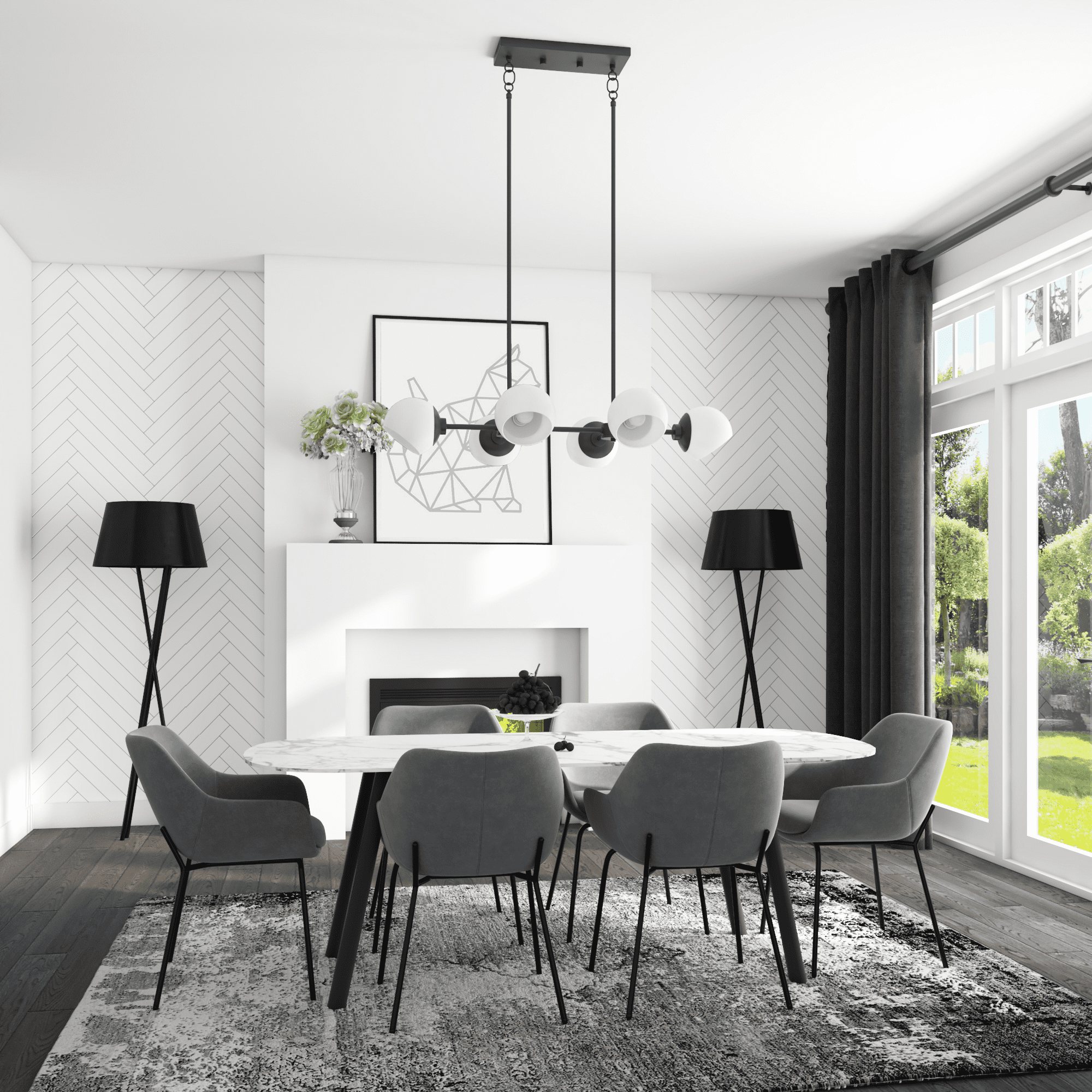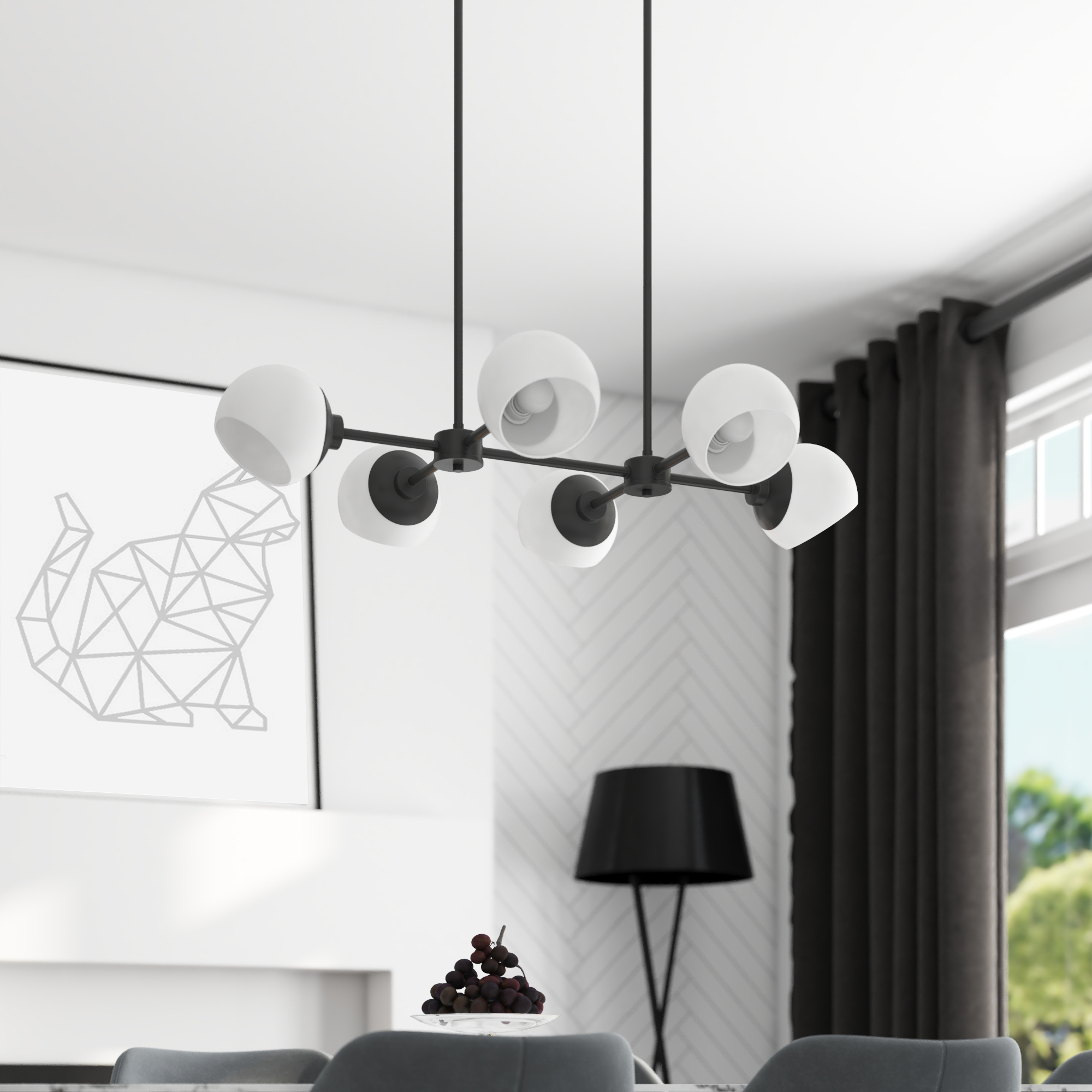 A stunning centerpiece over a large dining room table or large kitchen island, the Stoll 6-Light Chandelier combines gorgeous globe-shaped opal glass with a minimal black matte frame for a modern and elegant lighting fixture. Sure to complement any contemporary home, the smooth opal glass globe light covers also feature an opening that allows you to adjust each light in multiple directions to create the ambiance that you want.