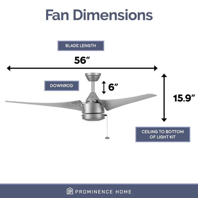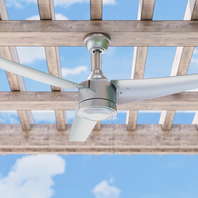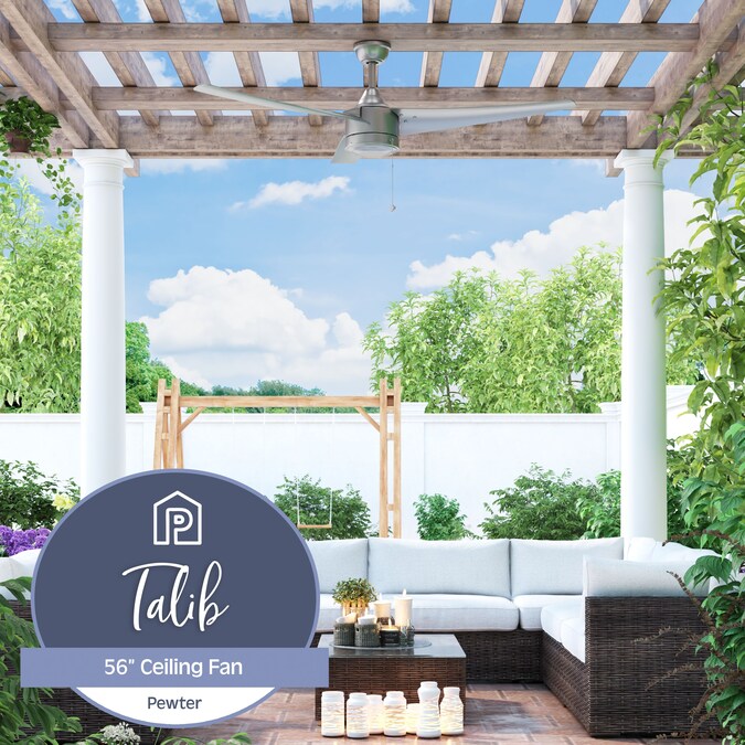 The Prominence Home Talib is a 56 inch outdoor ceiling fan, perfect for your large sized modern industrial space(s). This pewter ceiling fan features three pewter all weather plastic blades. With its three speed, reversible motor, this pull chain controlled fan will provide comforting air circulation year-round.