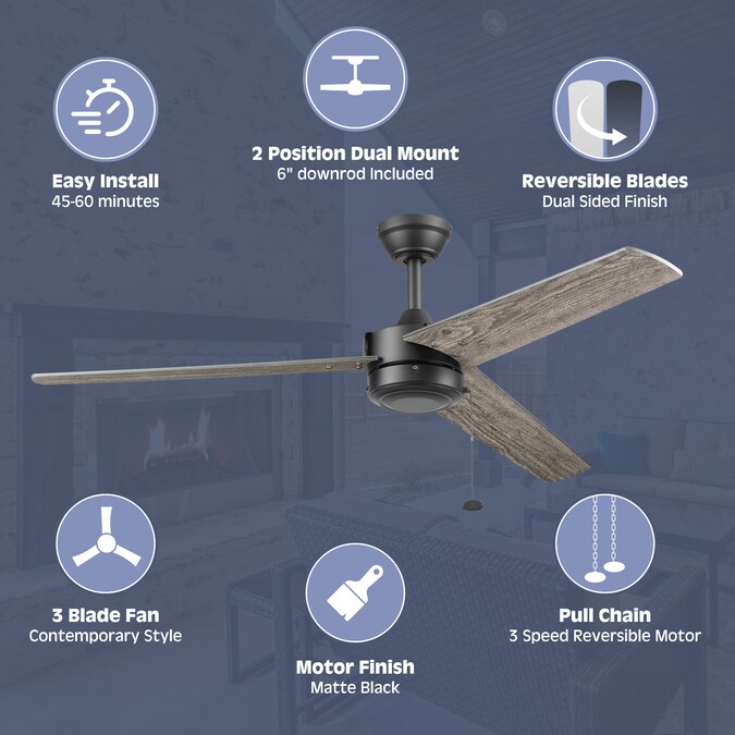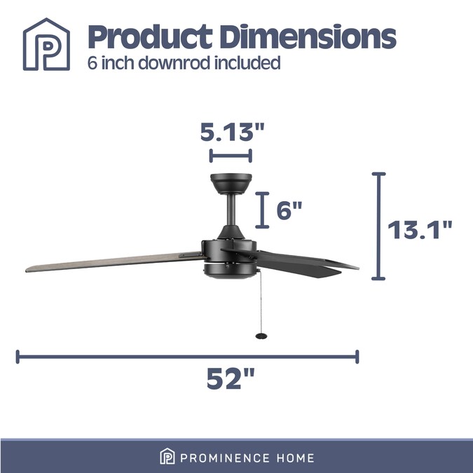 - Pull Chain Control: Control your Prominence Home ceiling fan with the pull chain that operates the fan’s 3 speeds; Compatible with universal ceiling fan remotes (sold separately)