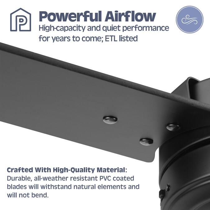 - Crafted With High-Quality Material: Durable, all-weather resistant PVC coated blades will withstand natural elements and will not bend; The high-capacity motor delivers powerful airflow and quiet performance for years to come; ETL listed