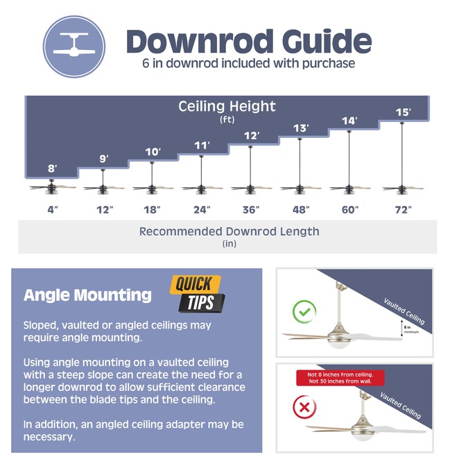 - Dual-Mount Hanging Options: A multi-position fan with 2 hanging options; Standard option offers a 6 inch downrod (included); Angle option allows for hanging on vaulted ceilings with a longer downrod (sold separately)
