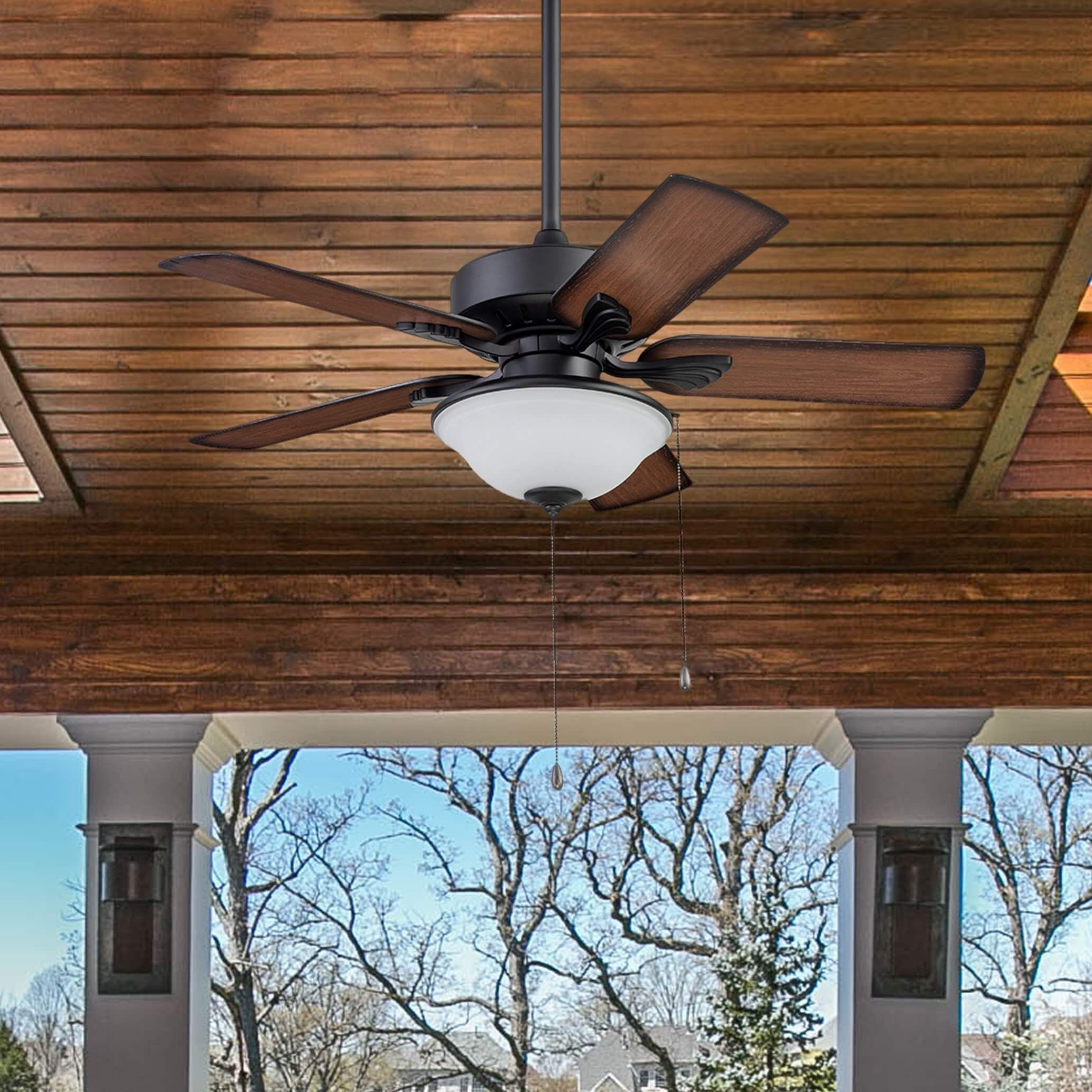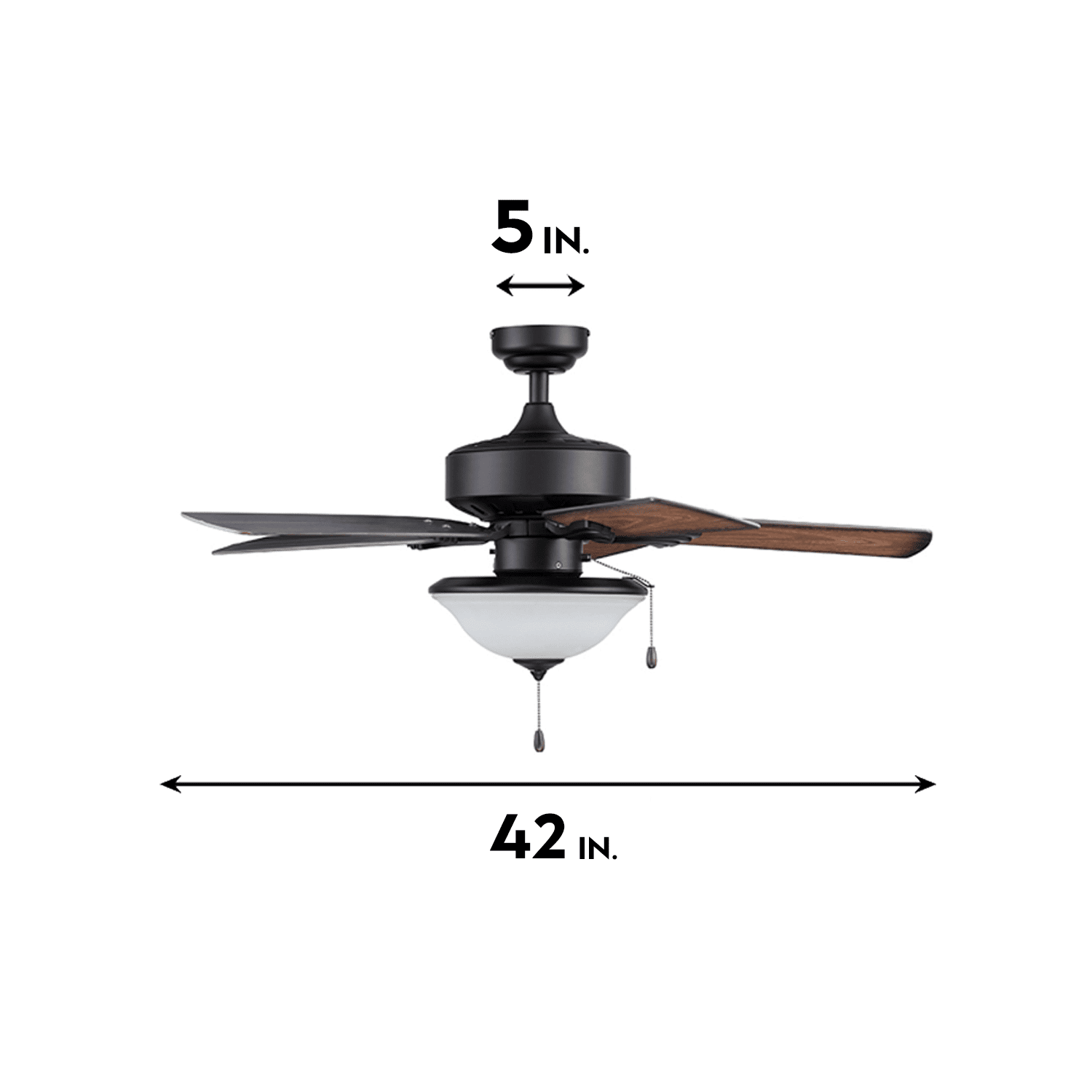 Prominence Home Viretta 42″ Matte Black Indoor/Outdoor Ceiling Fan with 5 Blades, Bowl Light Kit, Pull Chains & Reverse Airflow