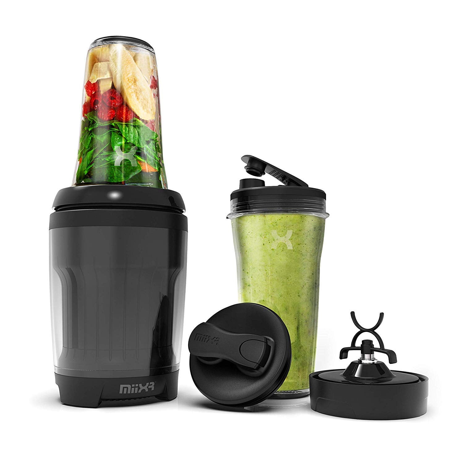 PROMiXX MiiXR X7 Personal Blender for Shakes & Smoothies – 7 Piece Set (17oz / 22oz Cups, Black)