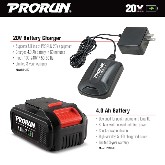 - WARRANTY: Backed by PRORUN Limited 3-Year Residential Tool & Battery Warranty