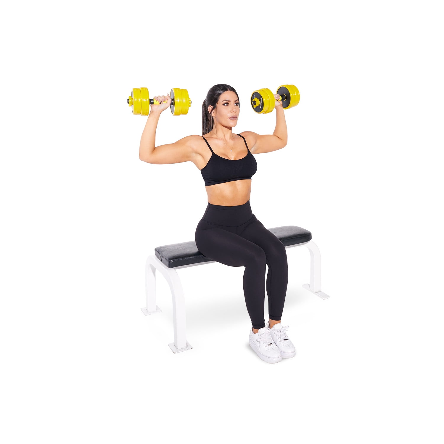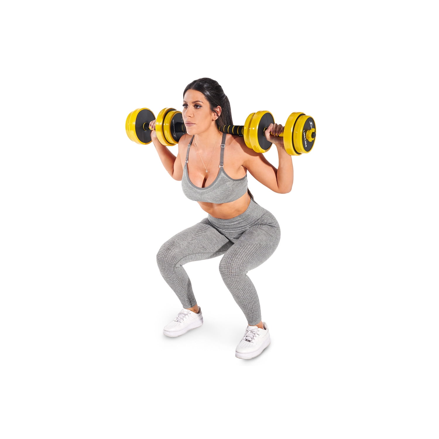 The ProsourceFit 2-in-1 Dumbbell and Barbell set provides the versatility for those who are looking for a convenient and efficient workout. The weights feature 2 variations with one up to 22lbs using 8 plates with 4x1kg plates and 4×1.25kg plates and the second variation up to 33lbs with 4×1.5kg and 4x2kg. There are also 2 heavier variations you can choose from using 12 plates with one up to 44lbs with 4×1.25kg, 4×1.5kg and 4x2kg and the second variation includes up to 55lbs with 4×1.5kg, 4x2kg and 4×2.5kg. Get in a full-body workout by using both dumbbells and the barbell up to 55lbs to perform bicep curls, shoulder presses, squats, deadlifts and lunges. Perform your best during your workouts and with the proper form with comfortable features. The free-weight set is also secured by spin-lock collars and is comfortable with the non-slip grip and cushioned features of the connecting rod. There is no need to worry about your garage or home gym floors either because of the rubber-coated plates. Not only do you save money by buying one piece of equipment but you also save space in your home gym. Everyone is looking for the next best addition to their home gym when they can get the most with one. For questions or concerns, please contact customer service: (855) 552-2637. We are open Monday – Friday from 8:30AM – 4:30PM Pacific Standard Time
