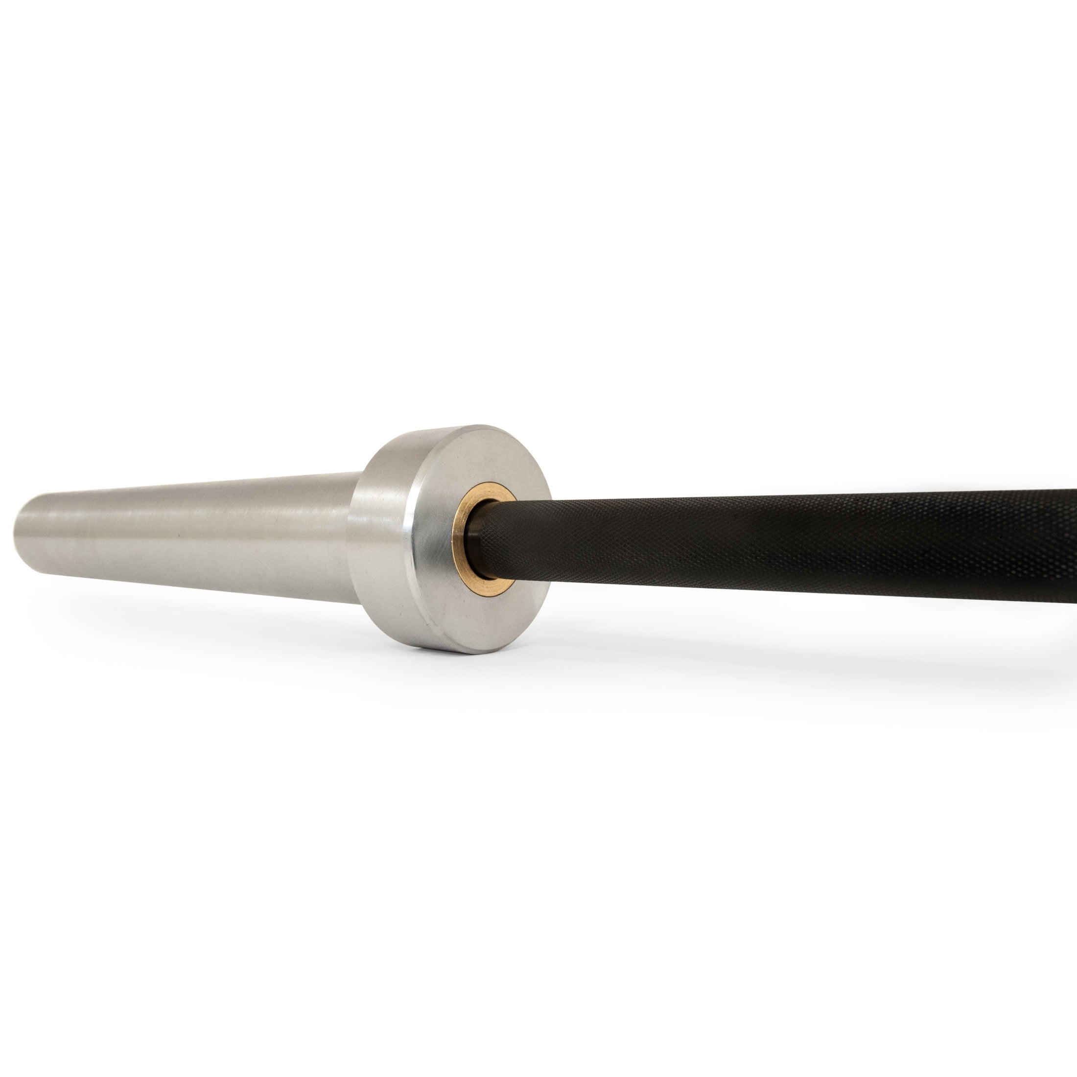 Multipurpose Olympic Barbell, Womens MULTIPURPOSE – Barbells are ideal for strength & power training, weightlifting & commercial or home gyms DURABLE STEEL – 160k PSI steel bar with phosphate finish & chrome sleeves for durability and rust-prevention OLYMPIC STANDARD SIZE BARS – Men’s: 44lb, 86.6” long, 28mm diameter. Women’s: 33lb, 79.13” long, 25mm diameter SMOOTH SPIN – Sleeves fit standard bumper plates and provide the right spin for exercises like cleans & snatches KNURL – Standard medium diamond knurl provides a secure grip with a smooth knurl-free center that is easy on back & hands
