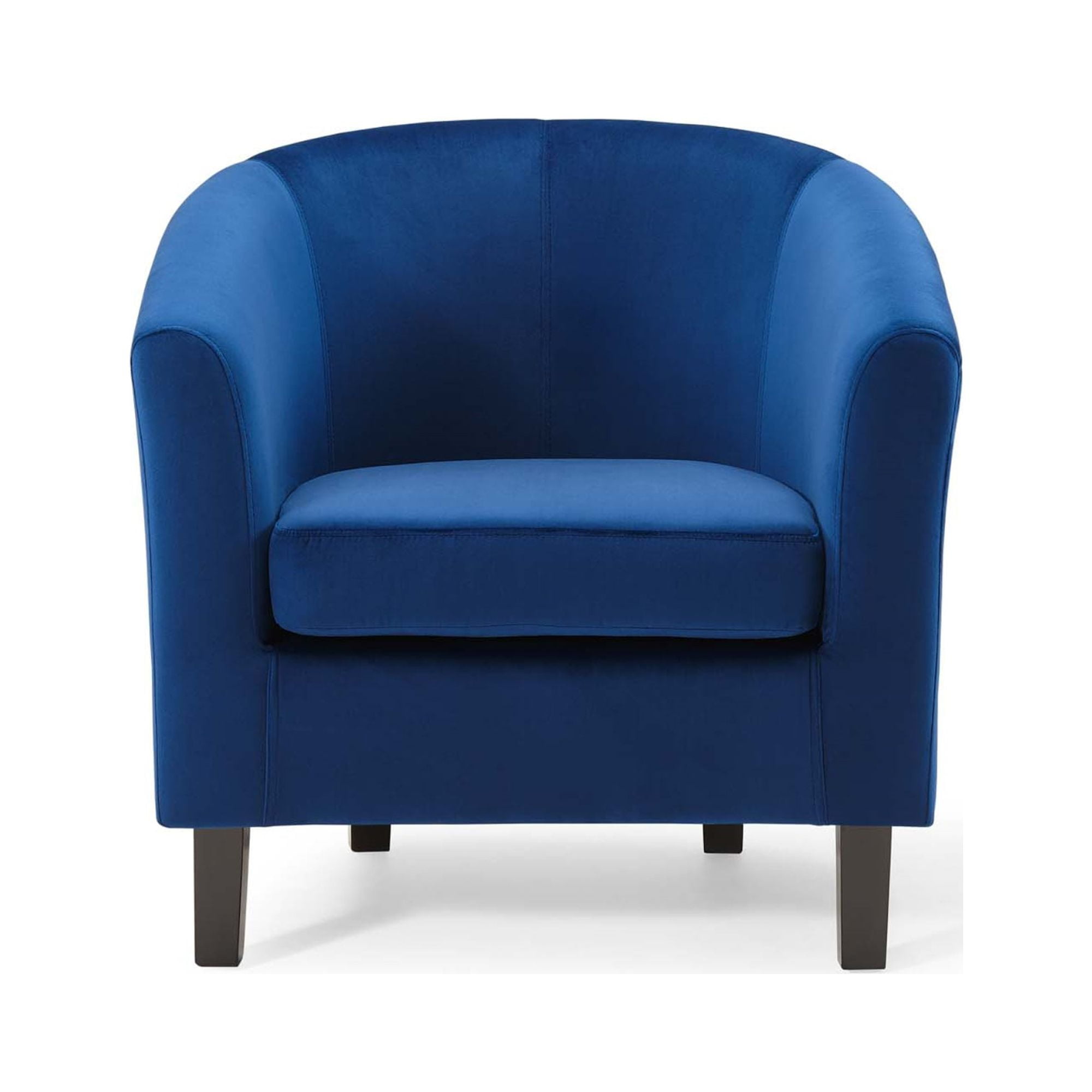 Material: Performance velvet, rubberwood Finish: Navy, black Modern barrel back armchair Dense foam padded seat