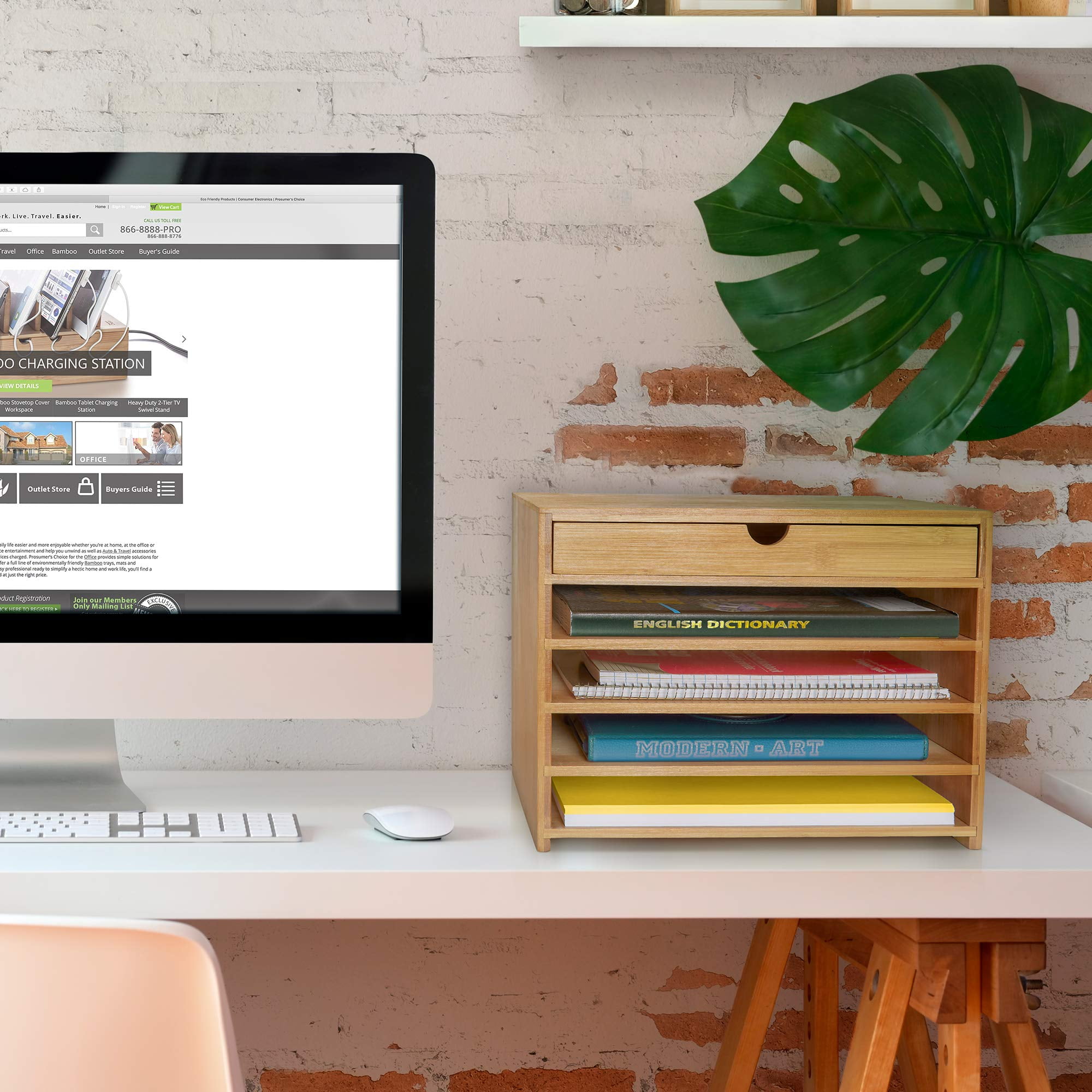 Bring order and style to your workspace with the Prosumer’s Choice Bamboo Paper Organizer. Designed for home offices, kitchens, or workstations, this compact and sturdy organizer features four open compartments to hold standard 8.5 x 11-inch paper and a convenient pull-out drawer for accessories like pens, notepads, or clips. Its vertical design saves space while keeping essentials within easy reach. Made from high-quality, sustainable bamboo, this paper organizer is both durable and easy to maintain, adding a natural touch to any décor. Best of all, it arrives fully assembled—ready to use right out of the box.