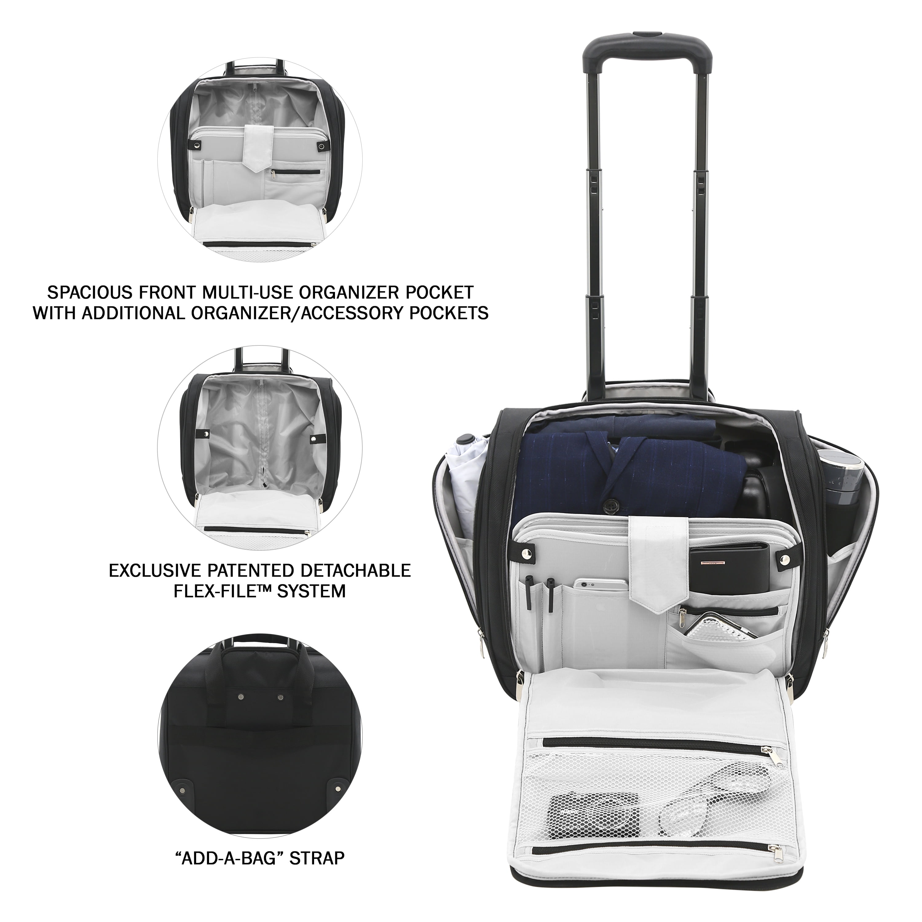 Protégé 16” Arendale Rolling Under-seater, made for travelers seeking a bag that combines convenience, organization, and smart features. Coordinate with other matching luggage pieces (20” / 24” / 28”) from the Arendale Collection available online and in-store. Comes with 5-Year Limited Warranty and meets all airline carry-on restrictions. For under seat restrictions, it does not conform to FRONTIER or SPIRIT. Meets other airline restrictions as an under-seater.