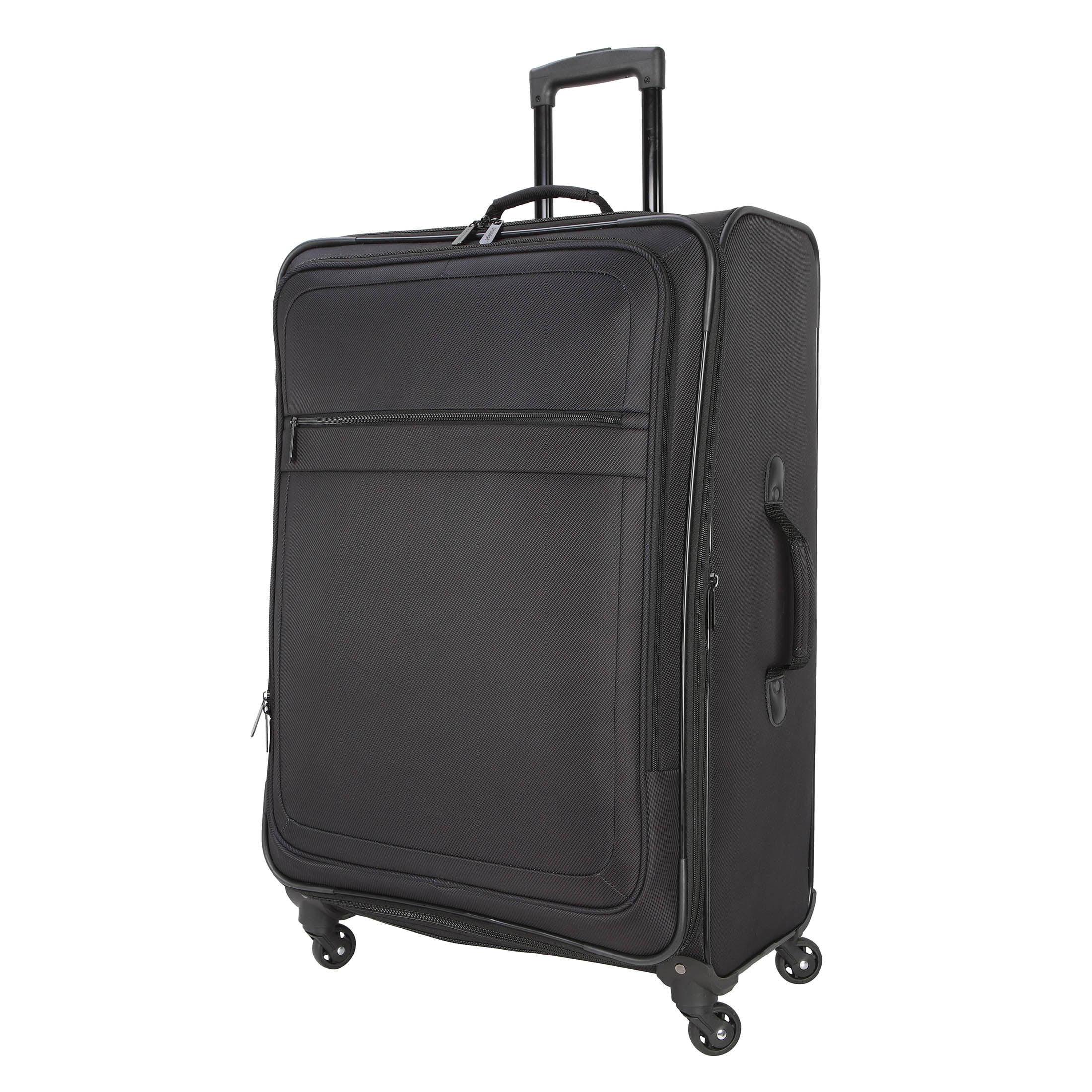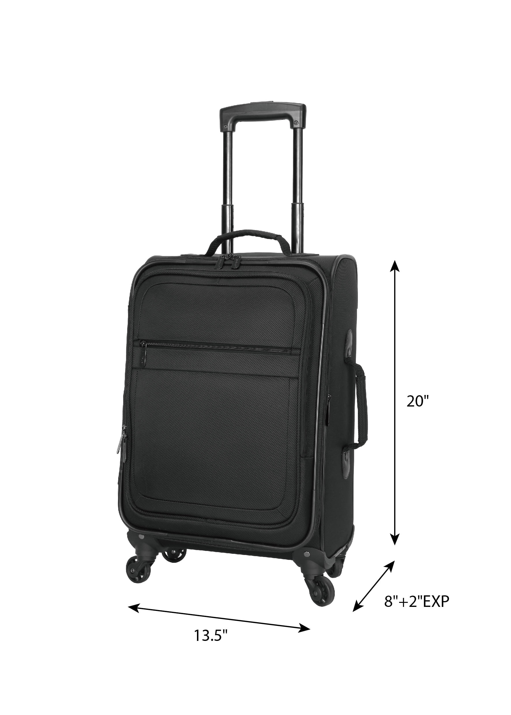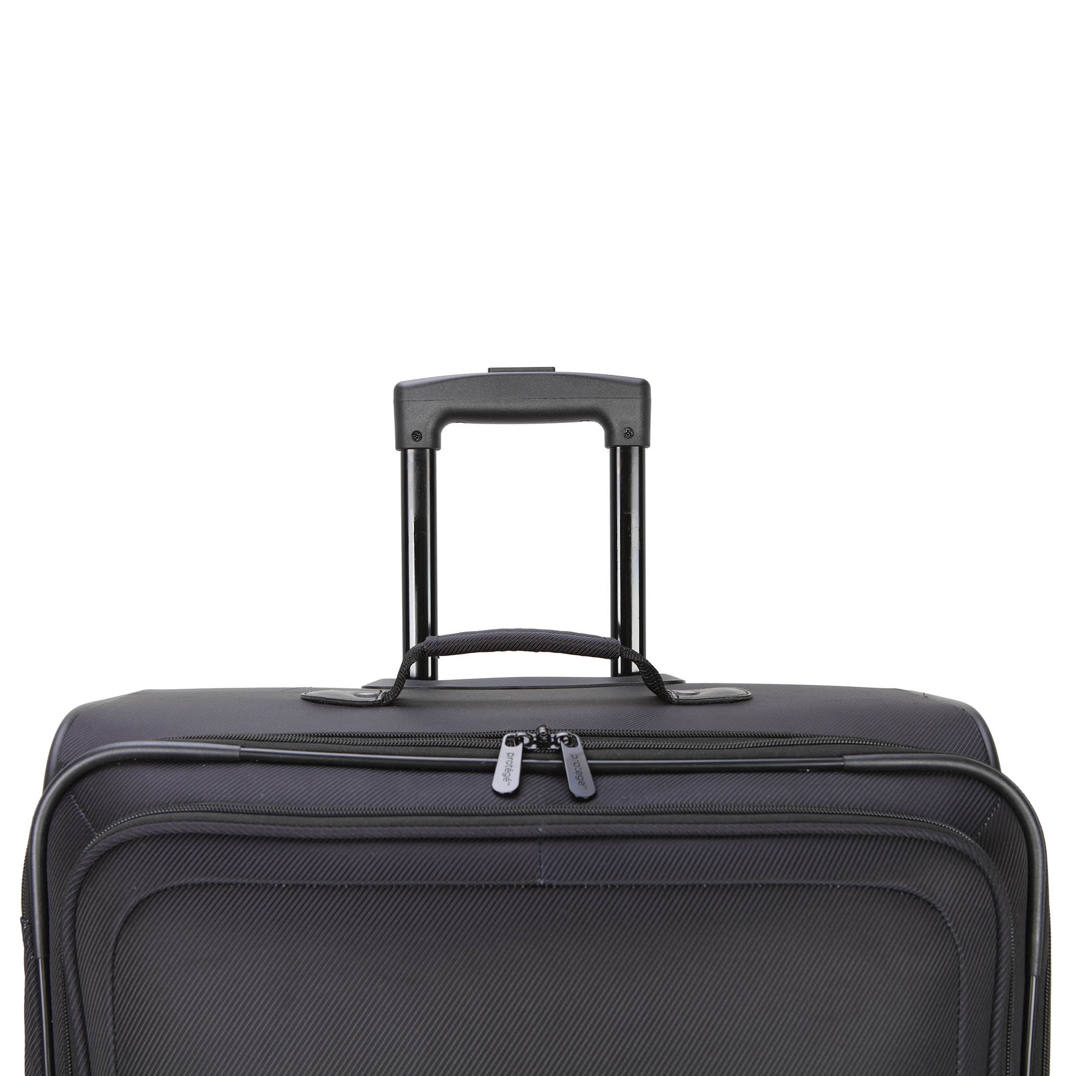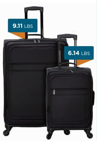 Protege 2-piece Luggage Set comes in Rich Black and Wild Sage Made using a durable polyester twill material Large interior space that can accommodate 3-7 days of travel Front zippered accessory pocket for smaller travel items Expandable 2-inch zipper for extra room Telescopic, top and side handle 360 spinner wheels Metal hardware Compression straps to secure belongings