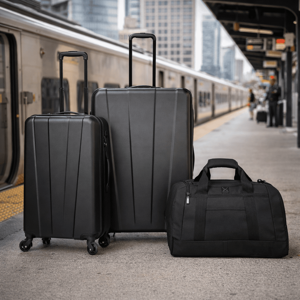 Protege 3-Piece Hardside Luggage Set, Black Set includes 28″ checked, 20″ carry-on, and 18″ duffel Inside compression straps Uprights have adjustable height telescopic handles and top and side carry handles Uprights have four 360-degree spinner wheels Designed for effortless navigation through busy terminals and car travel Hardside luggage, along with softside duffel made of polyester