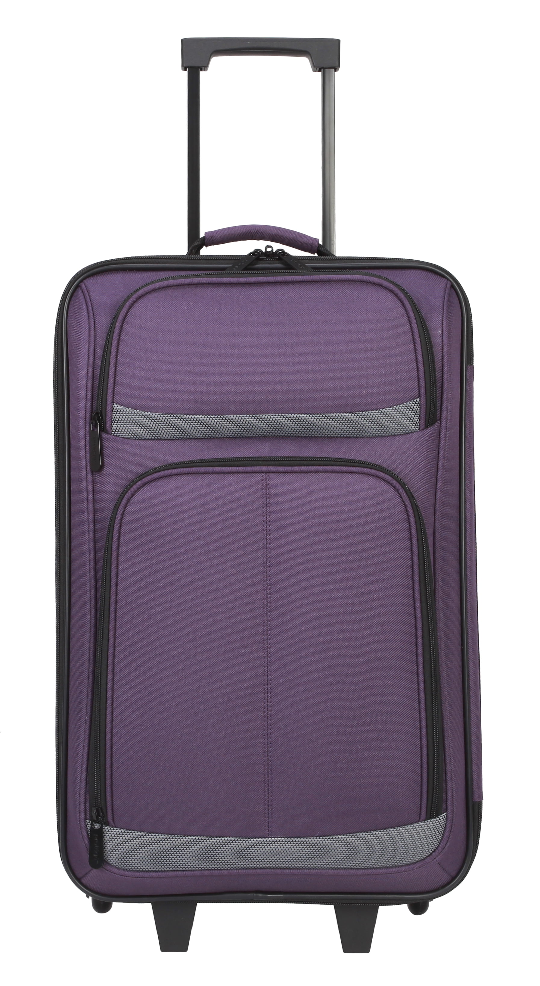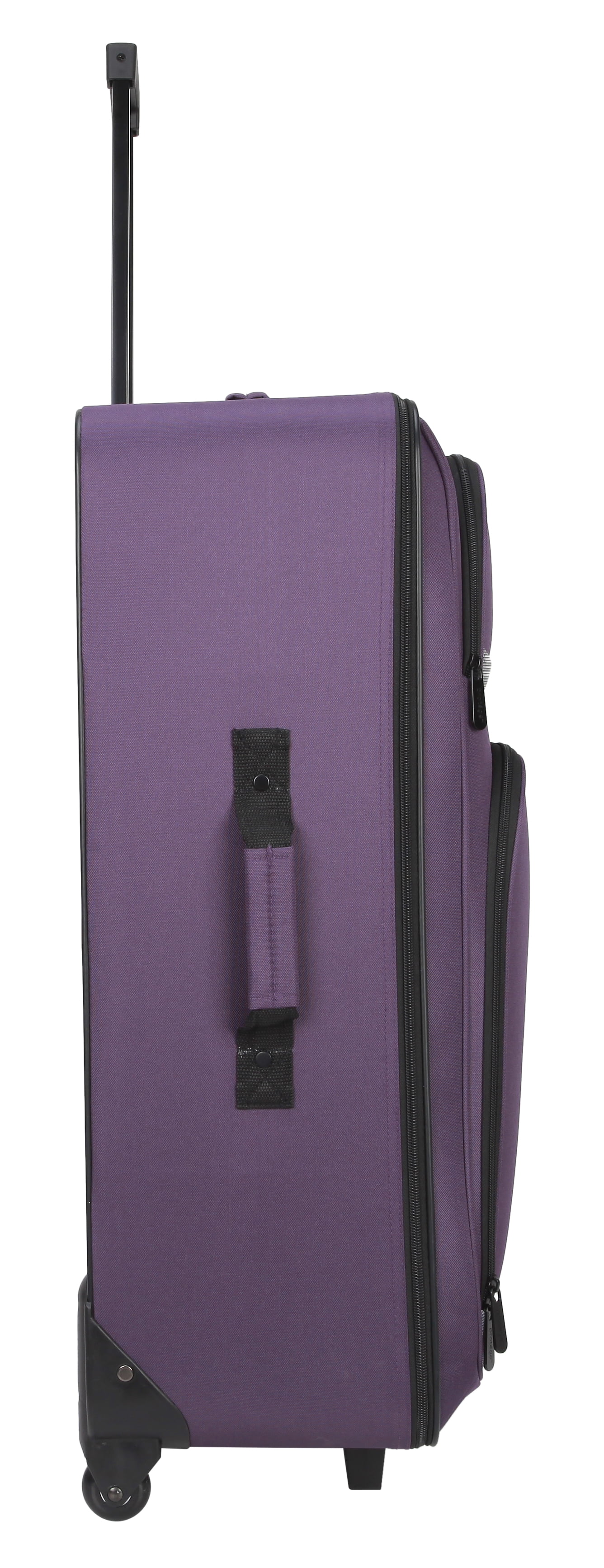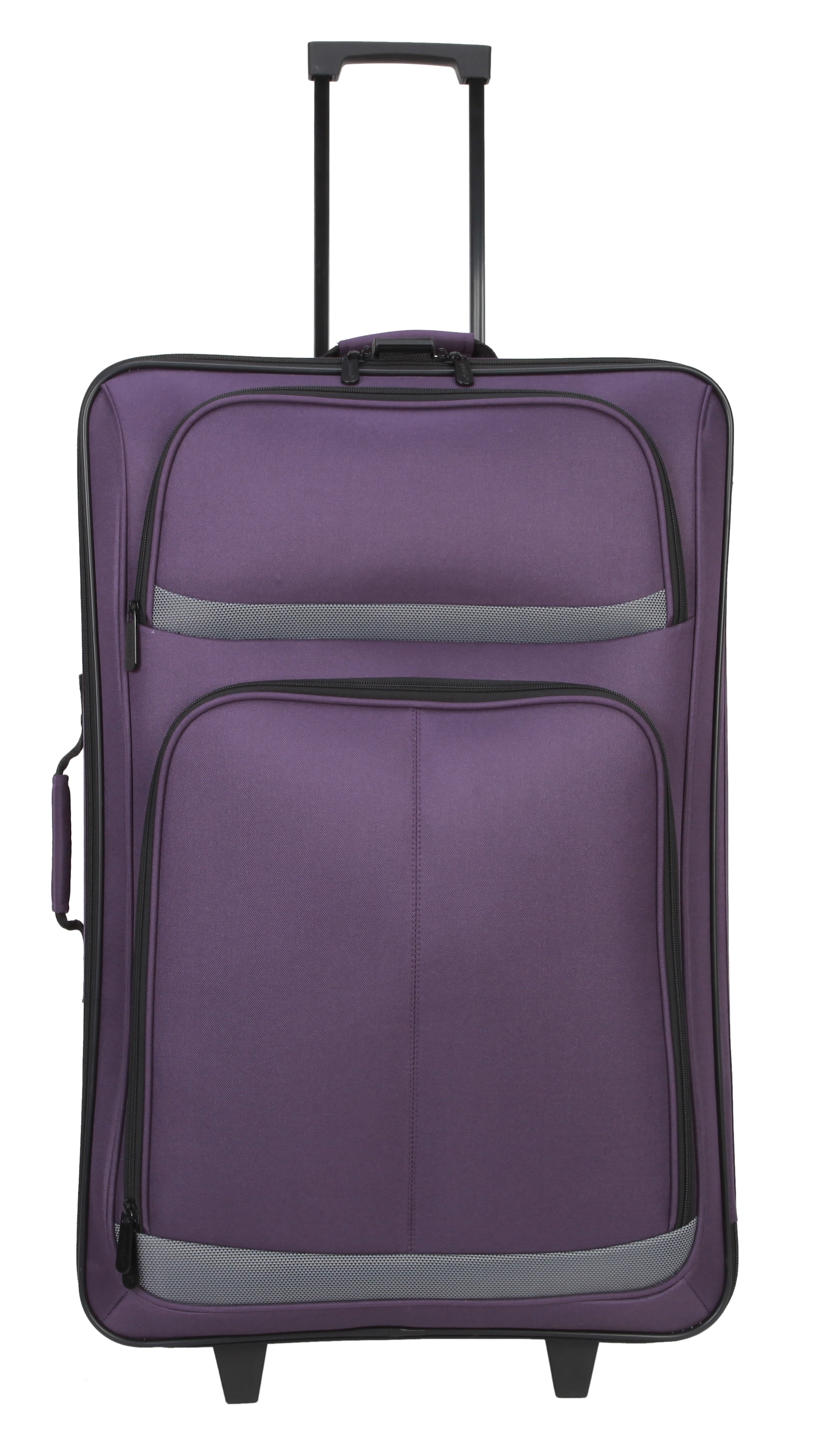 Protege 5-Piece Softside Luggage Set, Purple Set includes one 28″ upright, one 21″ upright, one boarding tote, one toiletry kit, and one cinch sack 28″ and 21″ uprights have 2 in-line skate wheels, telescoping handles, and an interlocking zipper system Upright Dimensions (28 in – 9.75″L x 18.25″D x 27.5″H without wheels), (21 in – 8″L x 13.5″D x 21.25″H without wheels) Accessory Dimensions: Tote (5.75″L x 15″D x 10.25″H), Toiletry Kit (5″L x 10″D x 5.5″H), Cinch Bag 15″ W x 16.5″ H)