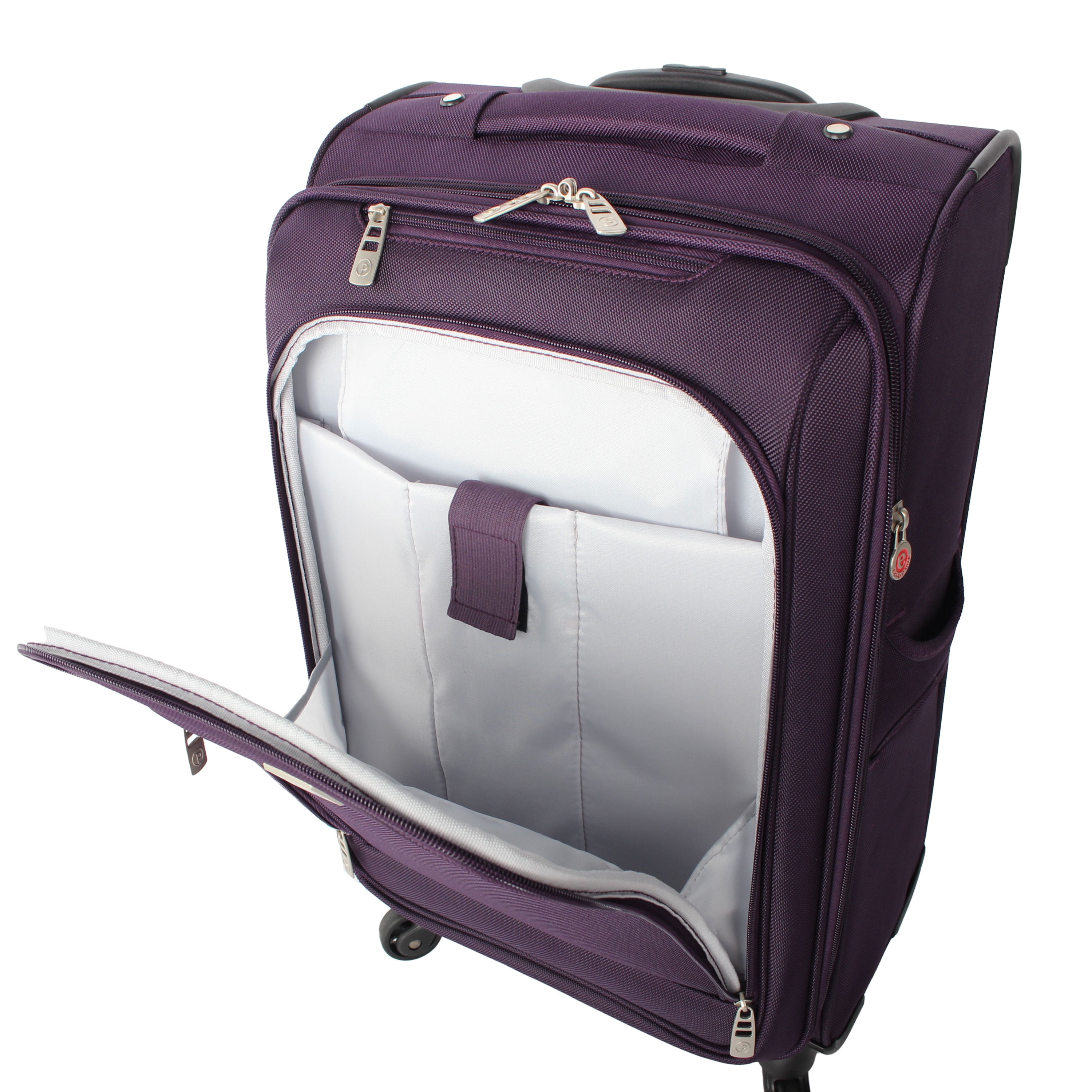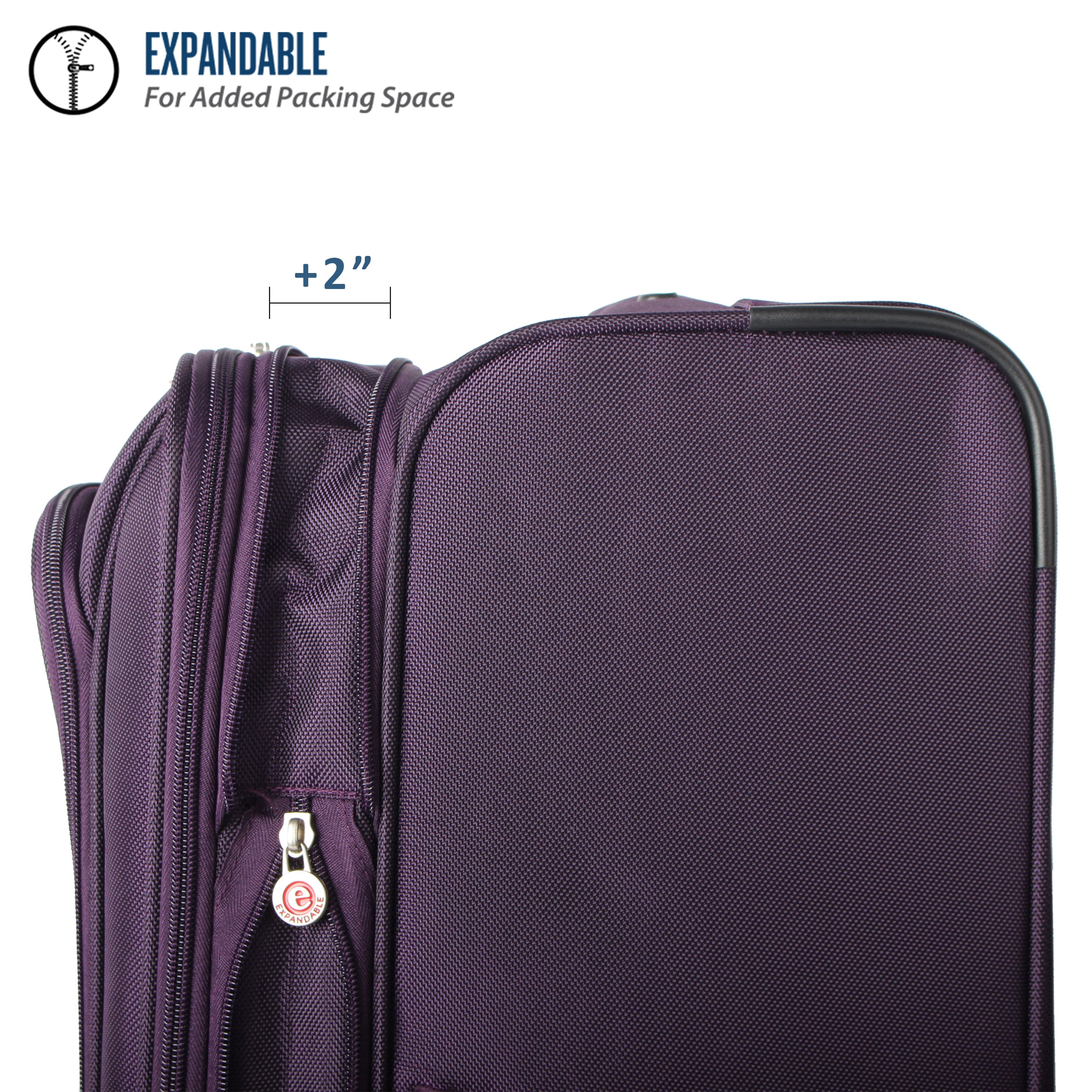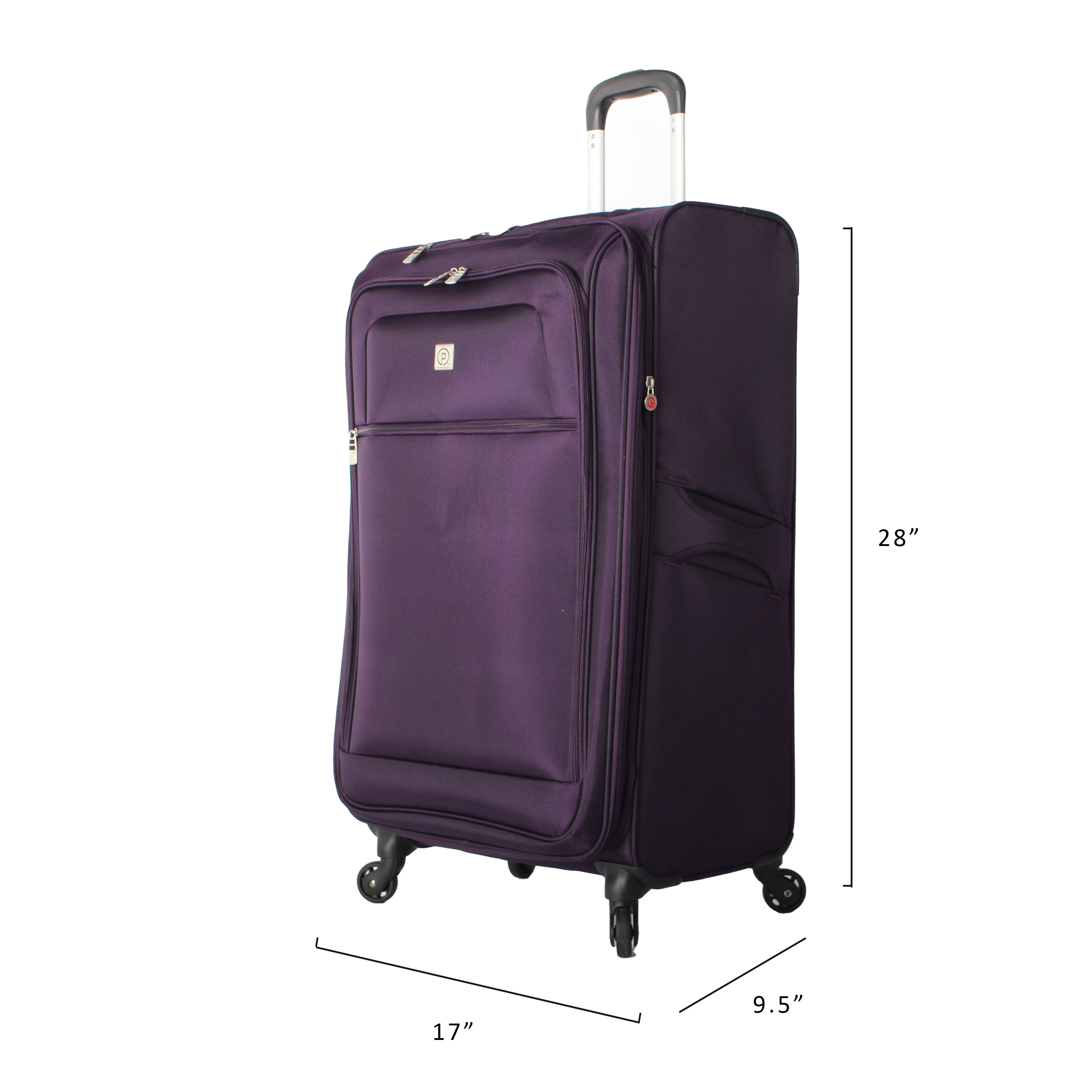 Protege Arendale 28″ Softside Expandable Rolling Spinner Luggage, Purple Material: 1680D Polyester Exterior measurements: 28″ x 18″ x 13″ Weight: 9.4 lbs Fully lined interior with wet pocket and zippered accessory pockets Locking telescopic handle and top and side carry handles for added convenience Four easy glide spinner wheels Expandable for up to 2″ packing capacity