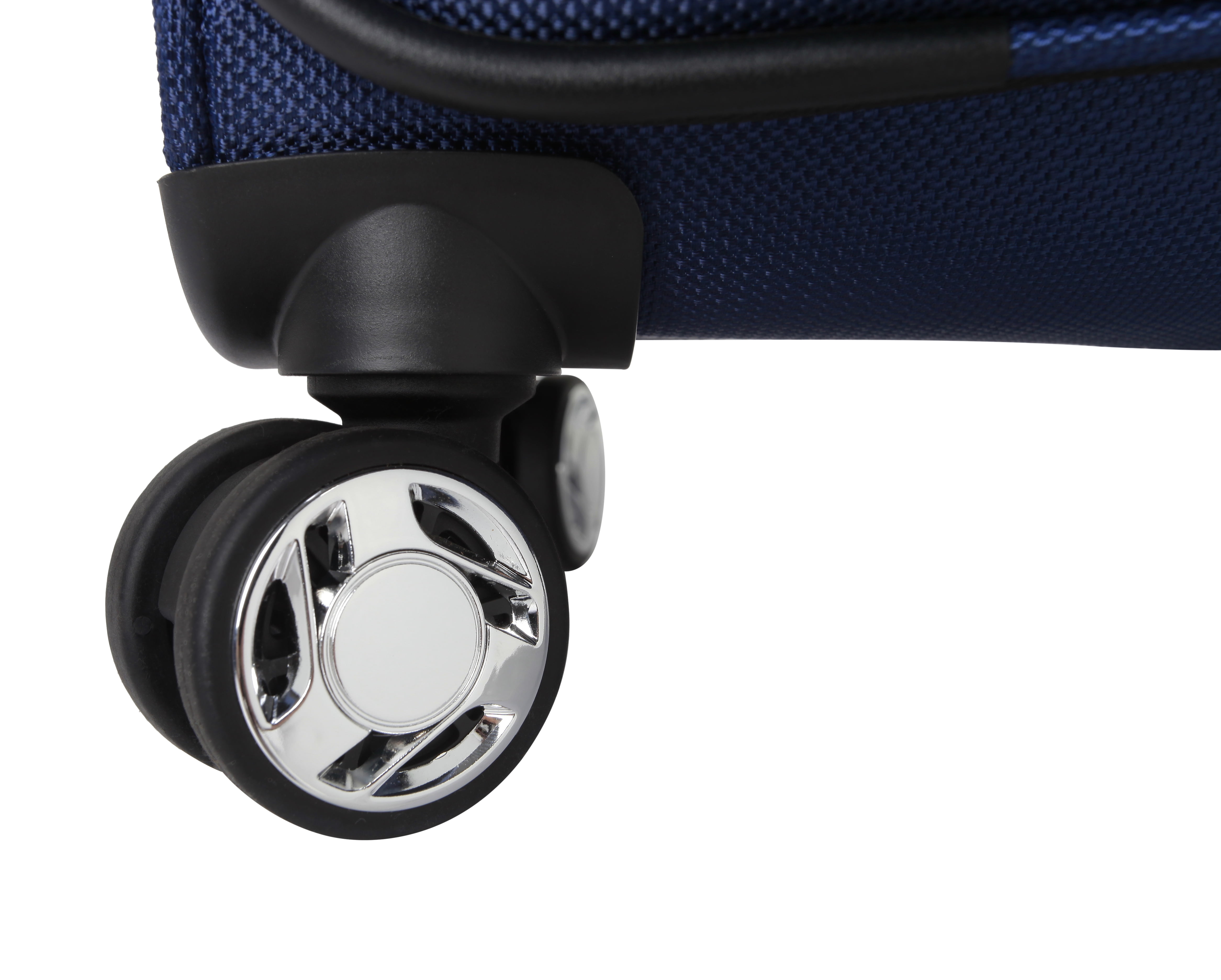 Made from a durable denier material TSA compatible zipper pulls for added security (*lock not included) Four 8-wheel 360-degree spinners for ease of movement 2-inch zip-around expansion for added packing space 2 exterior multi-functional pockets that are great for small accessories