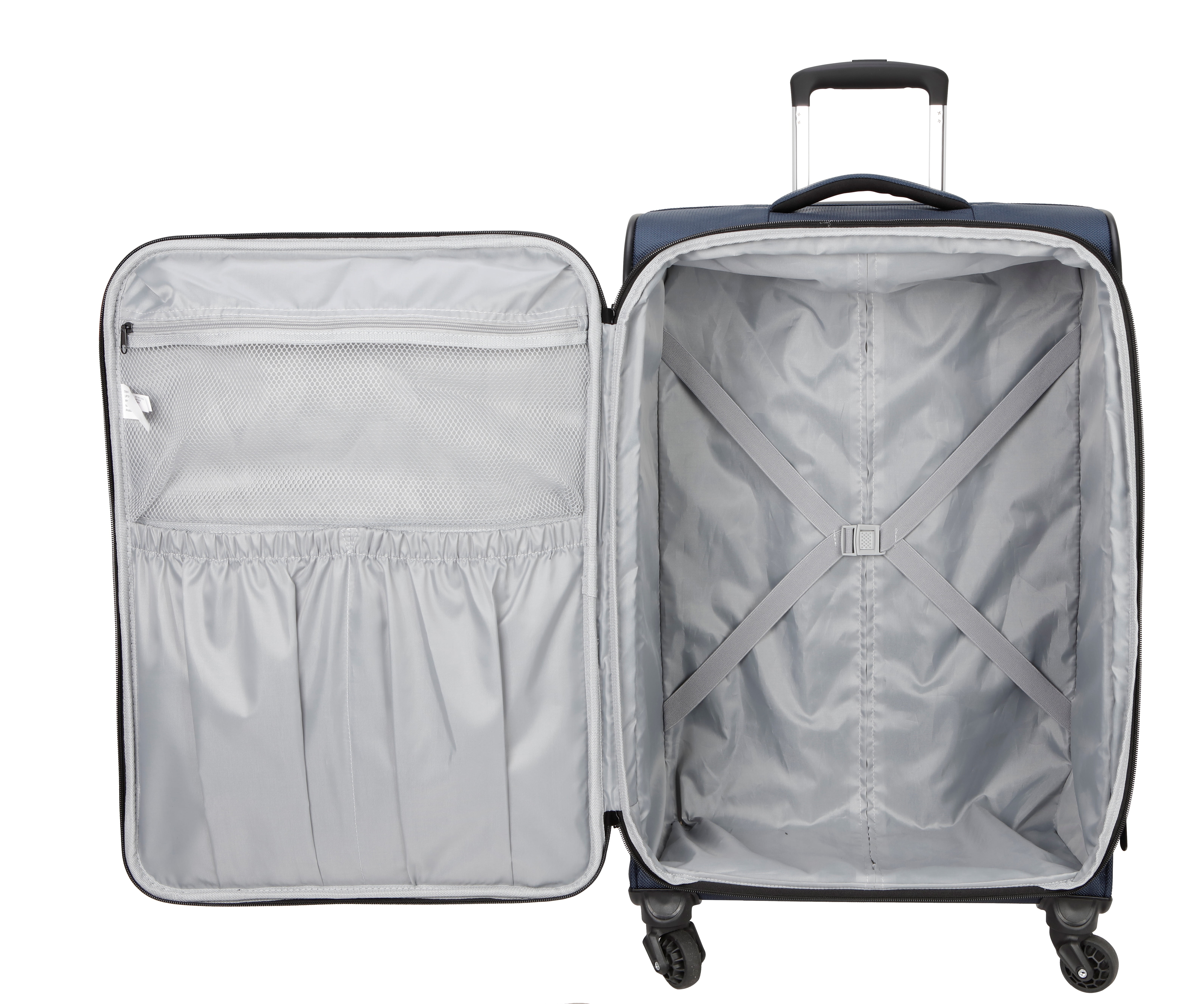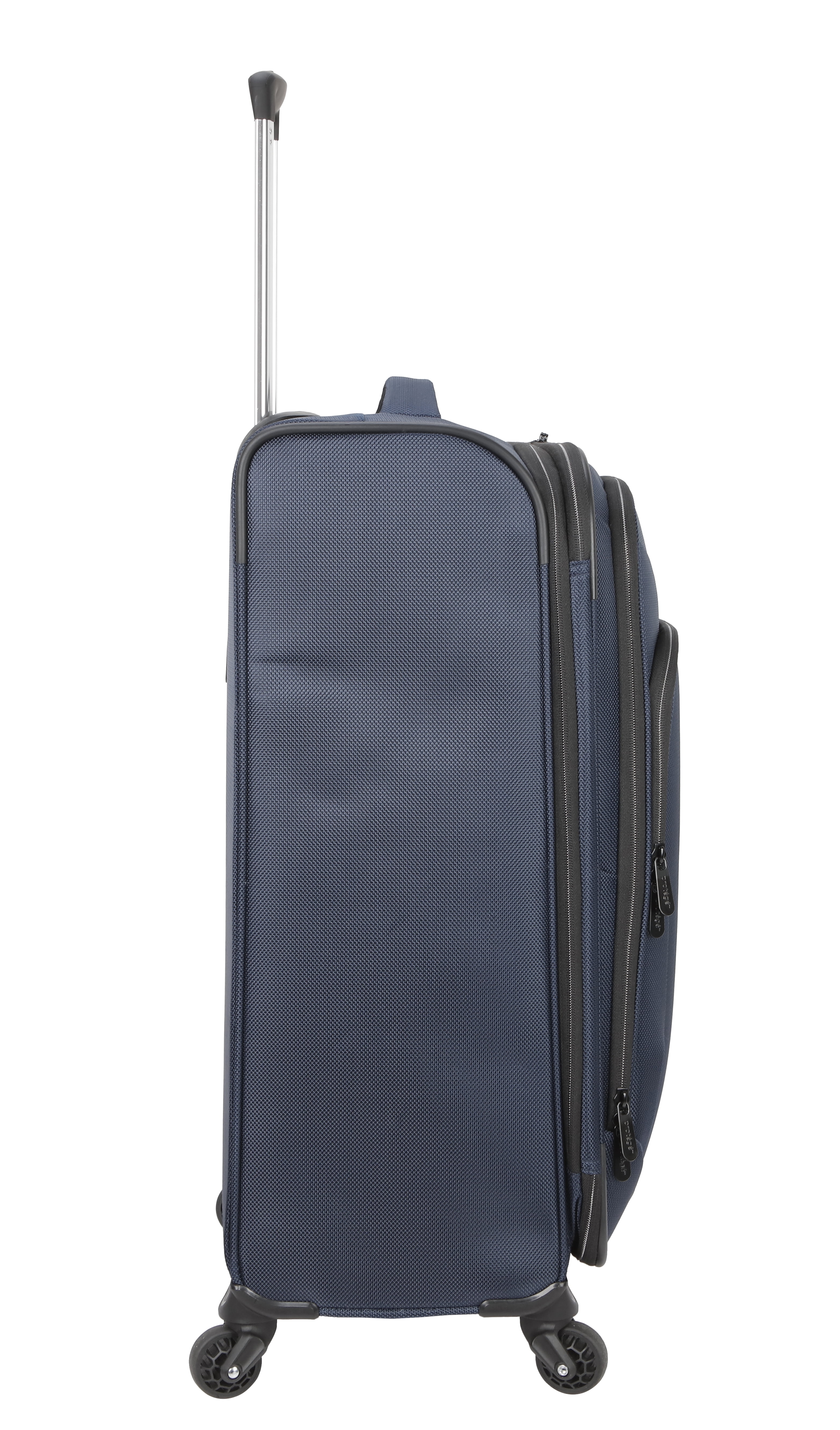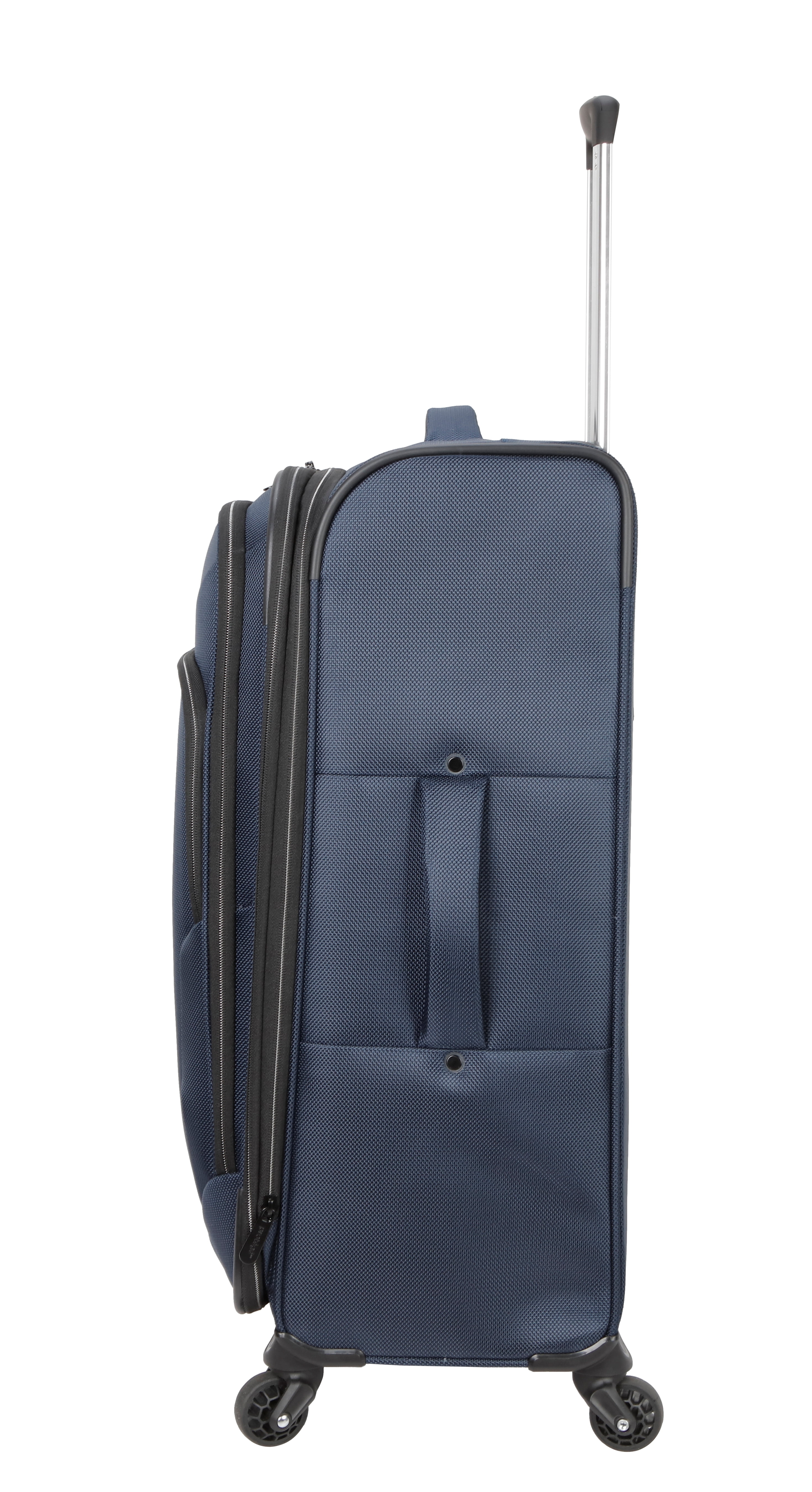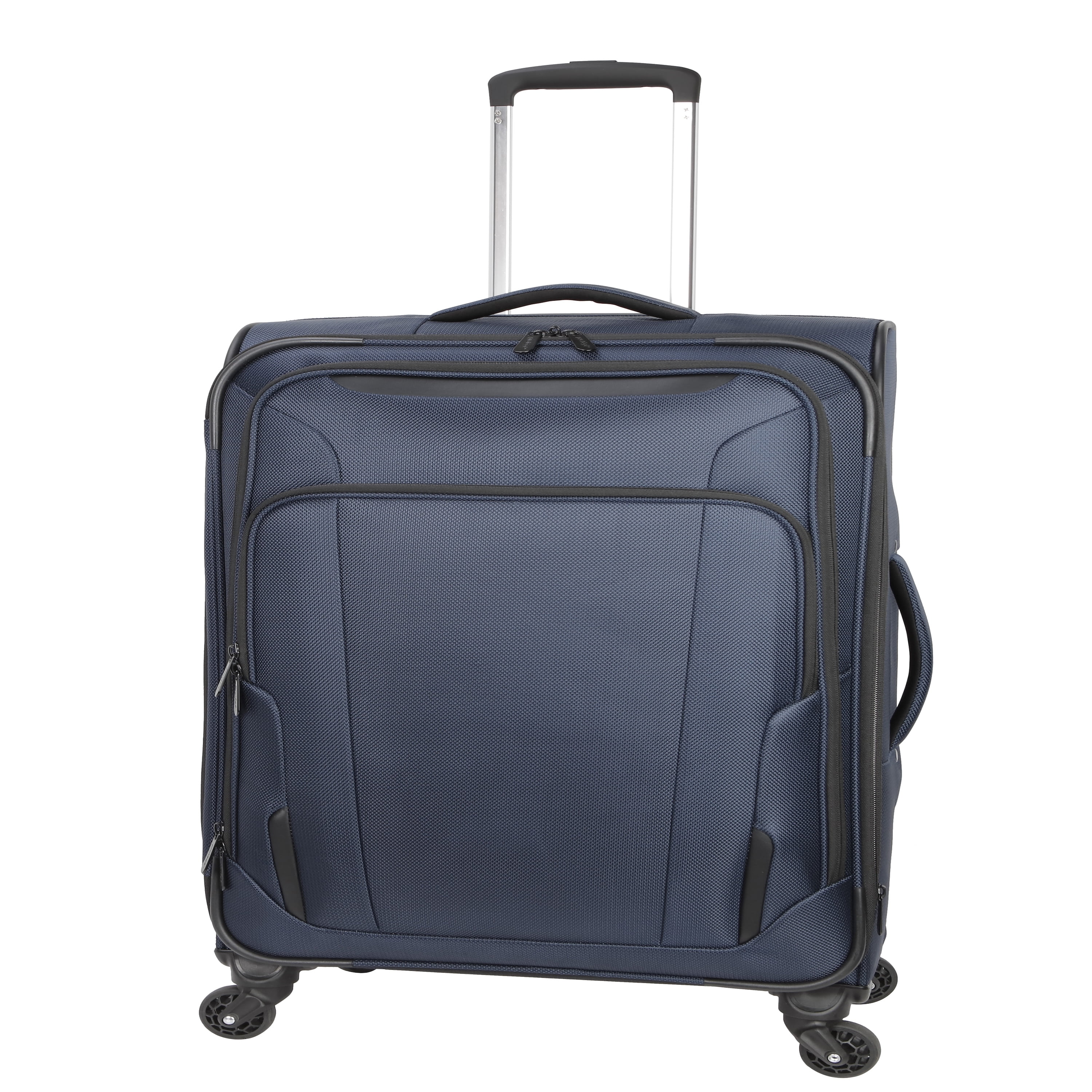 Protege Ashfield 29″ Softside Upright Luggage, Navy Blue Material: polyester Exterior dimensions (with wheels): 19.5″L x 12.5″D x 32″H Interior dimensions: 16″L x 9″D x 25″H Weight: 11.8 lbs TSA compatible zipper pulls for added security (lock not included) 2-inch zip-around expansion for added packing space 2 exterior multi-functional pockets that are great for small accessories Four 360-degree spinner wheels for ease of movement