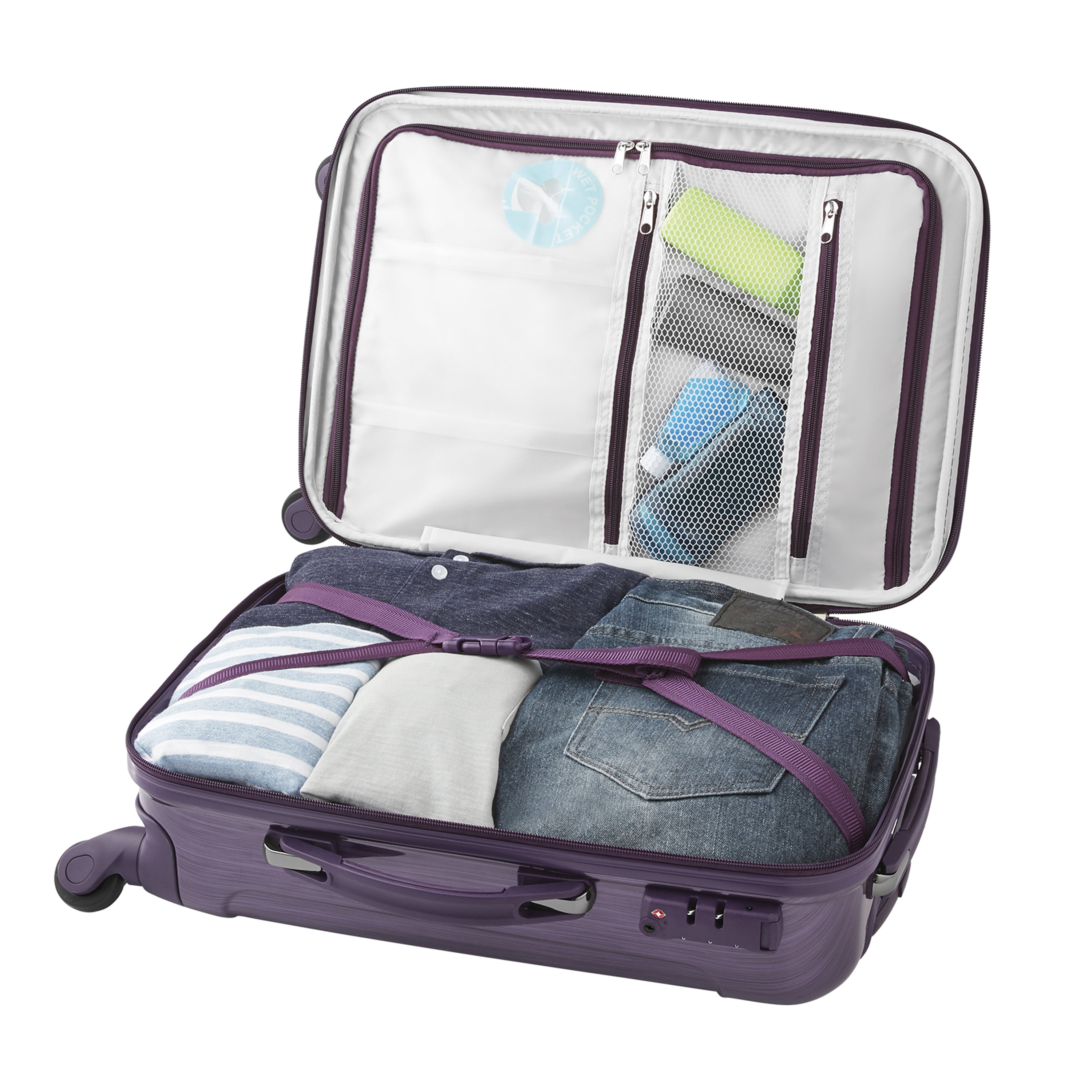 Protege Briarleigh 28″ Hardside Upright Luggage, Purple Material: ABS and polycarbonate Exterior measurements: 28″ x 12″ x 18.5″ Weight: 11.2 lbs Expands 2″ for extra packing capacity Fully lined with tie-down straps for your clothes Top and side soft grip carry handles Locking telescopic handle 4 easy-glide spinner wheels