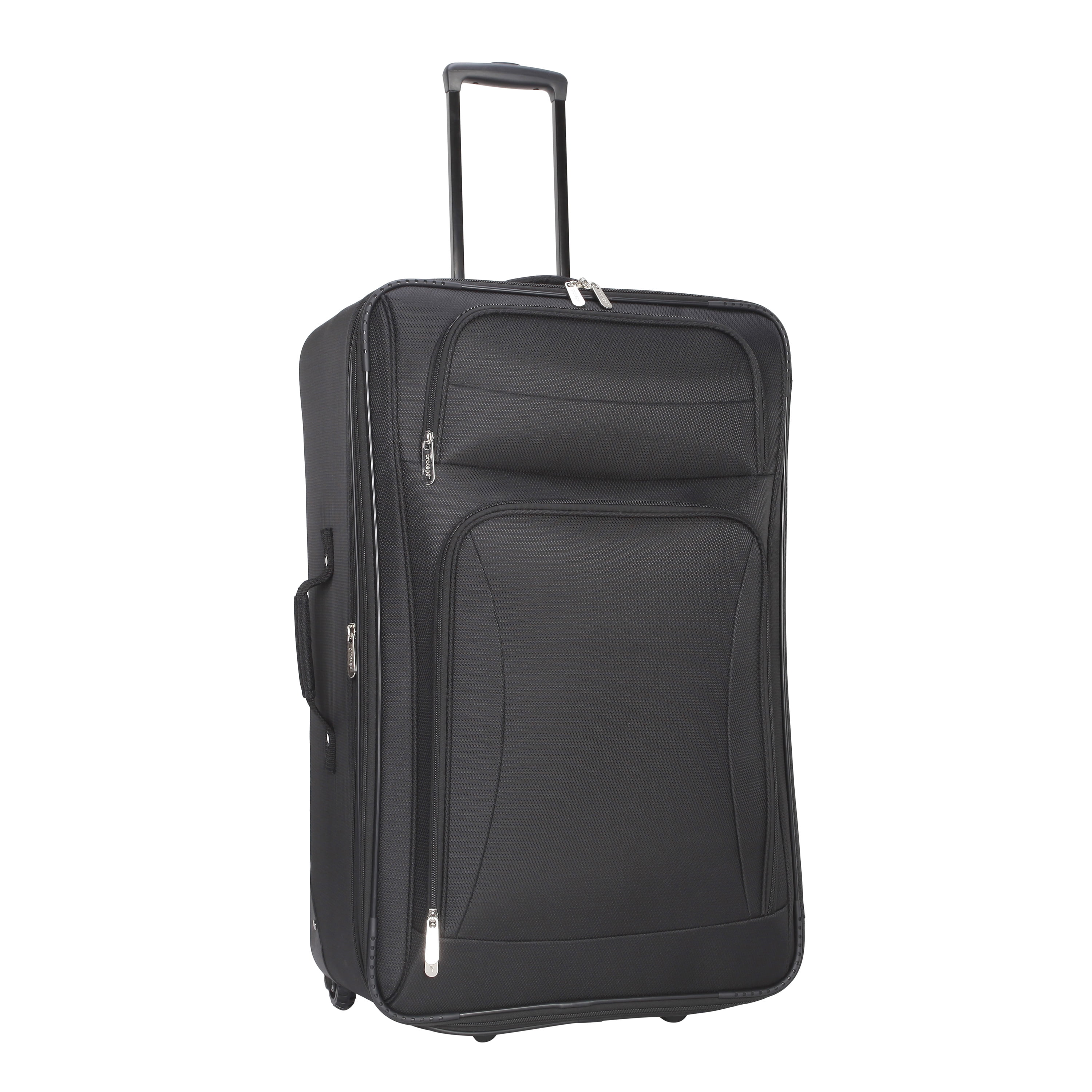 Take your next adventure in style with the Protege Regency 28-Inch Softside Upright Luggage. Featuring two low profile in-line skate wheels as well as a multi-stage push button handle that you can adjust to the height that best serves you, this bag will hold its look and style trip after trip. For those times when your feel like you’re running low on space, simply unzip the expansion zipper for an instant addition of up to two inches. With the deluxe interior compression straps, you can rest easy that your belongings will stay snug and secure during travel. The set of interlocking zippers bring an added value to these bags that can’t be beat. The stylish zippers fit snug together to allow a TSA approved lock to be securely fastened (lock not included). Pick up your next luggage piece today at an everyday low cost. Available in multiple sizes and colors you’re sure to find the bag best suited for any trip. Take your next family vacation or outdoor adventure to the next level with this Protege Regency 28-Inch Softside Upright Luggage.