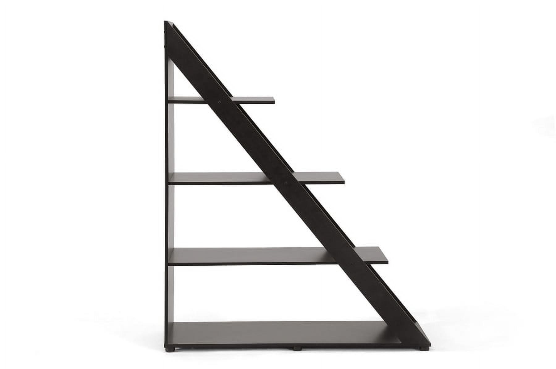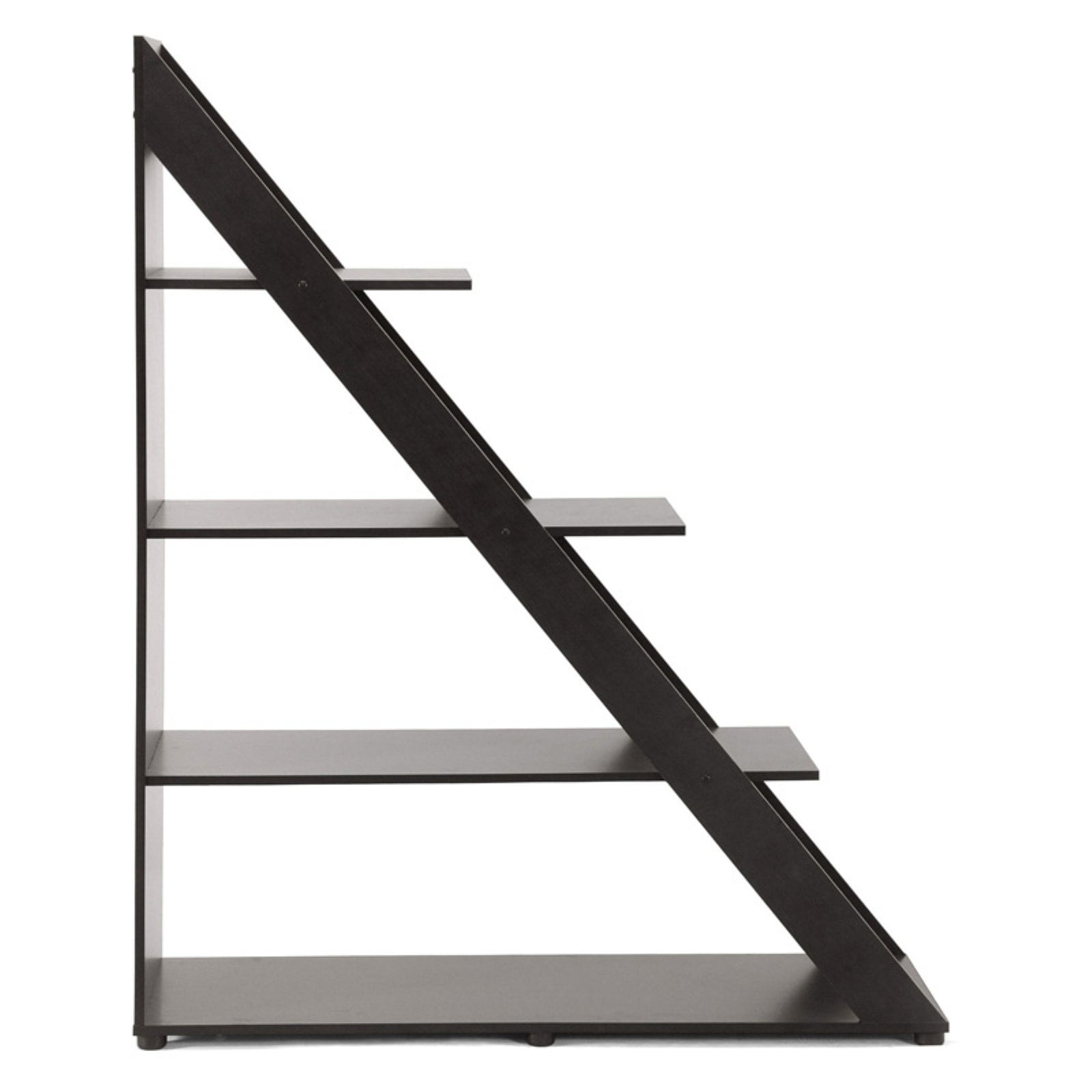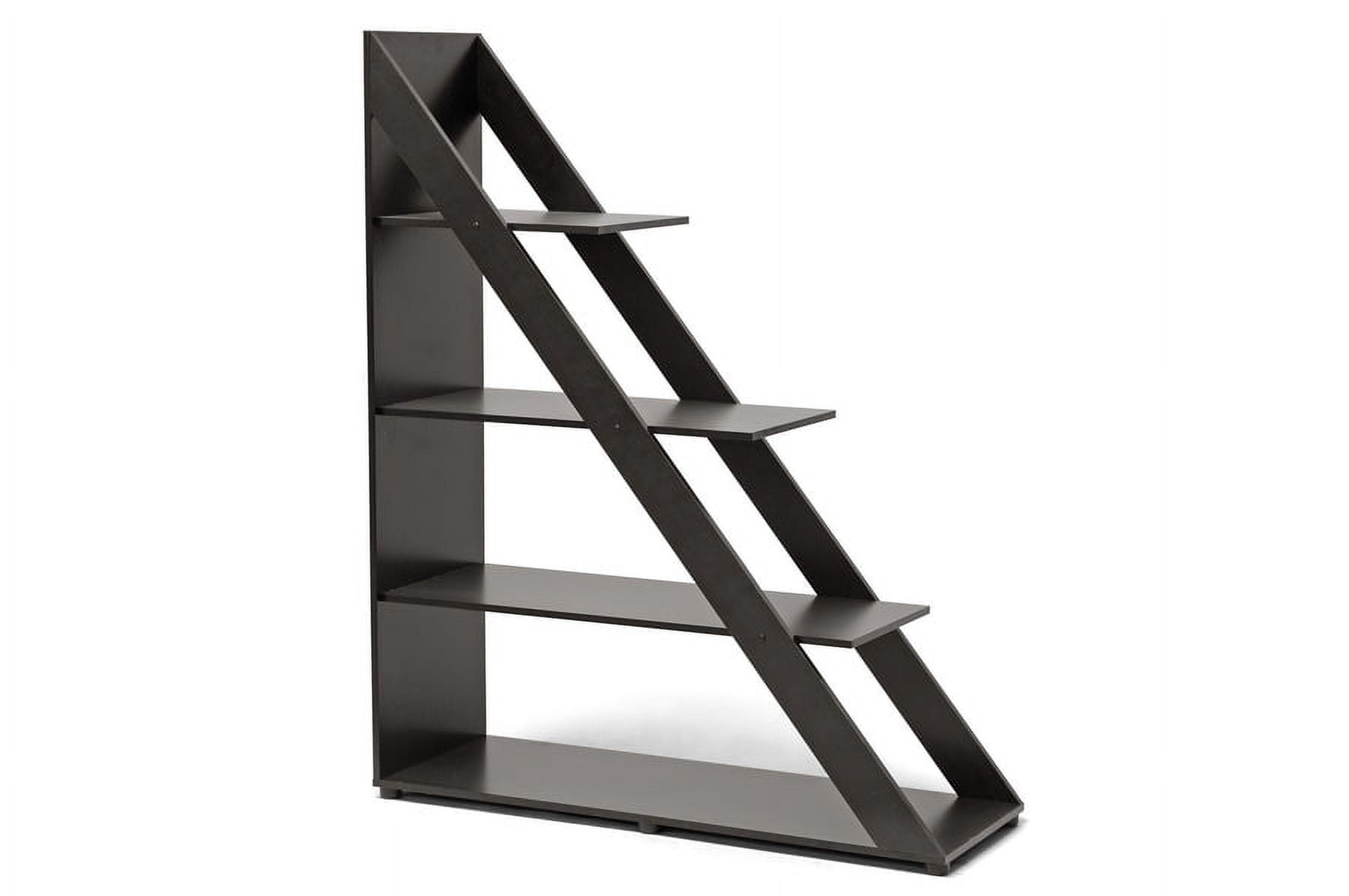 Stylishly divide your space with our Psinta Designer Shelving Unit. This versatile diagonally-designed display cabinet functions equally well against a wall or as a small room divider. Engineered wood is finished with dark brown faux wood grain paper veneer for an overall elegant, classic appeal. The Psinta Contemporary Display Shelf is made in Malaysia, requires assembly, and should be wiped clean with a dry cloth. Features: Color: dark brown Made of engineered wood and faux wood grain paper veneer Modern style Works well as a room divider Product Weight: 53lbs Specifications: Product Dimensions: 59″ H x 47.75″ W x 15.87″ D