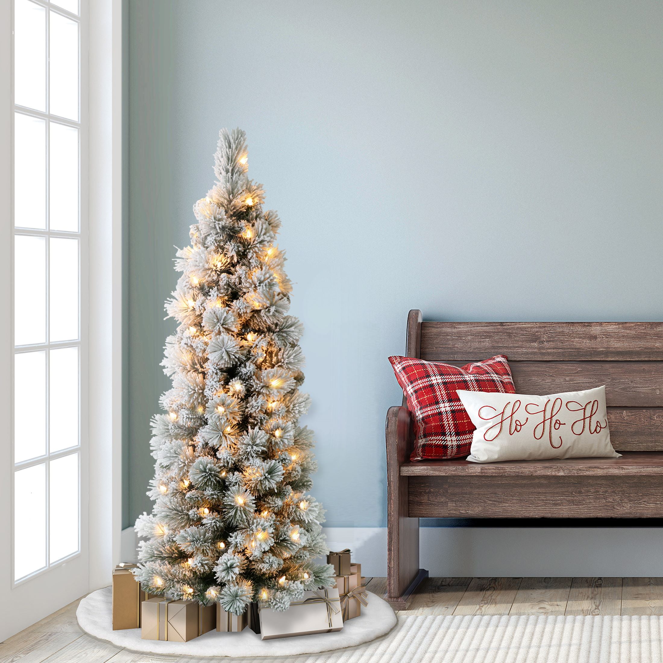 Puleo International 4.5 ft. Pre-Lit Flocked Portland Pine Pencil Artificial Christmas Tree