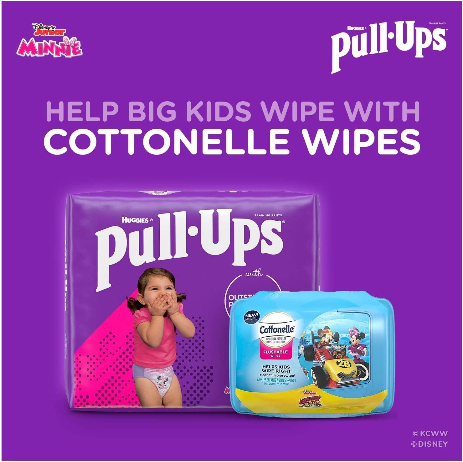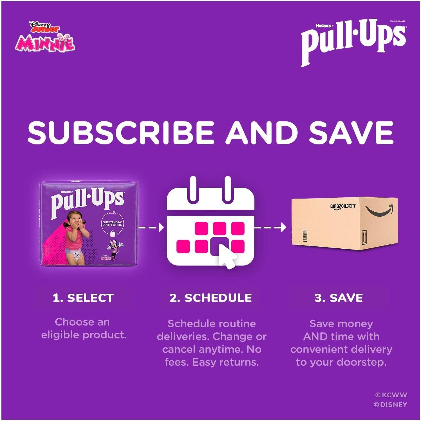 Potty training pants with all-around coverage, extra absorbency & leak protection where your child needs it most Easy-open sides on potty training underwear let you keep clothes on your toddler for quick changes on-the-go or at home Soft, stretchy sides that move up & down make potty training easy & promote Big Kid independence Customize your child’s waistband and easily check for messes with Pull-Ups’ refastenable sides Exclusive graphics of Disney’s Minnie Mouse that fade when wet to help your child learn Packaging may vary from image shown