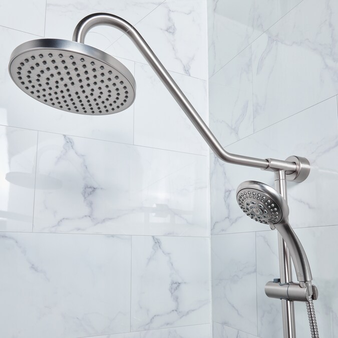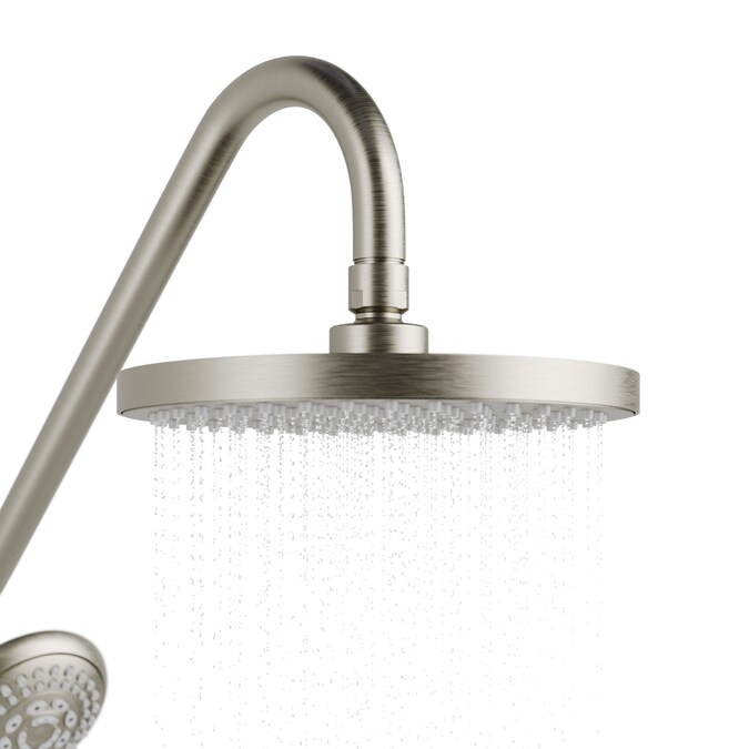 - 8-in rain shower head with soft tips to clear mineral buildup for long lasting performance