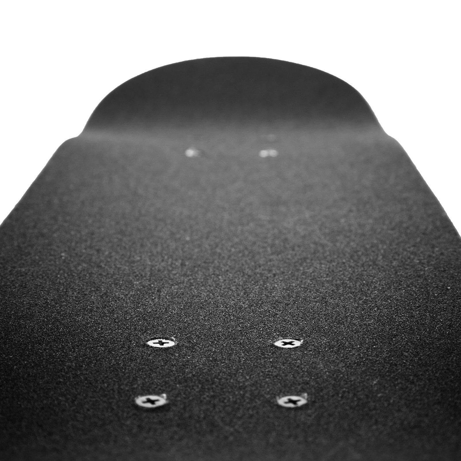 31″ x 7.5″ 7-ply Canadian maple top and bottom deck. Double kick and deep concave. 80AB black grip tape. 5″ punisher alloy trucks. 54 mm x 36 mm white PU cast wheels. PE riser. PU cast white cushion.