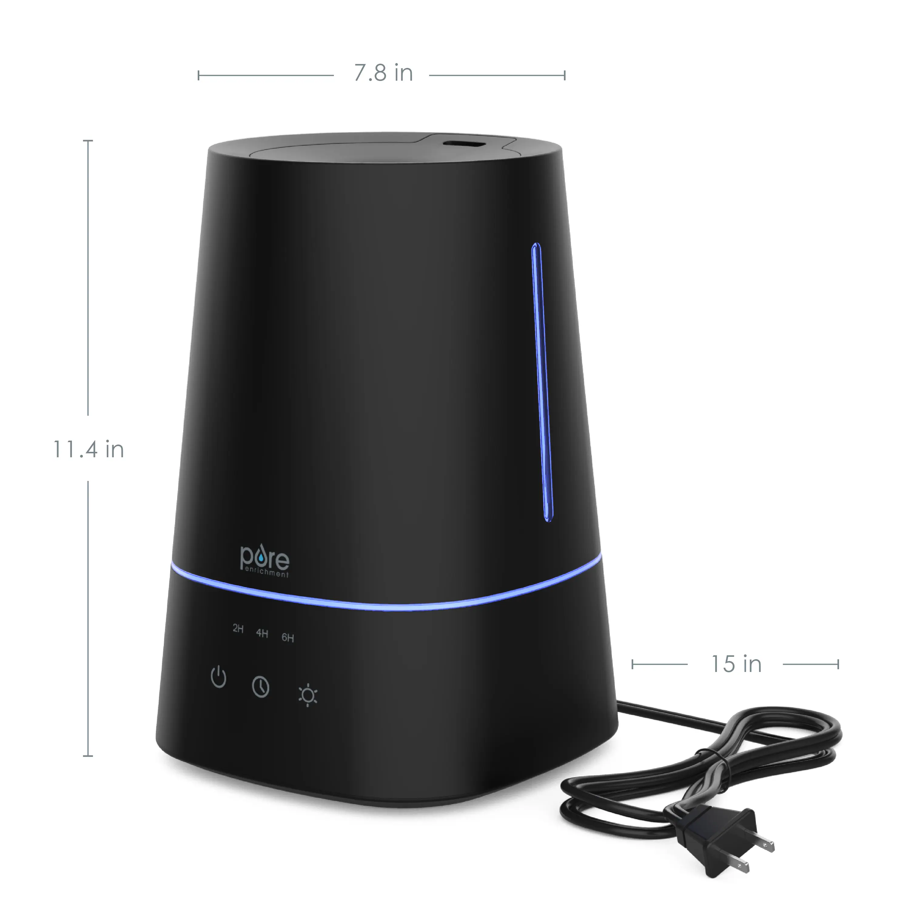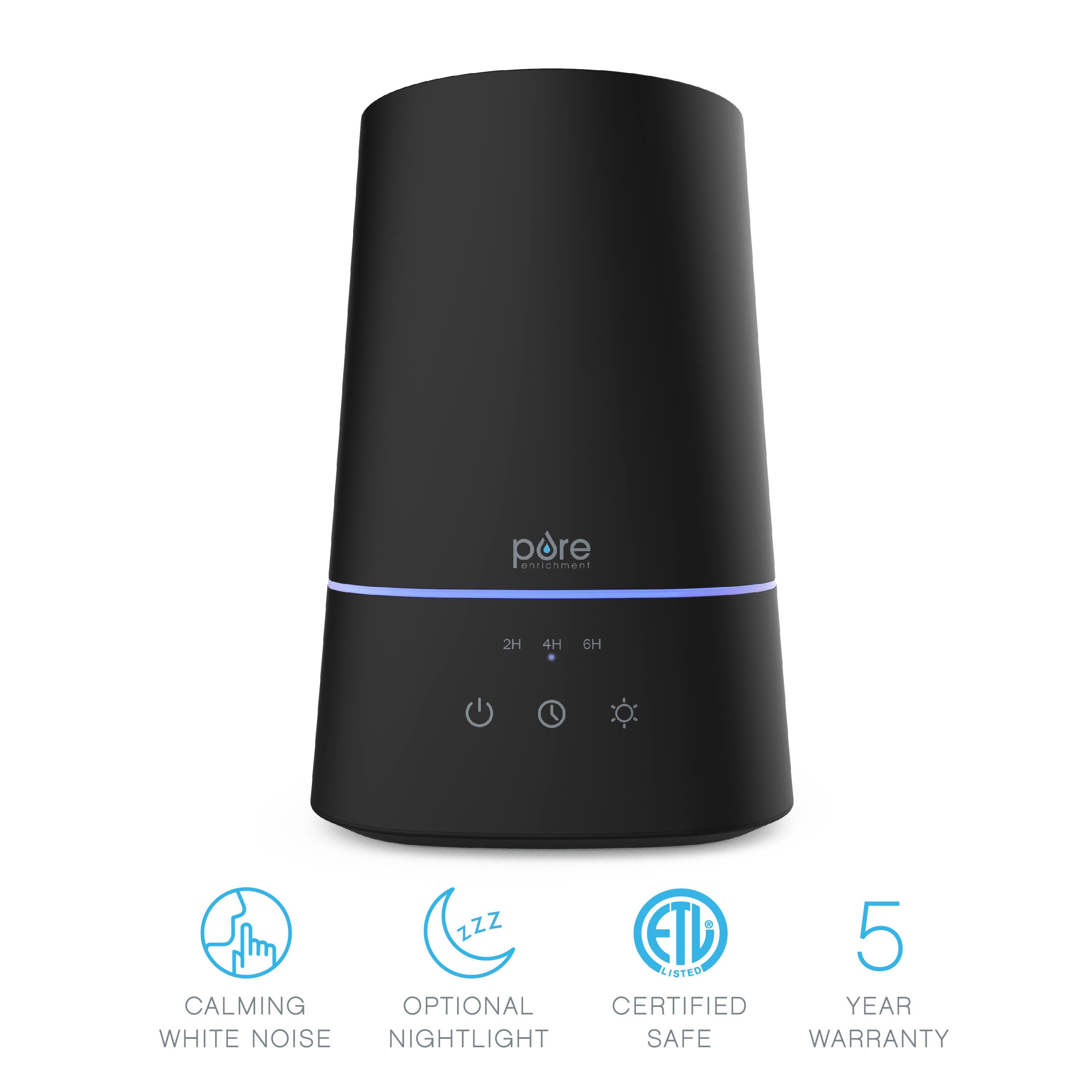 Breathe comfortably in a moisturized home with the HUME Max Top Fill Humidifier from Pure Enrichment. Unlike other ultrasonic humidifiers, this true top fill design takes the mess out of refills and at almost a 1 gallon capacity, spends more time keeping your home at the ideal climate for up to 30 hours. Add an essential oil of your choosing to take advantage of the oil diffuser component to create a space luxuriously catered just for you. A TANK BUILT FOR EASE: Our cool mist humidifier helps alleviate the effects of dry air longer with its innovative design, making refills easier. The wider base eliminates hard-to-reach components so cleaning is a breeze. MIST SETTINGS FOR EVERY PREFERENCE: At a performance level providing 10 ounces of output per hour, this powerful humidifier stylishly complements any room with low to high mist settings for rooms up to 300 sq ft. YEAR LONG COMFORT: Bask in the benefit that only a top-notch humidifier provides a home, office, or nursery. With a consistently regulated climate, sleep better and gain relief from cold-like symptoms and sinus issues. Prevent harmful dry air, day or night with HUME Max. Product Specifications: Size: 7.8″ x 7.8″ x 11.4″ | Max Run Time: 30 hours (Low); 12 hours (High) | Coverage: Up to 300 sq. ft. | Tank Capacity: 3.7 liters (1 gallon)