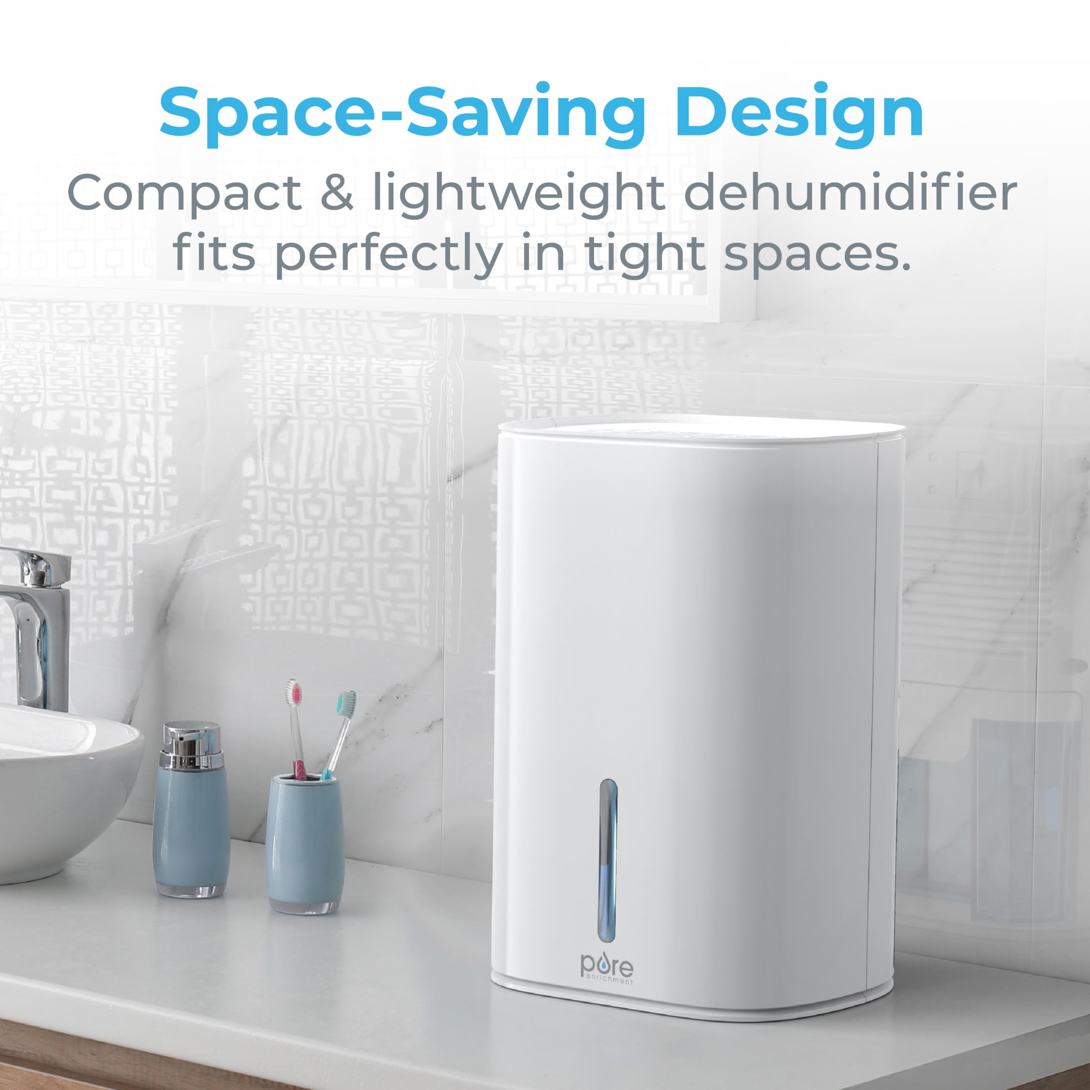 Pure Enrichment PureDry Mini Dehumidifier – 27oz Compact Water Tank Eliminates 300ml/day of Excess Moisture from Closets, Bathrooms, Boats, Kitchens, and Other Small Rooms and Living Spaces