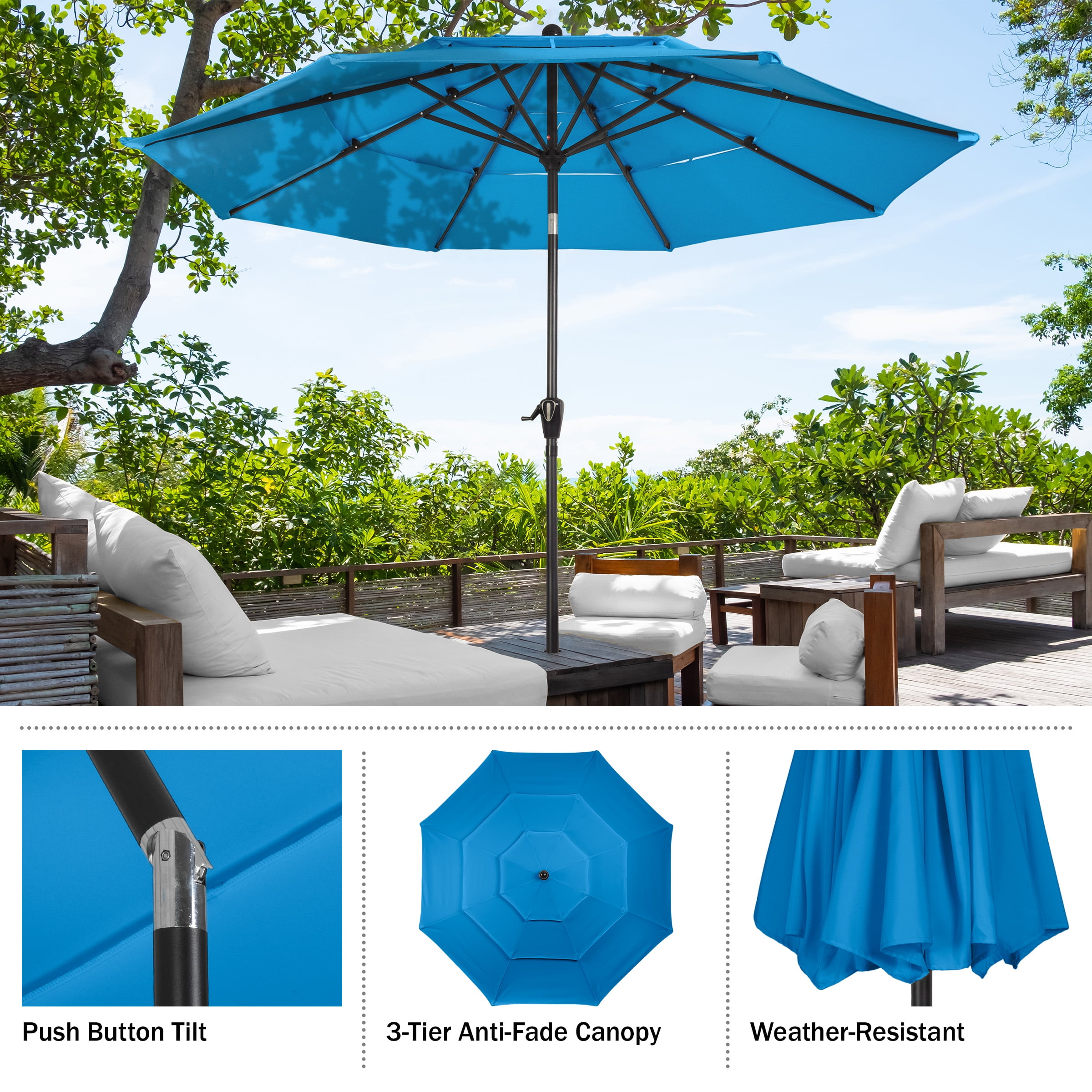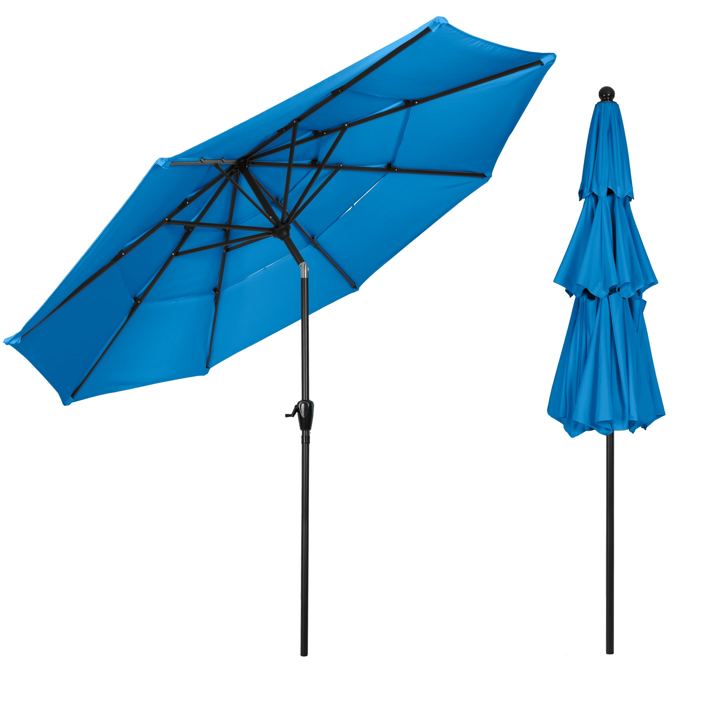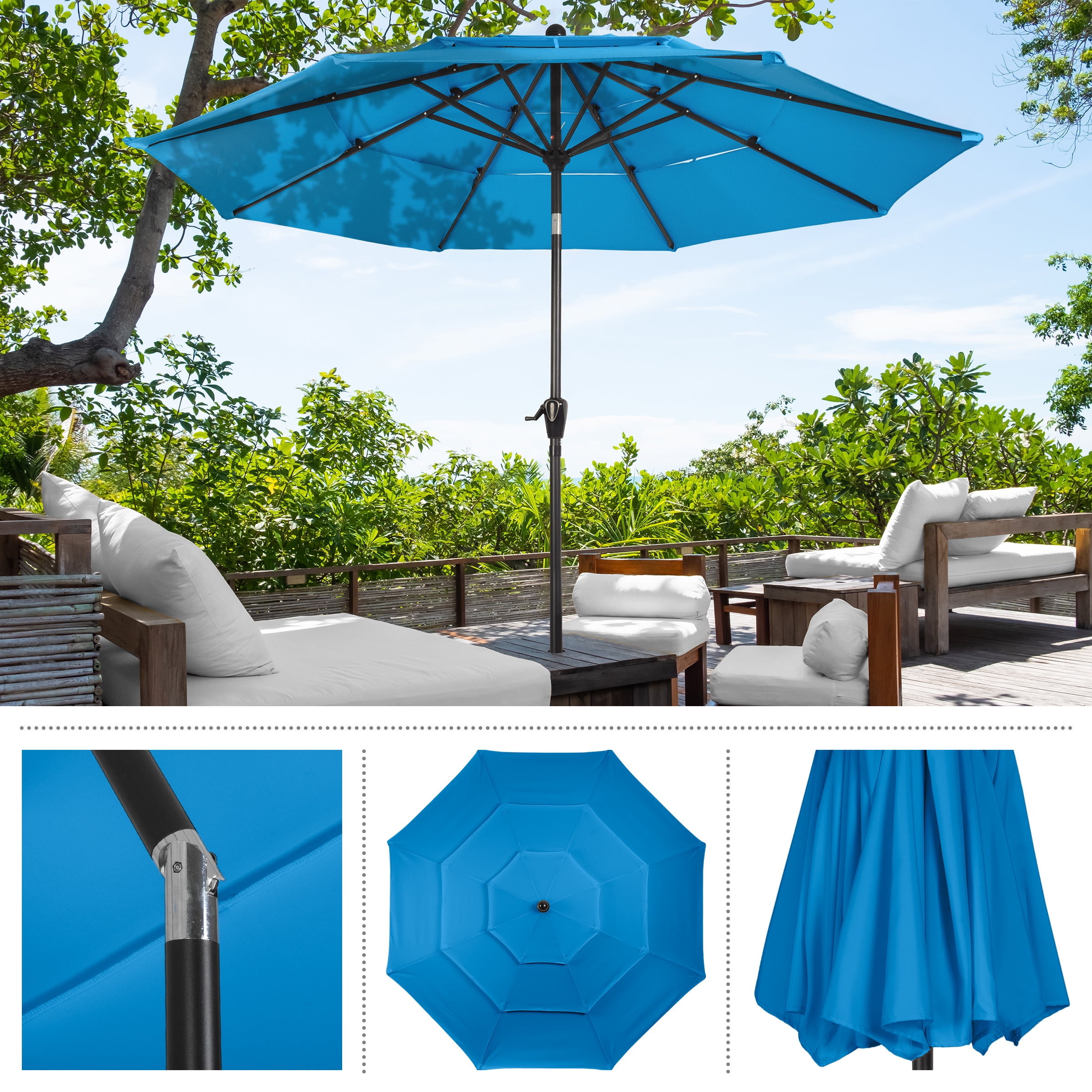 Pure Garden 10 ft Patio Umbrella – 3-Tier Outdoor Sunshade with Tilt, Blue