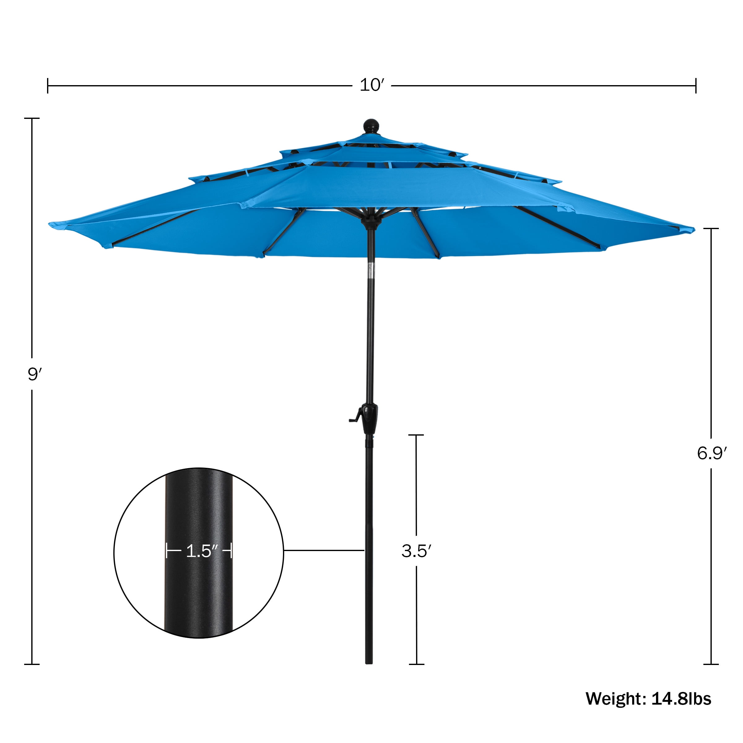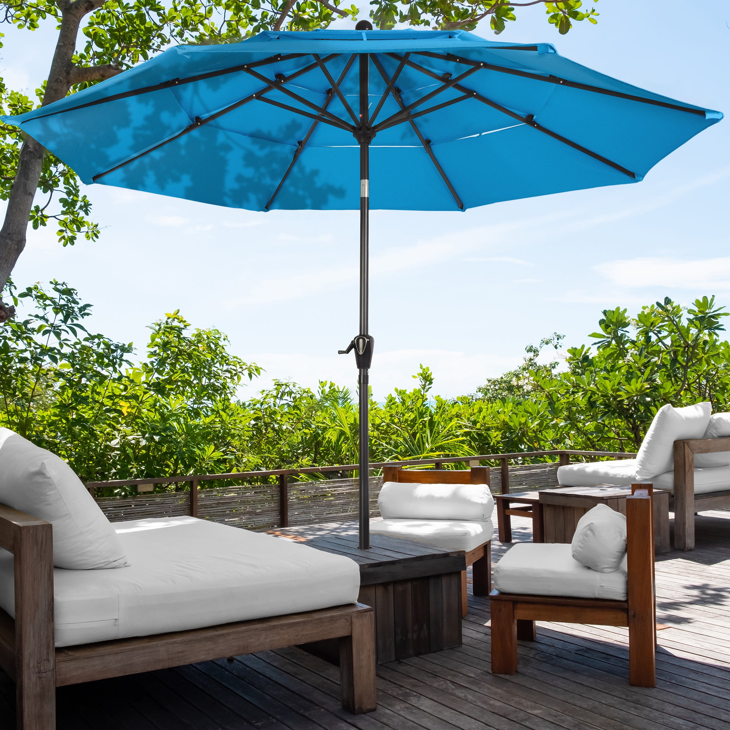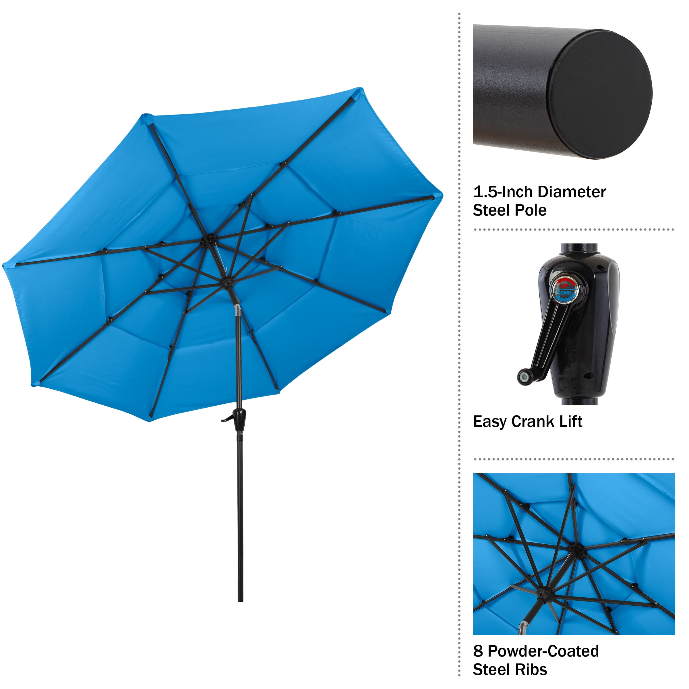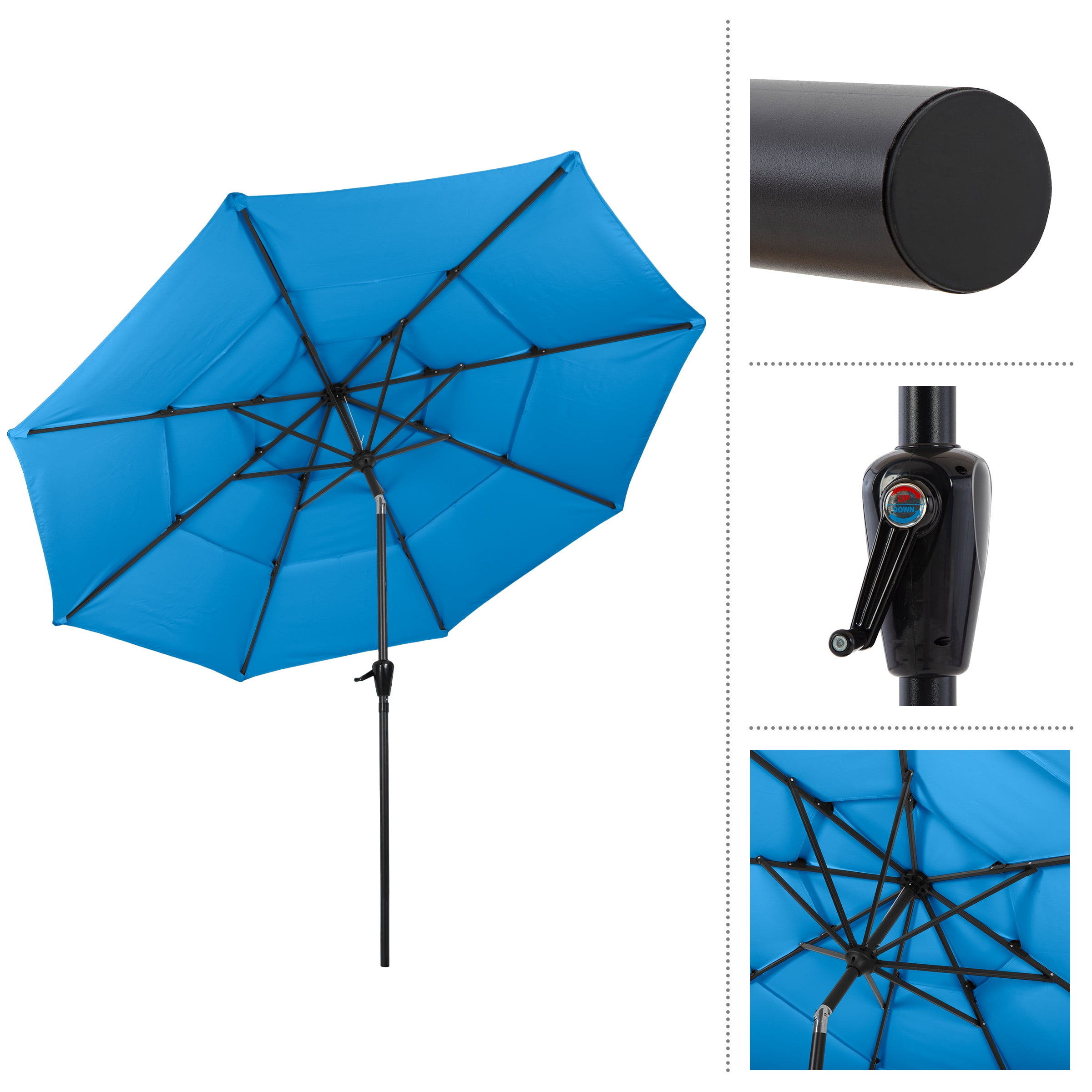 Pure Garden 10 ft Patio Umbrella – 3-Tier Outdoor Sunshade with Tilt, Blue