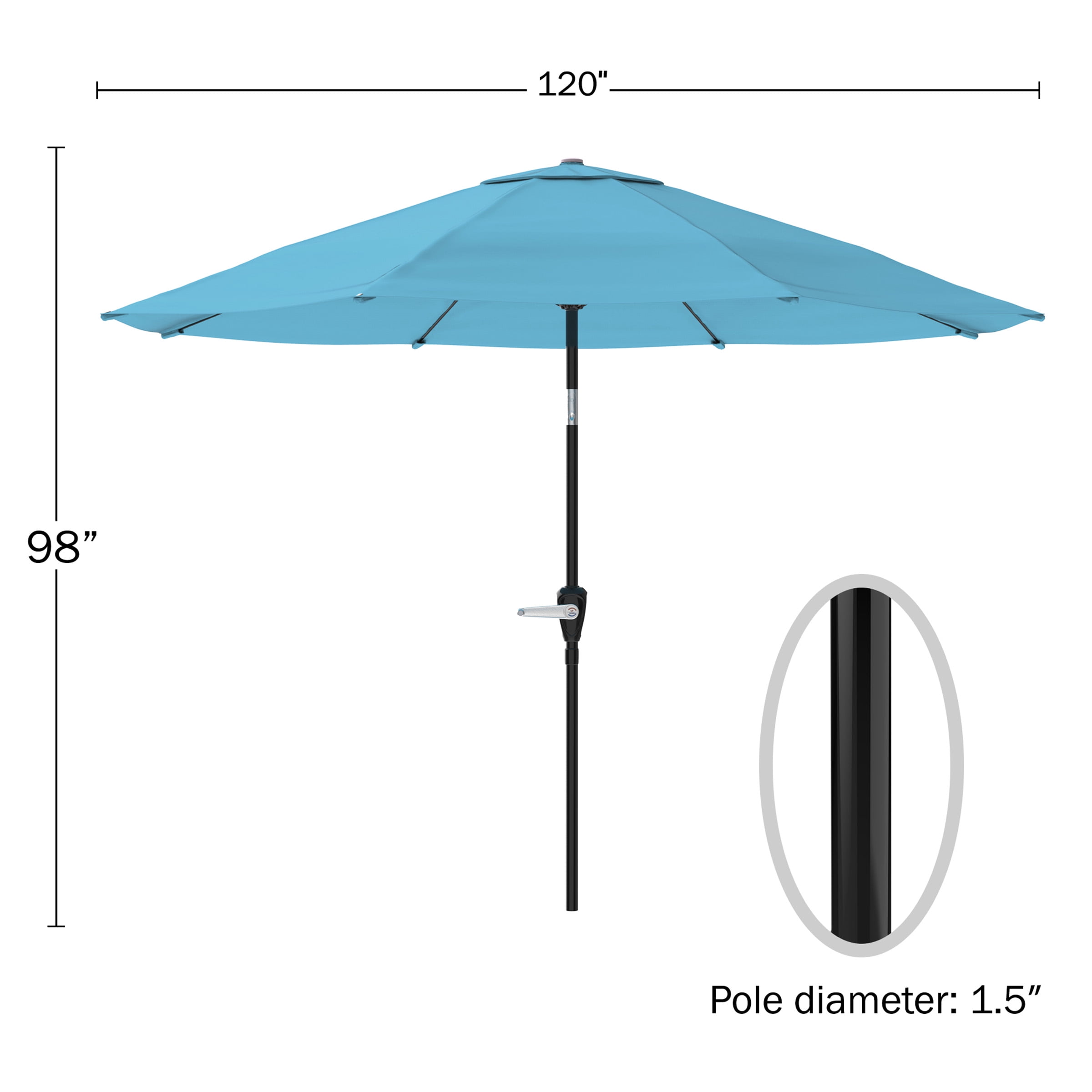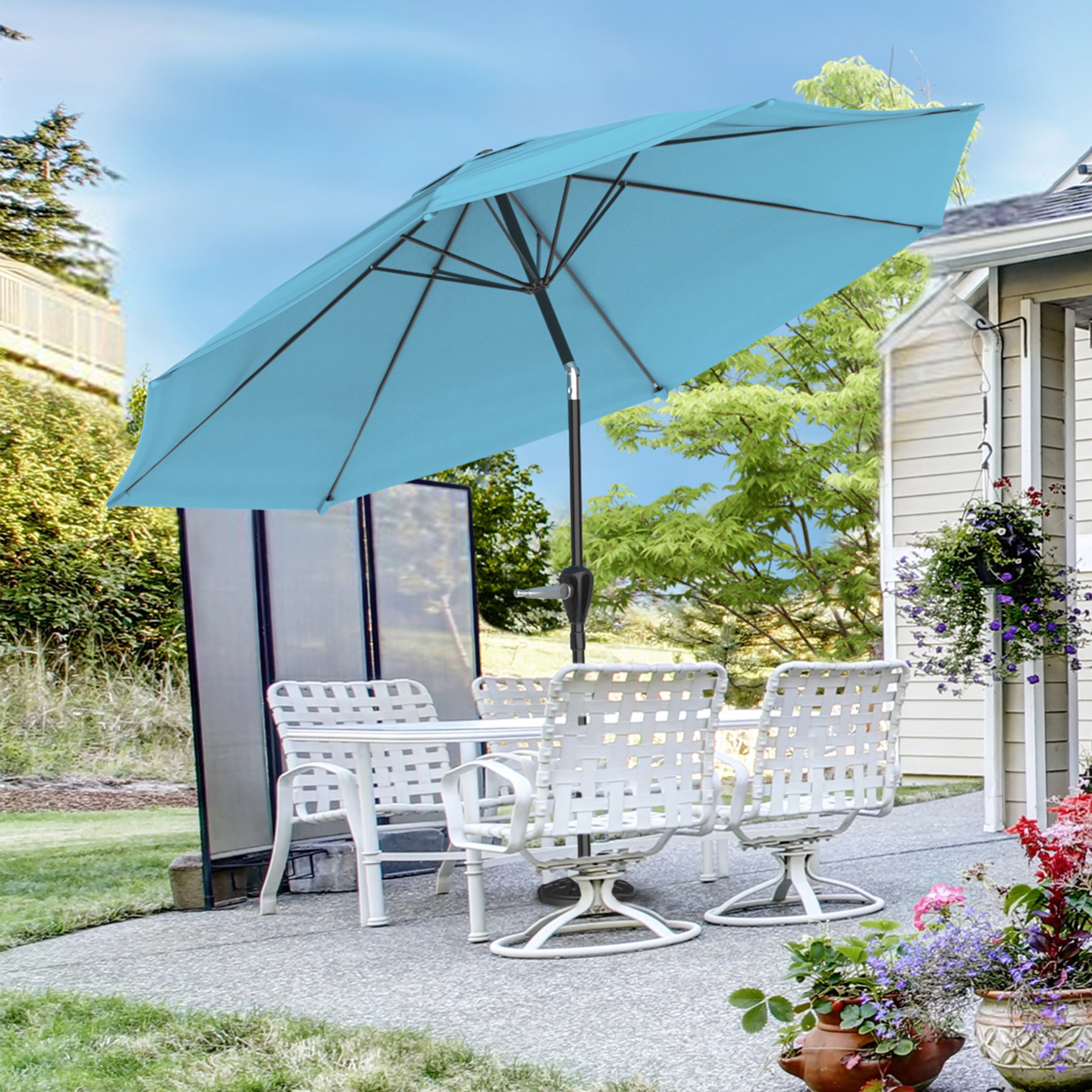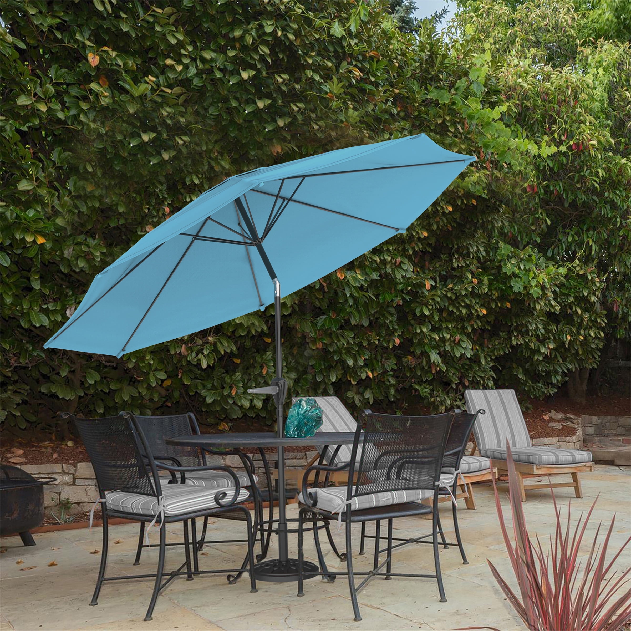Create comfortable shade for your next backyard get-together with the help of the 10-Foot Patio Umbrellas by Pure Garden. The easy-to-use hand-crank opens and closes the large patio umbrella in seconds while the convenient auto-tilt feature blocks sunlight from dawn till dusk, so you can relax in the shade during hot summer days. This blue umbrella fits tables and patio bases with a 1.5-inch diameter, providing enough shade for picnic table sets for four to six people or to shade part of your pool for pleasant swimming and relaxation on balmy days. Important: Pure Garden is committed to providing the consumer with the absolute best price and value on our entire line of products. Note: This is an exclusive product of Pure Garden and only Outdoor Umbrellas by Pure Garden are guaranteed to be genuine. Avoid buying counterfeit products and transacting with unauthorized sellers.