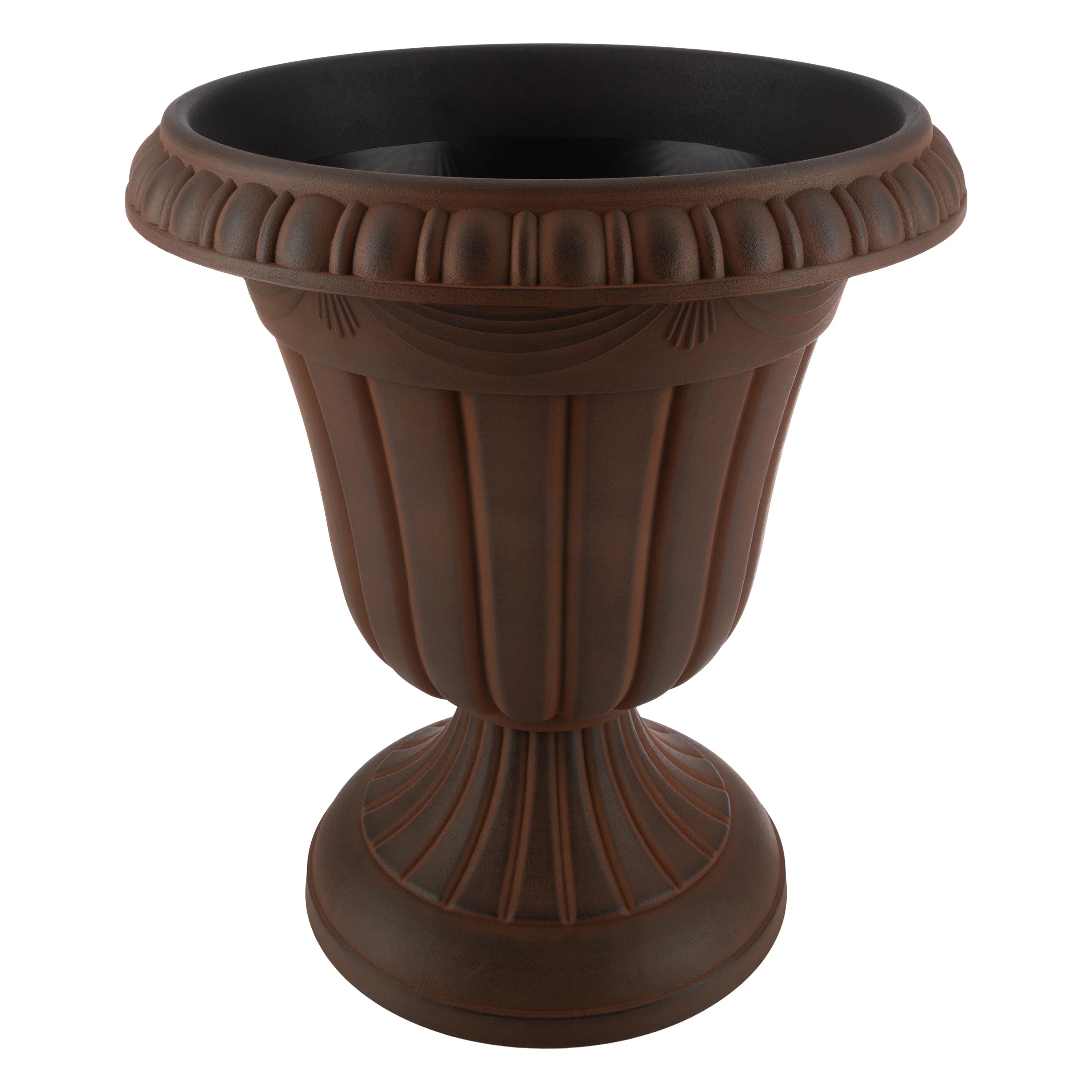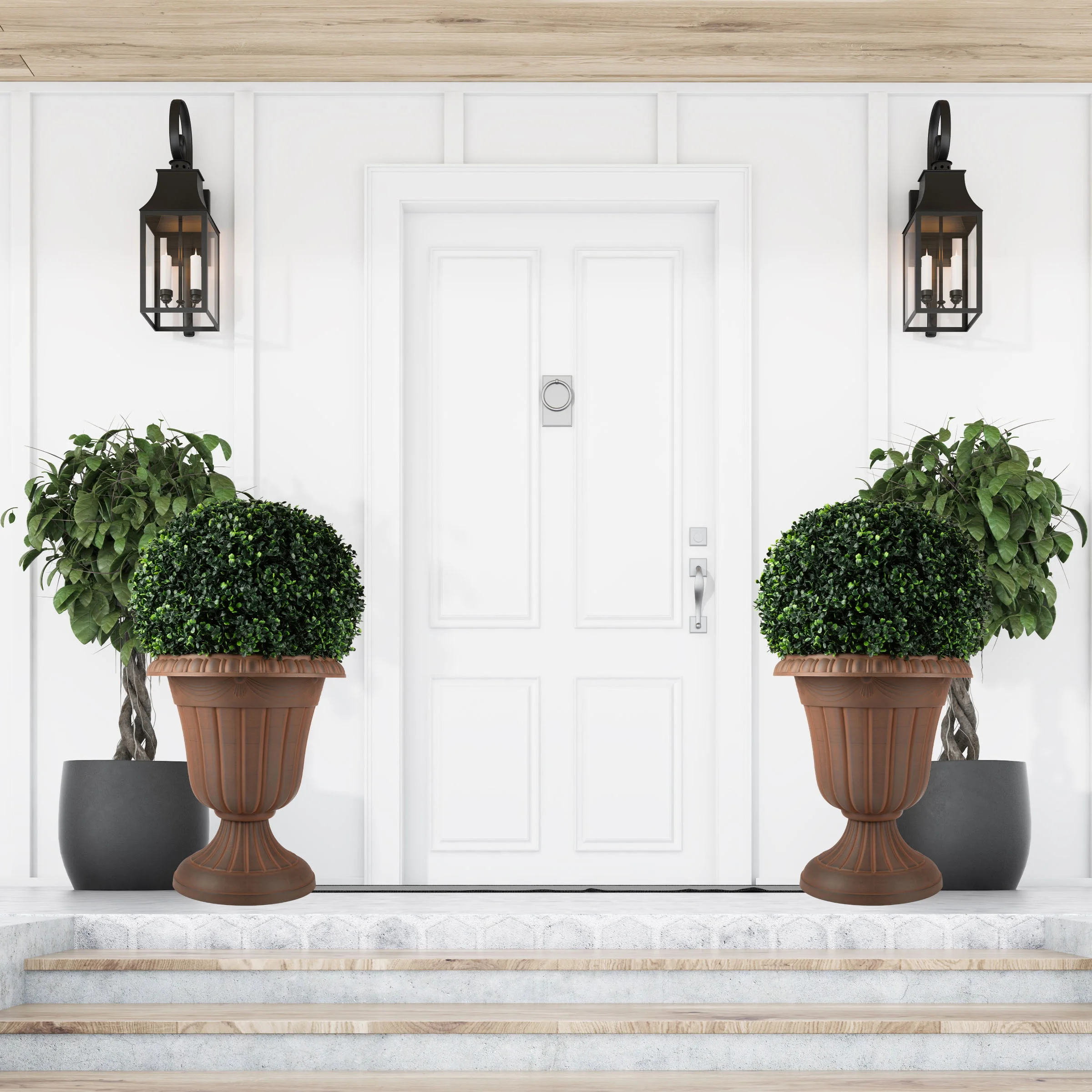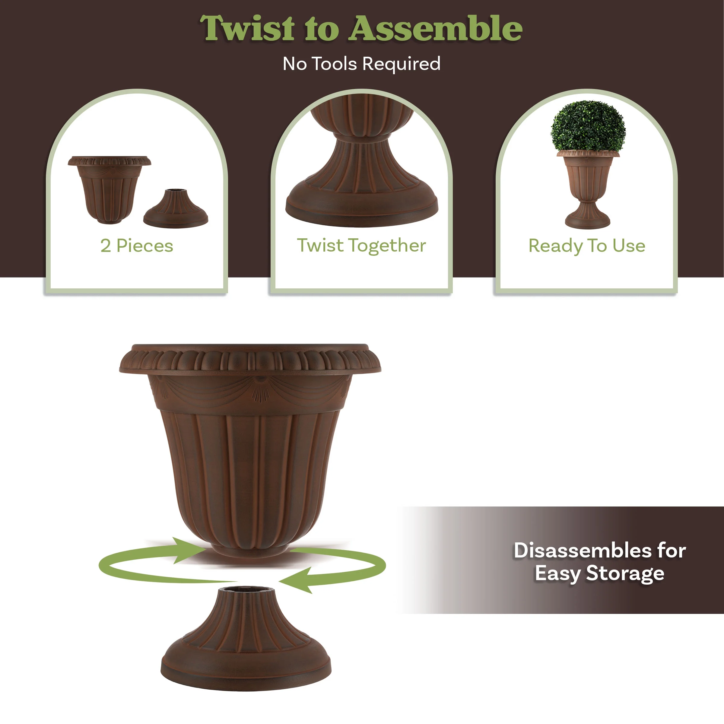 Pure Garden 16×18-Inch Outdoor Planter 2-Pack – Plastic Urn Planters, Brown