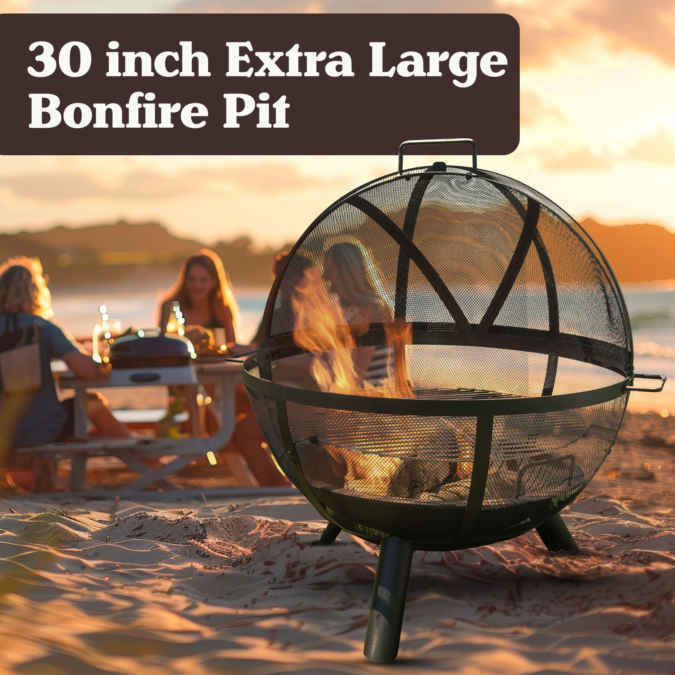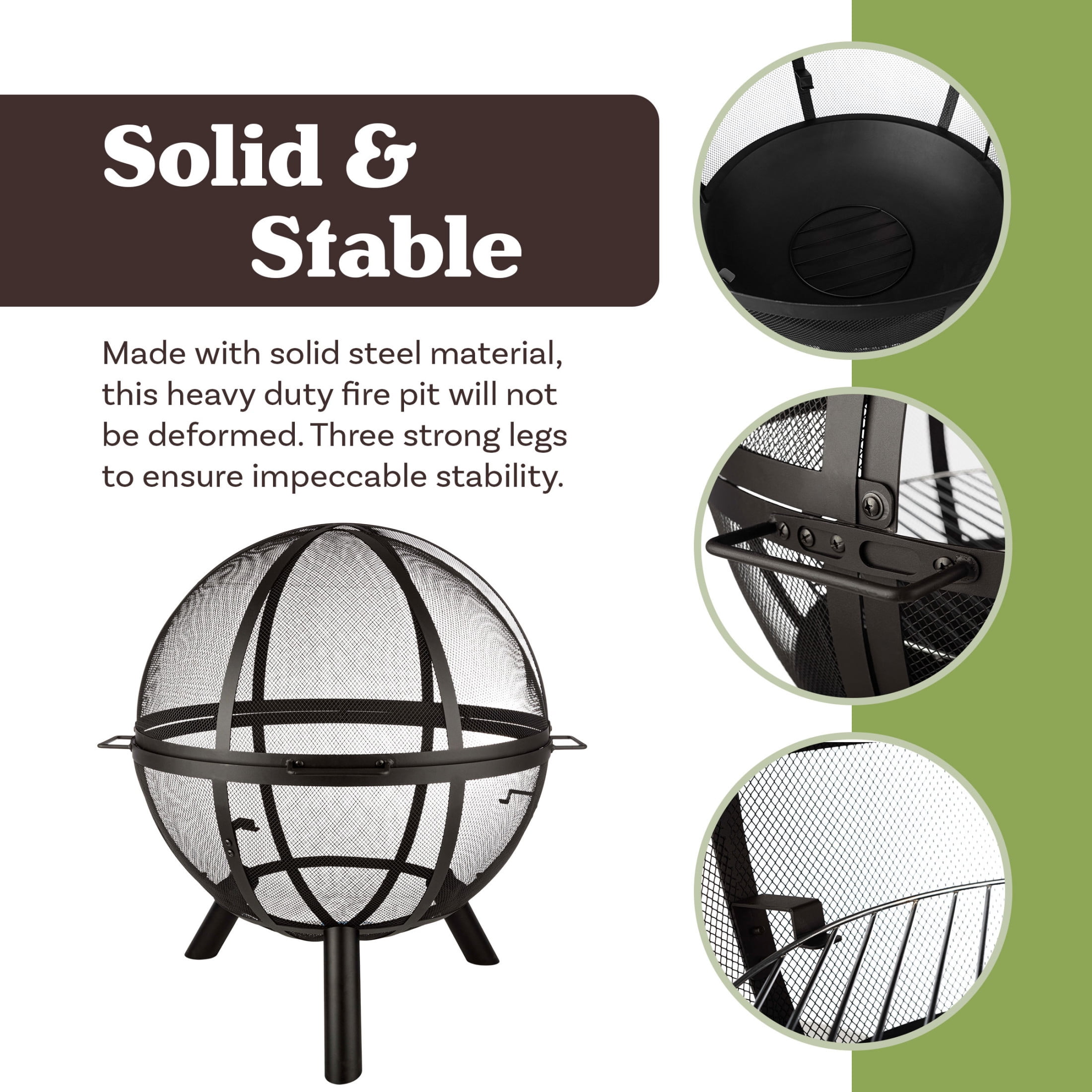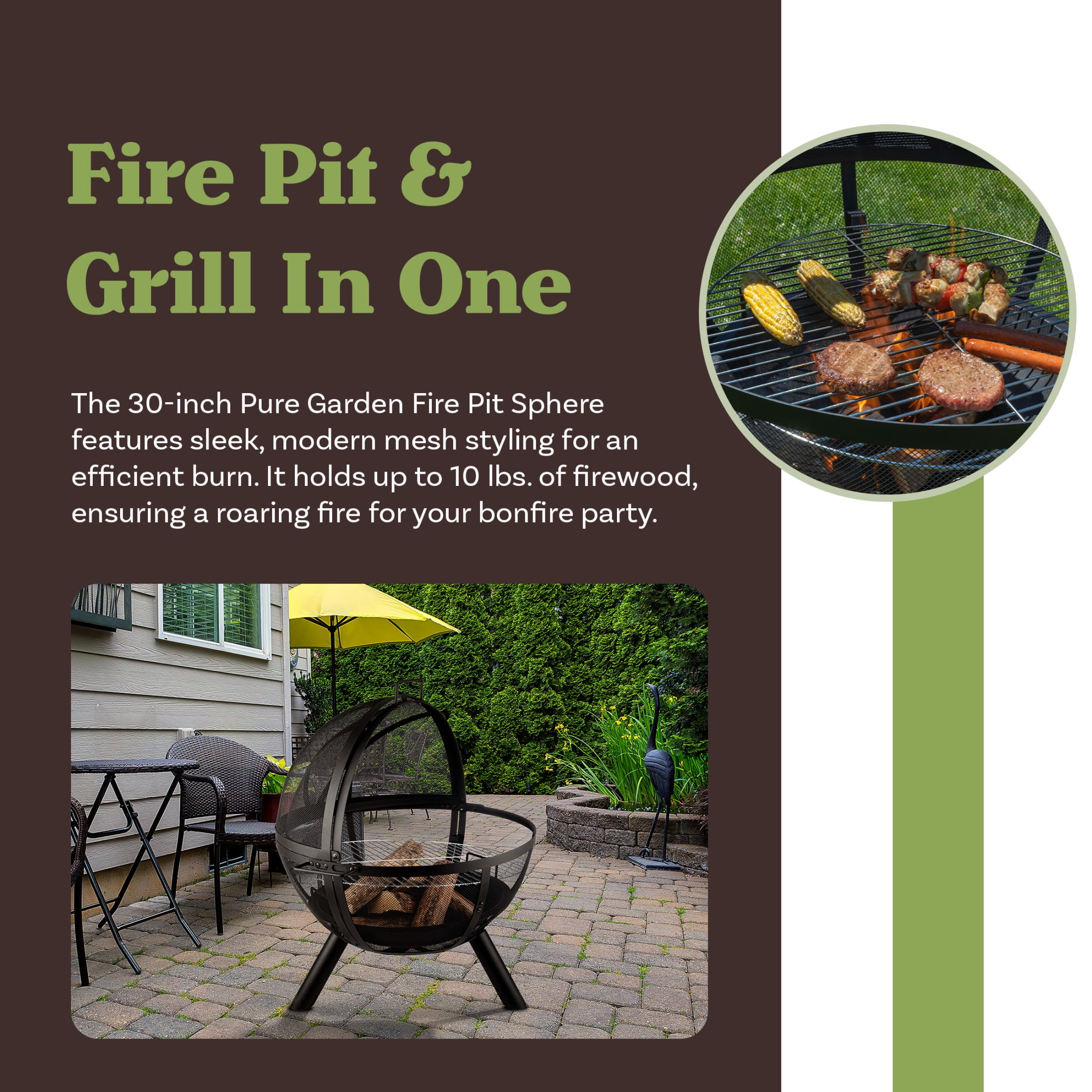 Pure Garden 30” Outdoor Fire Pit – Sphere Firepit with Grill for BBQ