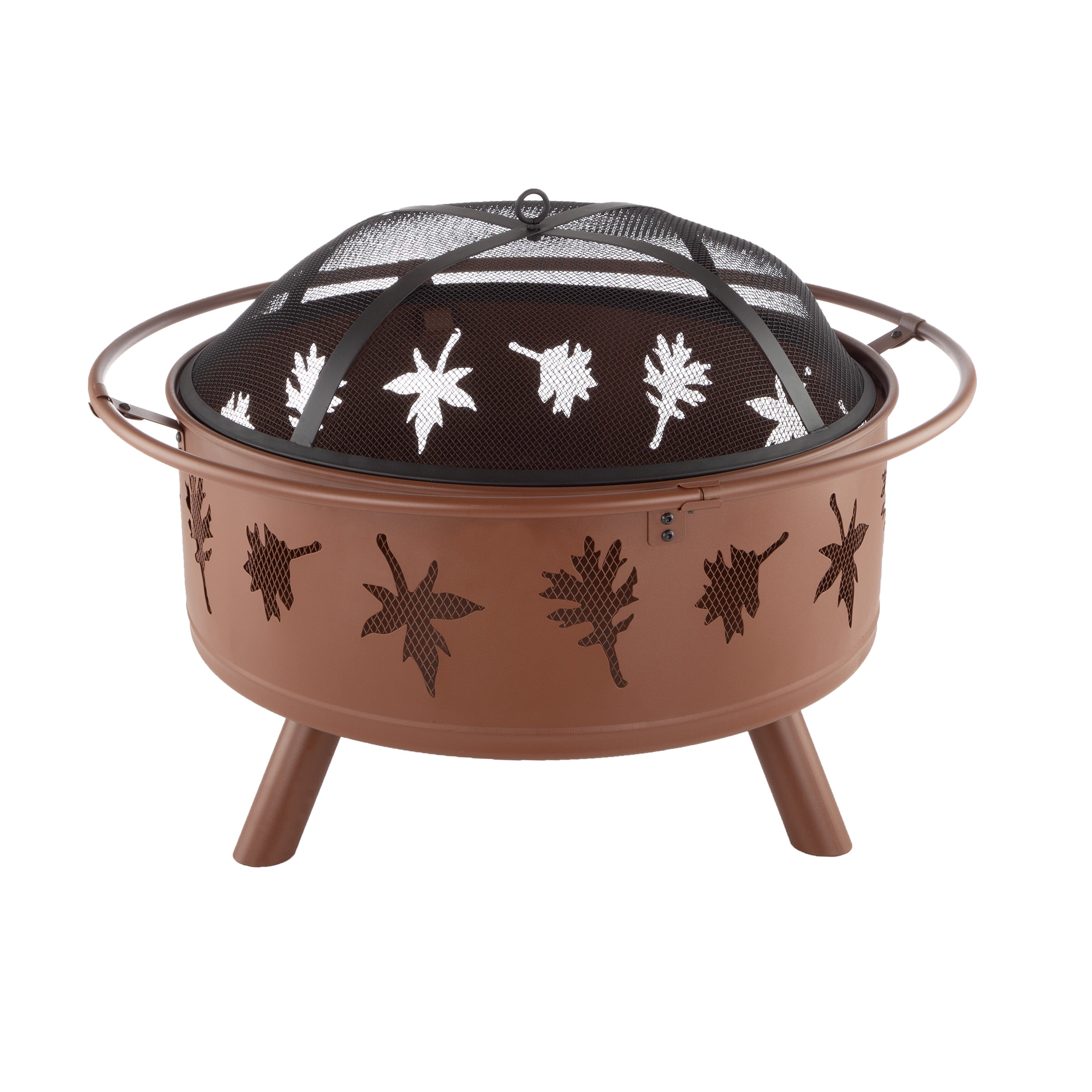 OUTDOOR FIRE PIT – This small fire pit is an ideal blend of modern design and natural elements with a beautiful reddish brown rust finish and leaf cutouts. DURABLE DESIGN – Made from durable steel, this outdoor fireplace is sturdy, and the steel legs fold down for easy storage or portability. LOW MAINTENANCE – Clean the outside of the bonfire fire pit with a slightly damp cloth — no chemicals or cleaning product required. ACCESSORIES INCLUDED – This camping fire pit comes with a spark cover, a log grate, log poker, and a weather-resistant PVC cover to keep the wood burning fire pit looking beautiful season after season. MATERIALS – Steel and PVC. DIMENSIONS – (L) 32” x (W) 32” x (H) 25” (with Safety Screen; Fire Bowl: (L) 27” x (H) 10”; Weight 22lbs. COLOR – Rust.