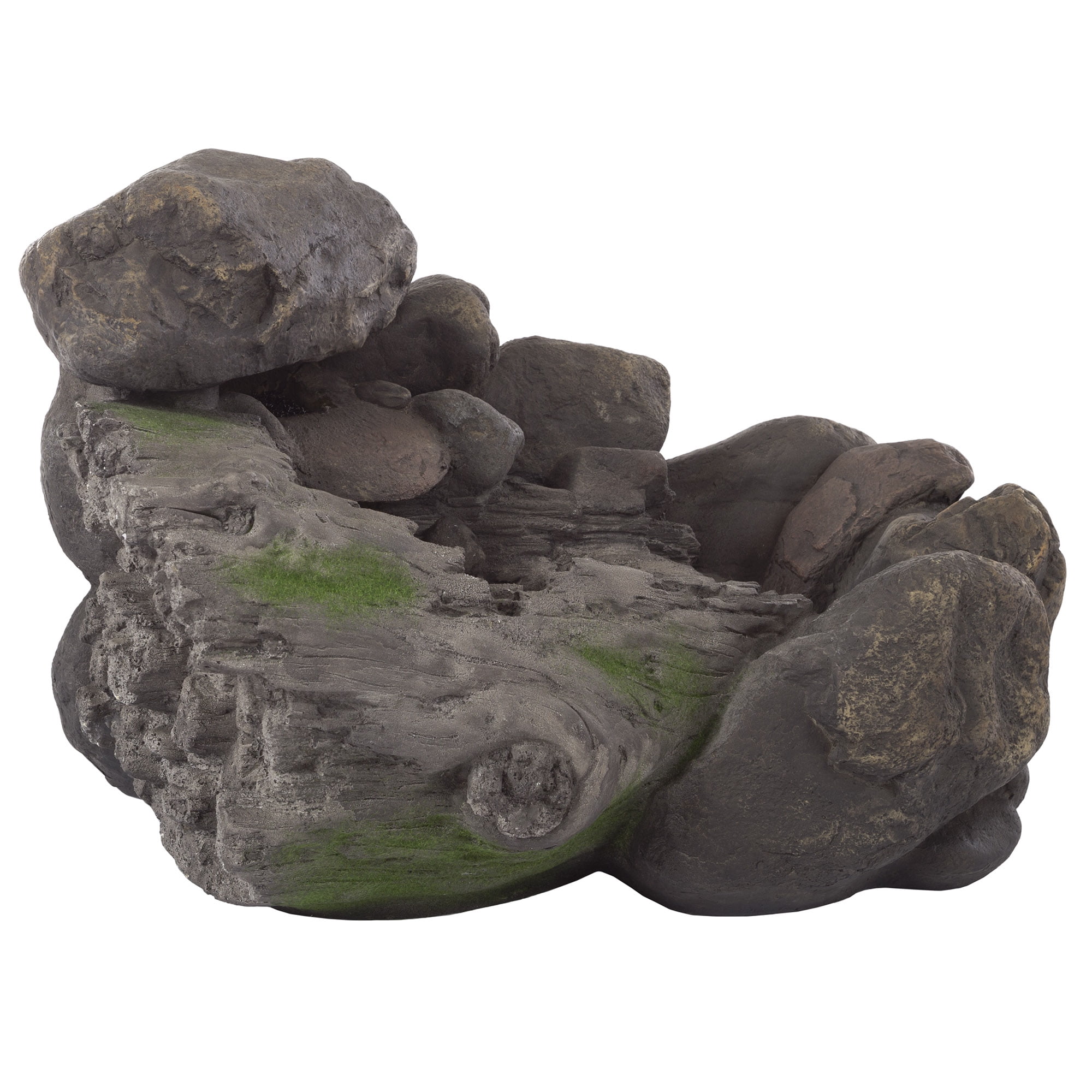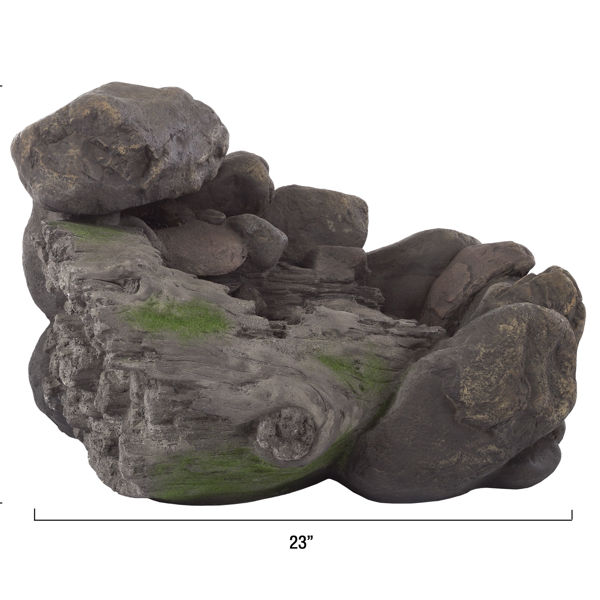 OUTDOOR FOUNTAIN – The nature-inspired design and rustic charm of this patio décor will add a unique touch to any deck, lawn, or garden. DURABLE DESIGN – This 7-Watt polyresin garden fountain provides the look of stone garden statues while being lightweight and weatherproof for long-lasting outdoor use. LOW MAINTENANCE – There is no additional plumbing, stressful setup, or fussy upkeep required for this 120-volt, 0.070-amp water fountain. EASY SET UP – After assembly, simply fill the fountain, plug it into a standard outlet, and enjoy the relaxing sound as the included UL-listed pump cycles up to 93-gallons of water per hour. MATERIAL: Polyresin. DIMENSIONS: (L) 23″ x (W) 13.9″ x (H) 14″; Cord Length: 118″; Required Tubing Diameter: 0.5″.