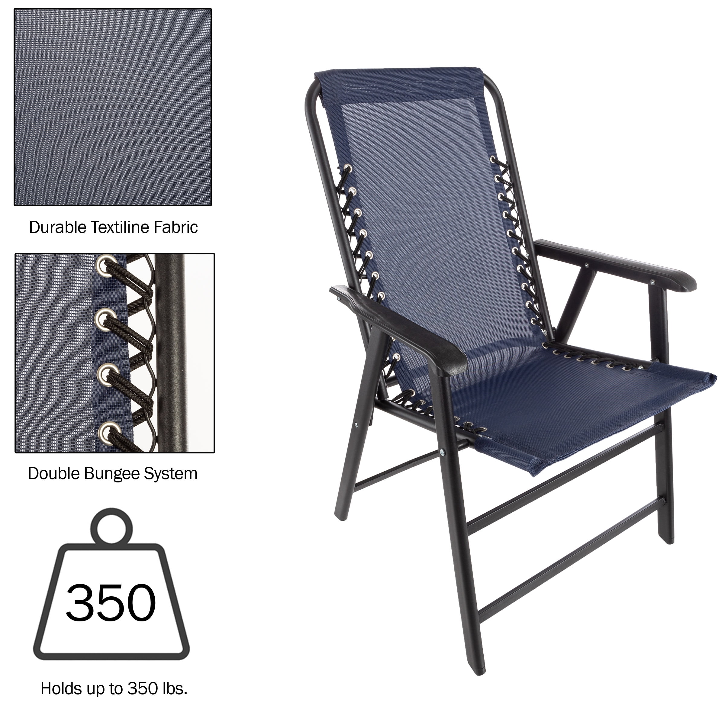 Pure Garden Portable Folding Camping Chairs with Textilene Fabric and Bungee Suspension, Navy, Set of 2