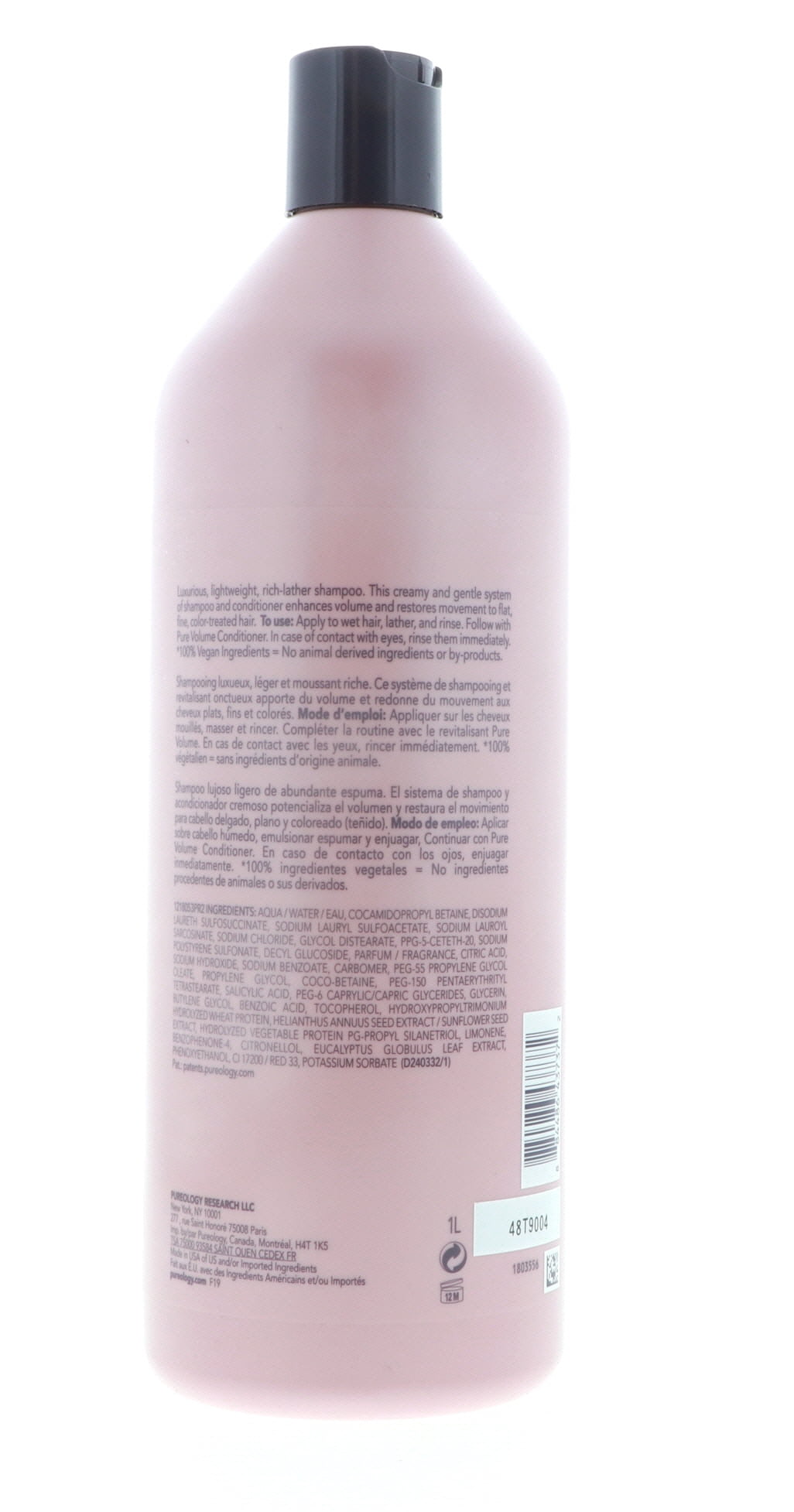 Pureology Pure Volume Shampoo thoroughly cleanses while adding supreme shine and volume to your hair. Thin and color-treated hair is revivified by a nourishing formula that removes impurities and build-up while infusing each strand with moisture. You achieve optimal softness and body so you can look and feel great every day. The secret lies in a carefully selected and natural blend of ingredients that are 100% vegan for a truly ethical experience. An Antifade Complex with fennel seed extract as well as camelina, coconut and olive oil provide strong color protection that eliminates the need for repeat visits to the salon and adds vigor to aging tones. No sulfate or dangerous additives are included; rather, your hair becomes vibrant and resilient through the power of mother nature. To use, apply a quarter-size amount to wet hair and gently massage to create a lather. You’ll notice a lovely scent released by lavender, ylang-ylang, sandalwood, amber and mandarin aromatherapy plant extracts. Rinse and repeat if necessary.