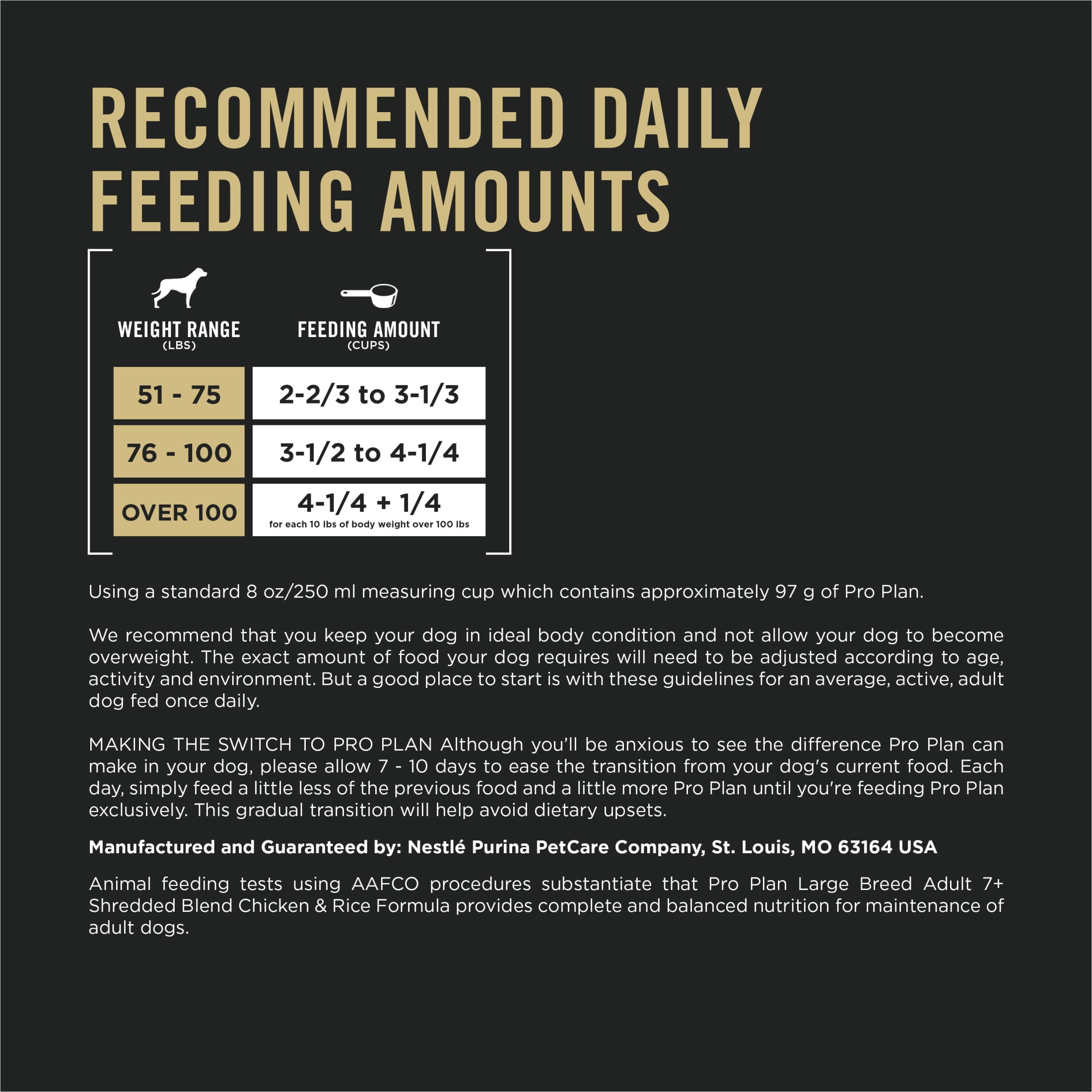 Make your large breed dog’s special nutritional needs a priority with Purina Pro Plan Adult 7 Plus Shredded Blend Chicken and Rice Formula Large Breed dry dog food. Keeping your large breed senior dog’s mobility in tip-top condition is essential, so this Purina Pro Plan dog food includes plenty of glucosamine and EPA to support hip and joint health. To keep him looking his best inside and out, this dog kibble also consists of both omega-6 fatty acids and vitamin A to nourish his skin and coat health. Containing real chicken as the first ingredient, each mouthwatering serving of this large breed dog food for dogs 7 and older provides protein, an essential nutritional building block within your dog’s body, to help support strong muscles and a healthy heart. Plus, this highly digestible dog food formula promotes nutrient bioavailability, which means it is formulated to support optimal nutrient absorption. Purina formulates this large dog food dry recipe to ensure that every ingredient is carefully chosen for a specific nutritional or functional purpose so your canine companion gets the wholesome goodness you expect from a trusted pet food brand. Give your dog a great-tasting formula to keep your large breed senior dog looking and feeling his best with Purina Pro Plan Adult 7 Plus Shredded Blend Chicken and Rice Formula Large Breed dry dog food.