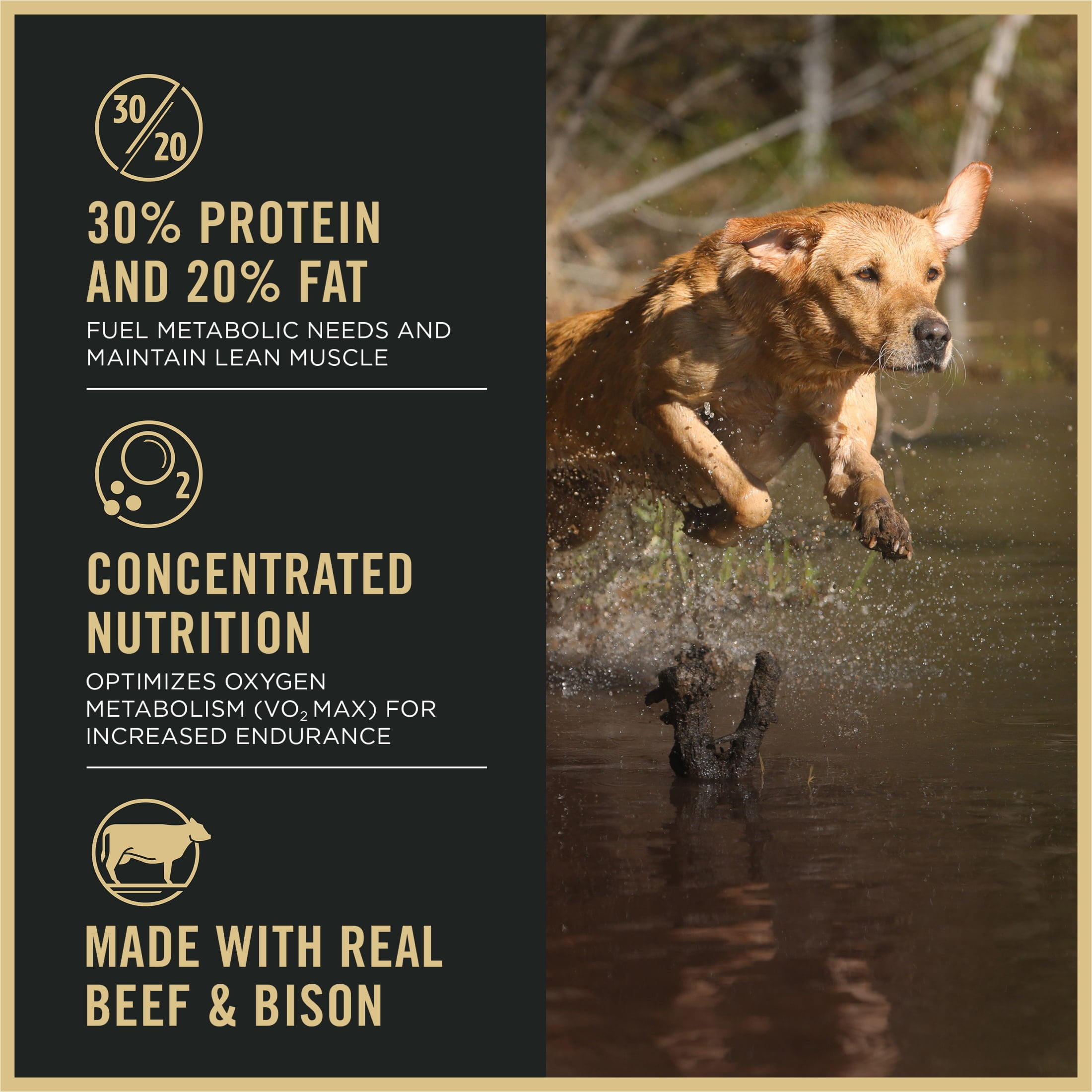 High protein dog food with real beef as the first ingredient to support lean muscle and fuel active dogs. Formulated for sporting dogs, with a 30 percent protein and 20 percent fat ratio to help maintain energy levels and strength. Fortified with dog probiotics and dog glucosamine to support digestive health, joint health, and mobility. Dry dog food designed for large breed dog food needs, ensuring balanced nutrition for active and growing dogs. Spoil your pet with Purina products. Reward yourself with points on every purchase. Download the myPurina app today.