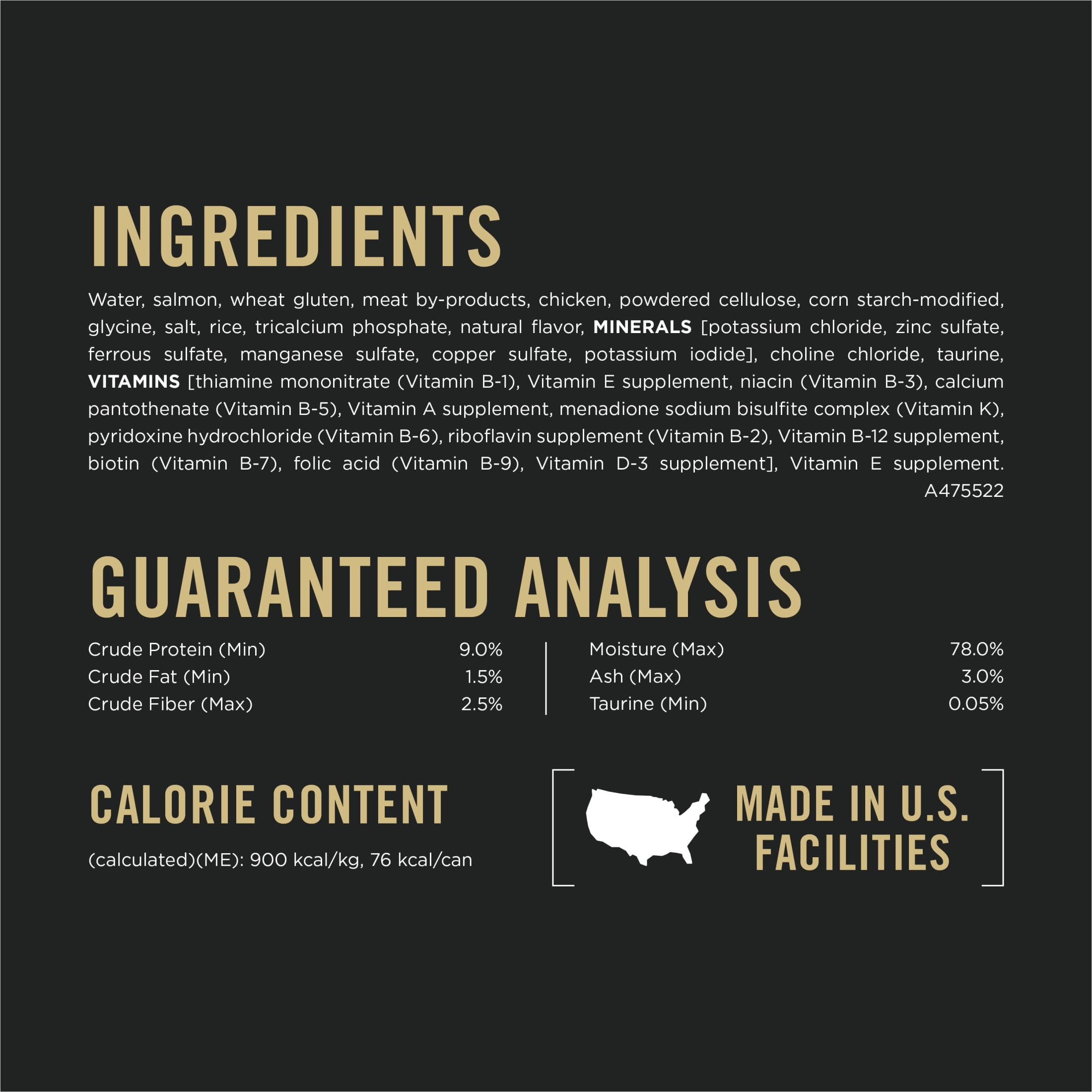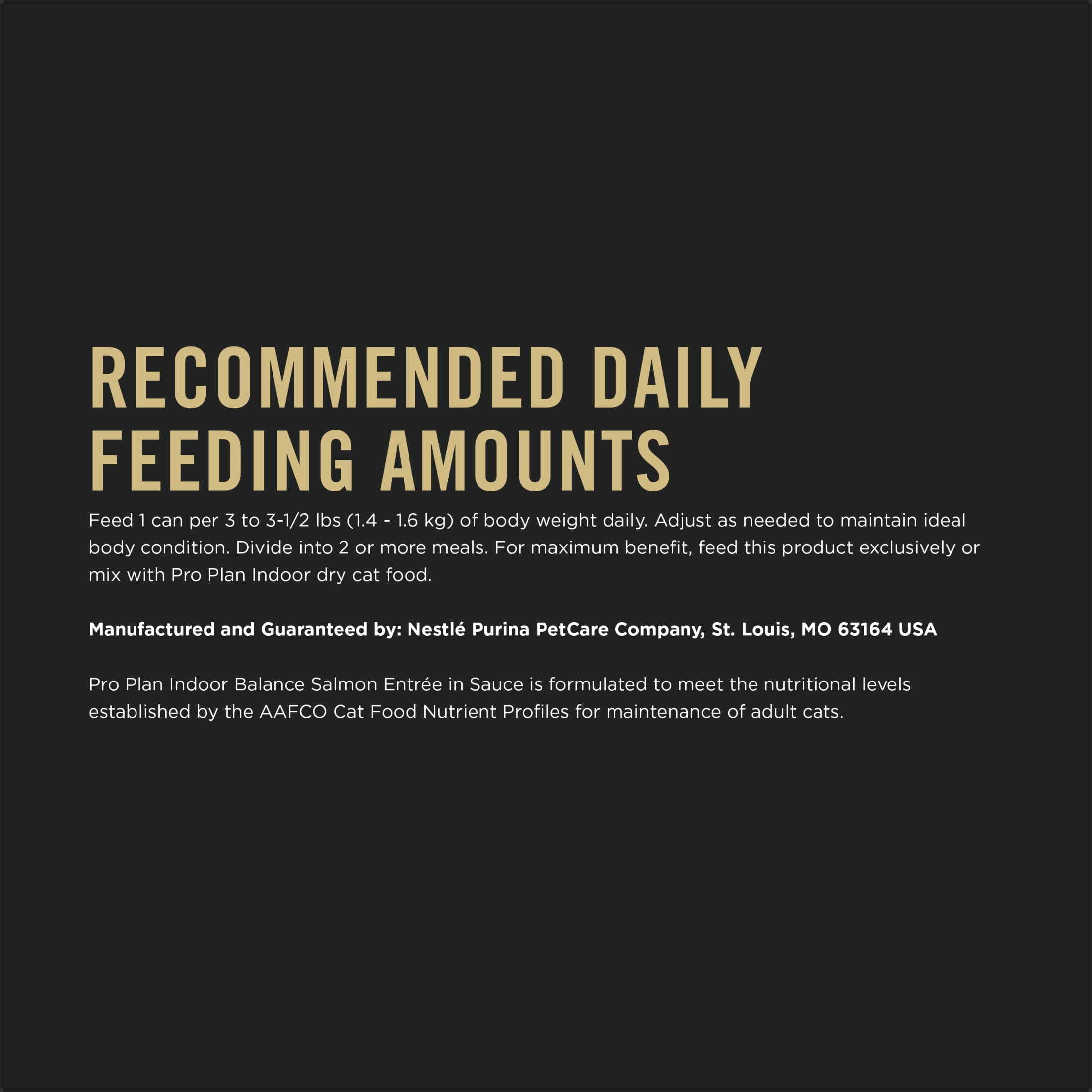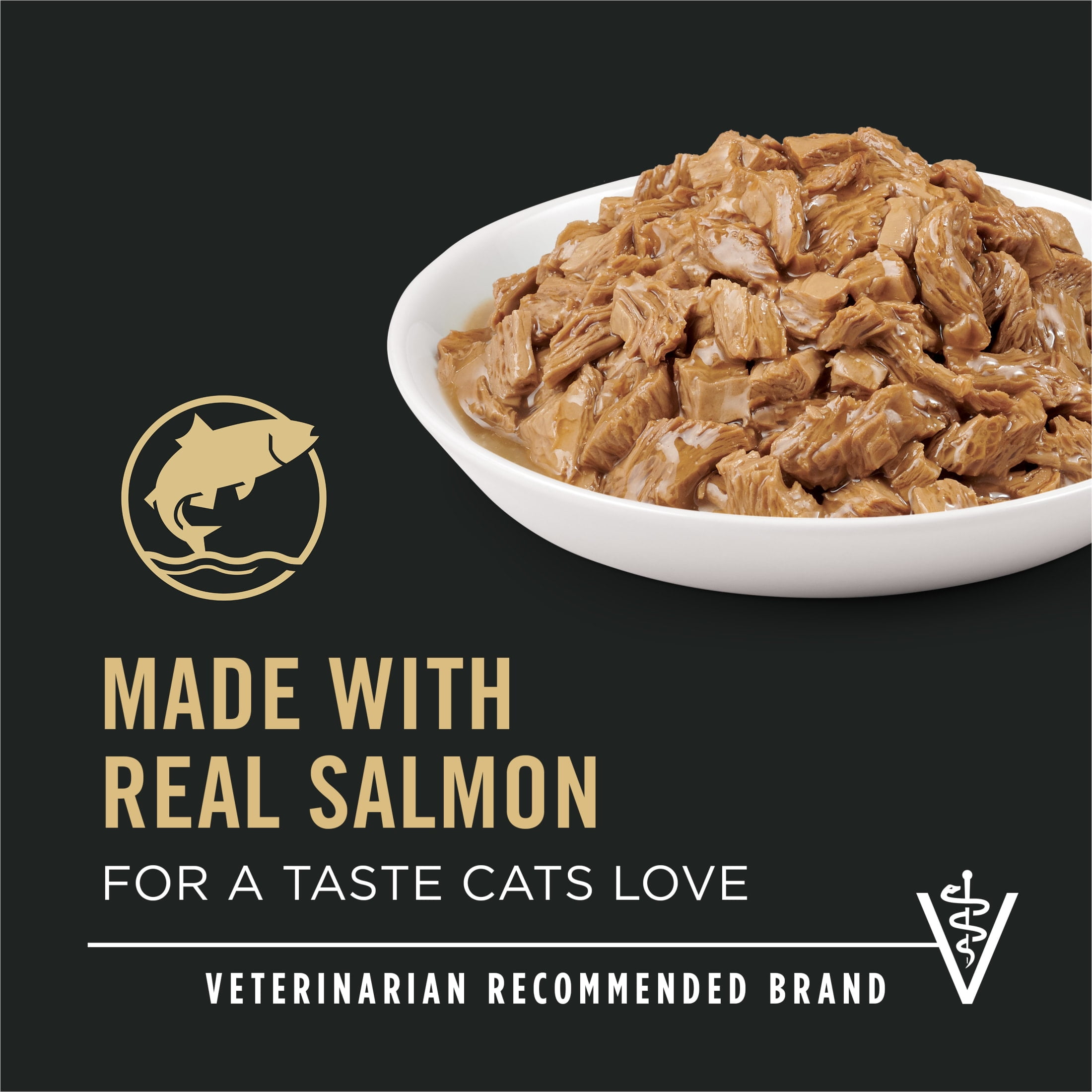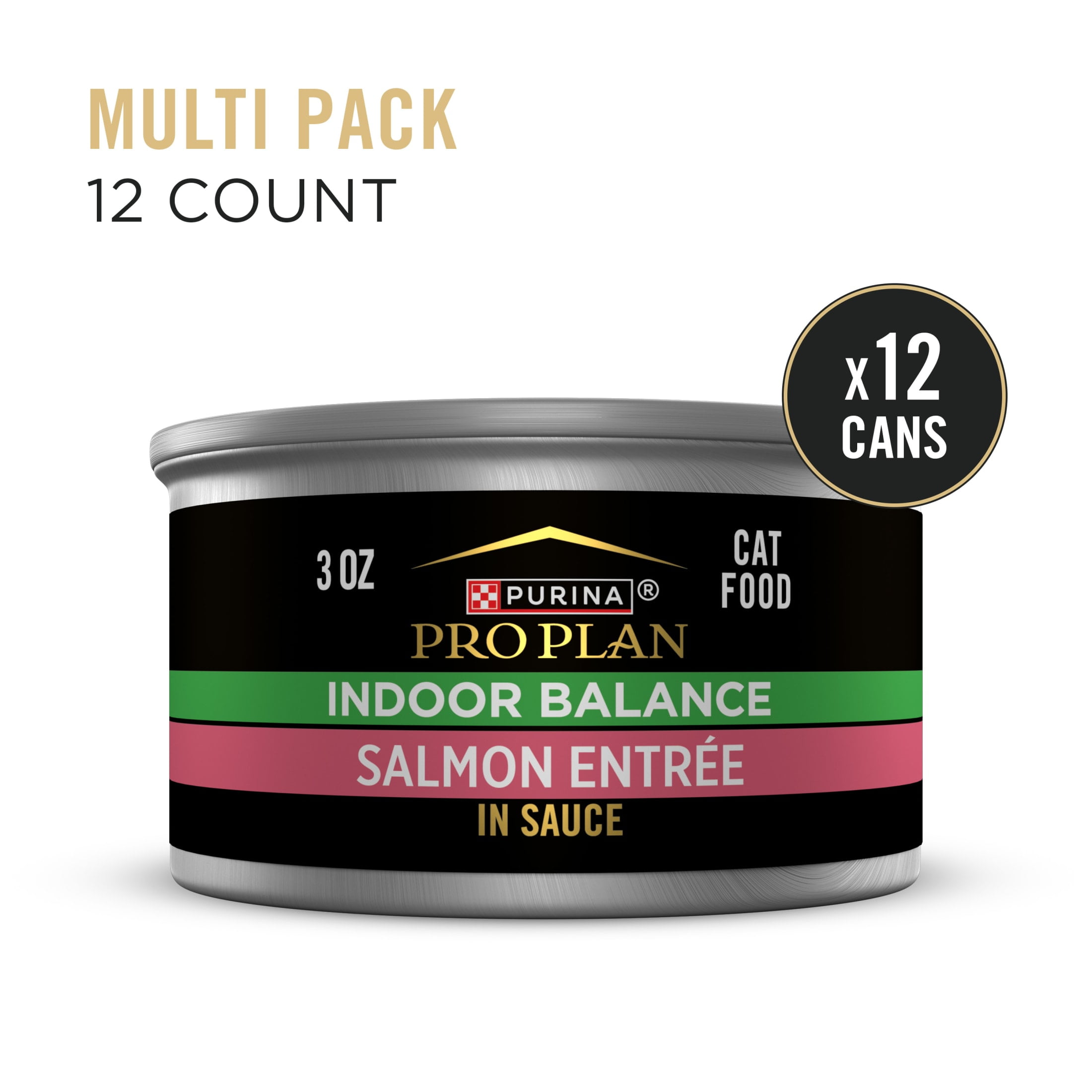 Soft cat food made with real salmon Essential nutrients in this indoor cat food include 25 essential vitamins and minerals, plus taurine, an amino acid Specialized canned cat food formula with a delicious taste cats love to help meet your indoor cat’s unique nutritional needs This weight control cat food includes added fiber to support healthy digestion and help cats maintain a healthy weight Purina Pro Plan cat food providing complete and balanced nutrition for the maintenance of adult cats