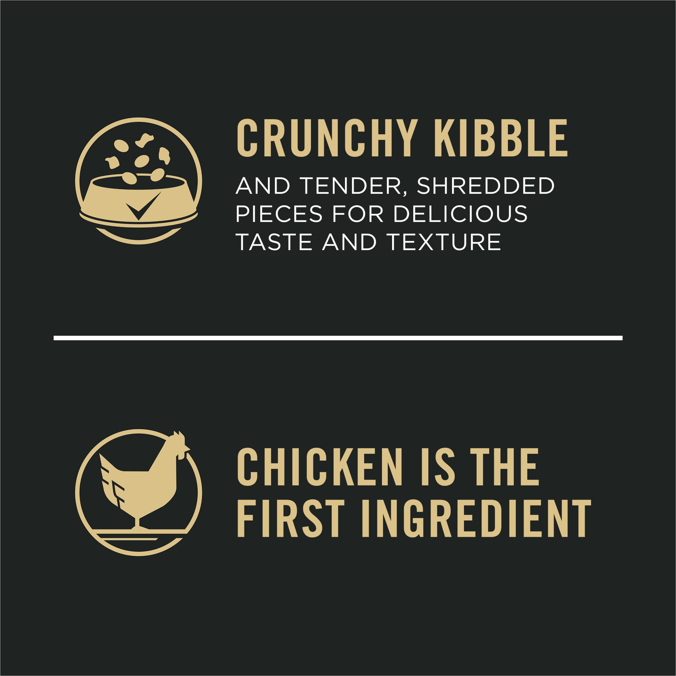 Purina Pro Plan Large Breeds for Adult Dogs Chicken & Rice, 34 lb Bag Crunchy kibble combined with tender, shredded pieces for taste and texture dogs love High protein formula, with real chicken as the first ingredient Fortified with guaranteed live probiotics for digestive and immune health Used to be known as SAVOR Shredded Blend Large Breed Formula Glucosamine and EPA, an omega-3 fatty acid, for joint health and mobility