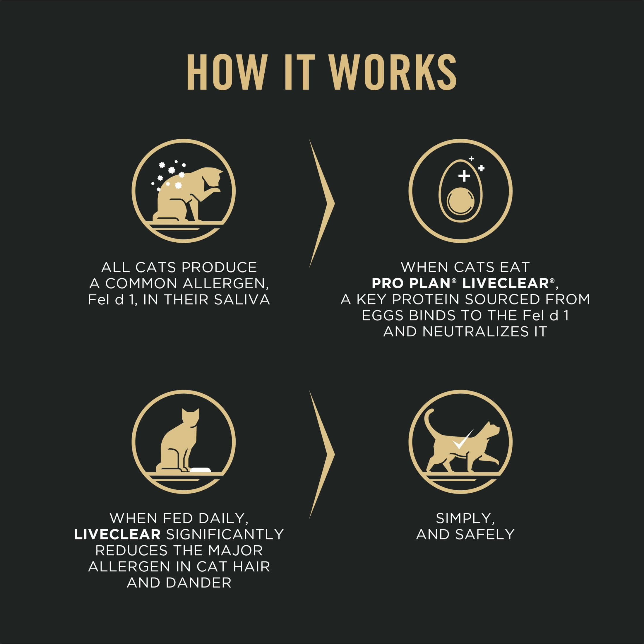 Purina Pro Plan LiveClear Dry Cat Food for kittens Cat Allergen Reducing Chicken and Rice Formula reduces the major allergen in cat hair and dander, while providing nutrition and great taste. This Purina Pro Plan Cat Food simply and safely neutralizes Fel d 1, a common allergen in cat saliva, with a key protein sourced from eggs. This cat food for your kitten is fortified with guaranteed live probiotics for immune support and overall wellness. This chicken cat food recipe contains high protein to support lean muscle. Spoil your pet with Purina products. Reward yourself with points on every purchase. Download the myPurina app today.