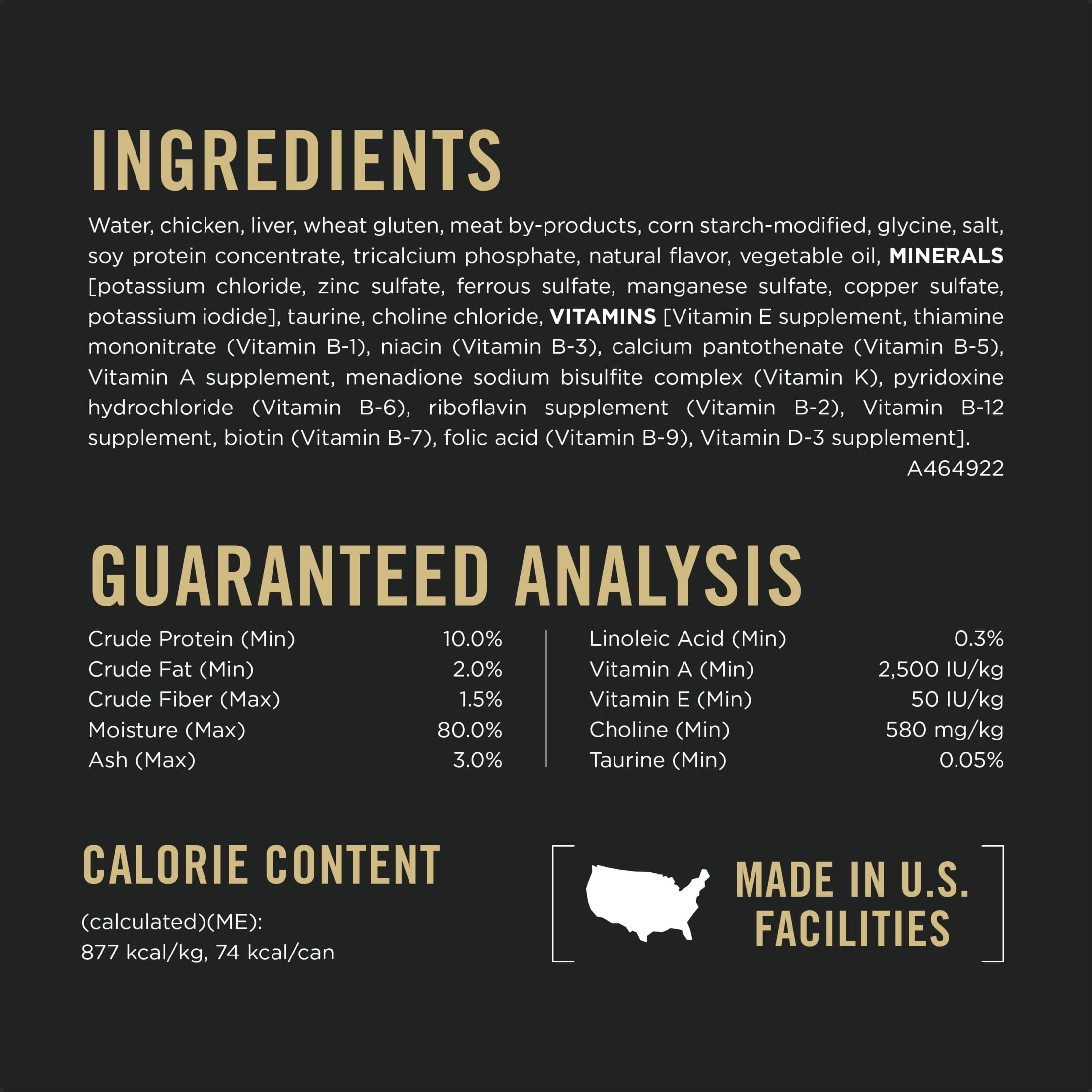 Help keep your cat healthy with Pro Plan Vital Systems Chicken Entree in Gravy Cat Food 4-in-1 Immune, Brain, Muscle and Vision. This soft cat food features high-quality ingredients like real chicken and includes no artificial colors or flavors. Each high-quality ingredient in this canned cat food with gravy is carefully selected for a specific purpose. Vitamin E, linoleic acid and plenty of antioxidants in Purina Pro Plan cat food bolster a healthy immune system, while high-quality protein supports strong muscles. Plus, vitamin A and taurine support healthy vision and choline helps brain health. Each serving of Purina Pro Plan Vital Systems high protein cat food provides your adult cat with 100 percent complete and balanced adult cat food nutrition, to help support her overall health and wellness. This soft cat food formula features an optimal protein level to help her maintain an ideal body condition. Show your cat how special she is by serving her this chicken wet cat food in gravy entree daily. With over 90 years of experience pushing pet nutrition forward, Purina is a trusted leader in the pet nutrition industry. Each batch of our food undergoes regular checks to monitor safety and quality throughout the manufacturing process for formulas to meet or exceed industry standards.