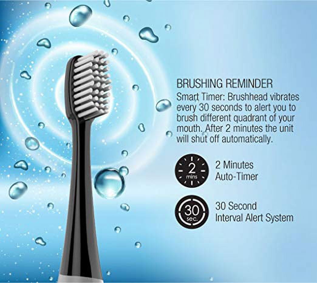 The S750 Rechargeable sonic toothbrush features a built-in UV sanitizer designed to kill 99.9% of bacterium and germs on the brush heads. The toothbrush’s sonic wave technology provides 40,000 sonic strokes per minute to effectively remove plaque without irritating your gums. The innovative design is sleek and efficient. It is ideal for those hard-to-reach areas and removes even the toughest stains to leave your teeth naturally whiter! The system includes 12 bonus brush heads- that’s 3 years worth of brush heads based on dental professional recommendations to replace your brush head every 90 days.