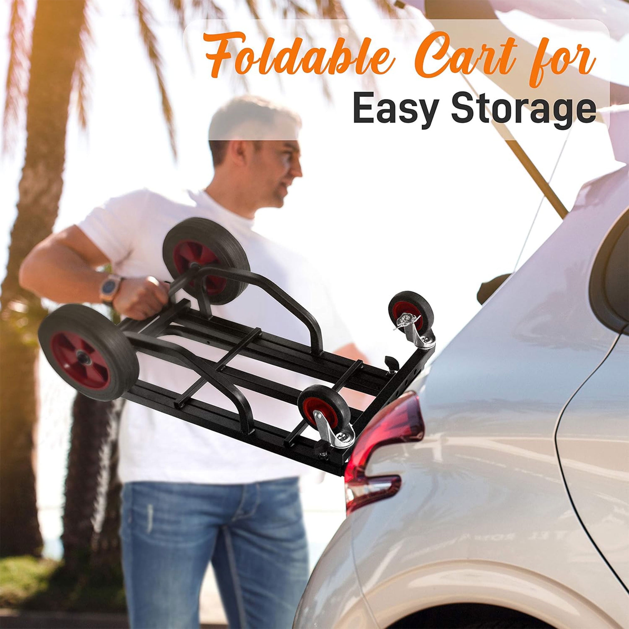 Enjoy effortless hauling and a versatile option for your transportation needs with the Pyle Compact Adjustable Folding Hand Truck Dolly Platform Equipment Cart. This innovative cart boasts an 8-in-1 design, replacing the need for multiple carts with its transformative capabilities. From a hand truck to a dolly, platform cart, or utility cart, this equipment cart adapts to various load sizes with ease. Equipped with R-Trac wheels and brakes, this moving cart offers unrivaled durability and stability, allowing for smooth precision movement in any direction. Conquer any terrain, from gravel to grass to uneven surfaces, knowing that slippage is minimized and control is maximized. With its compact foldable design, extending up to 44.25 inches for transporting substantial equipment, this dolly conveniently folds up for compact storage and maximizes efficiency without sacrificing space. Crafted with heavy-duty textured, powder-coated steel construction material, this hand truck is built to last and is capable of withstanding years of repeated use in even the most demanding environments. With a maximum load capacity of 300 pounds, it’s ideal for musicians, photographers, A/V technicians, contractors, repair workers, offices, warehouses, deliveries, and more. Upgrade your hauling experience with the Pyle Adjustable Folding Hand Truck Dolly Platform Equipment Cart.
